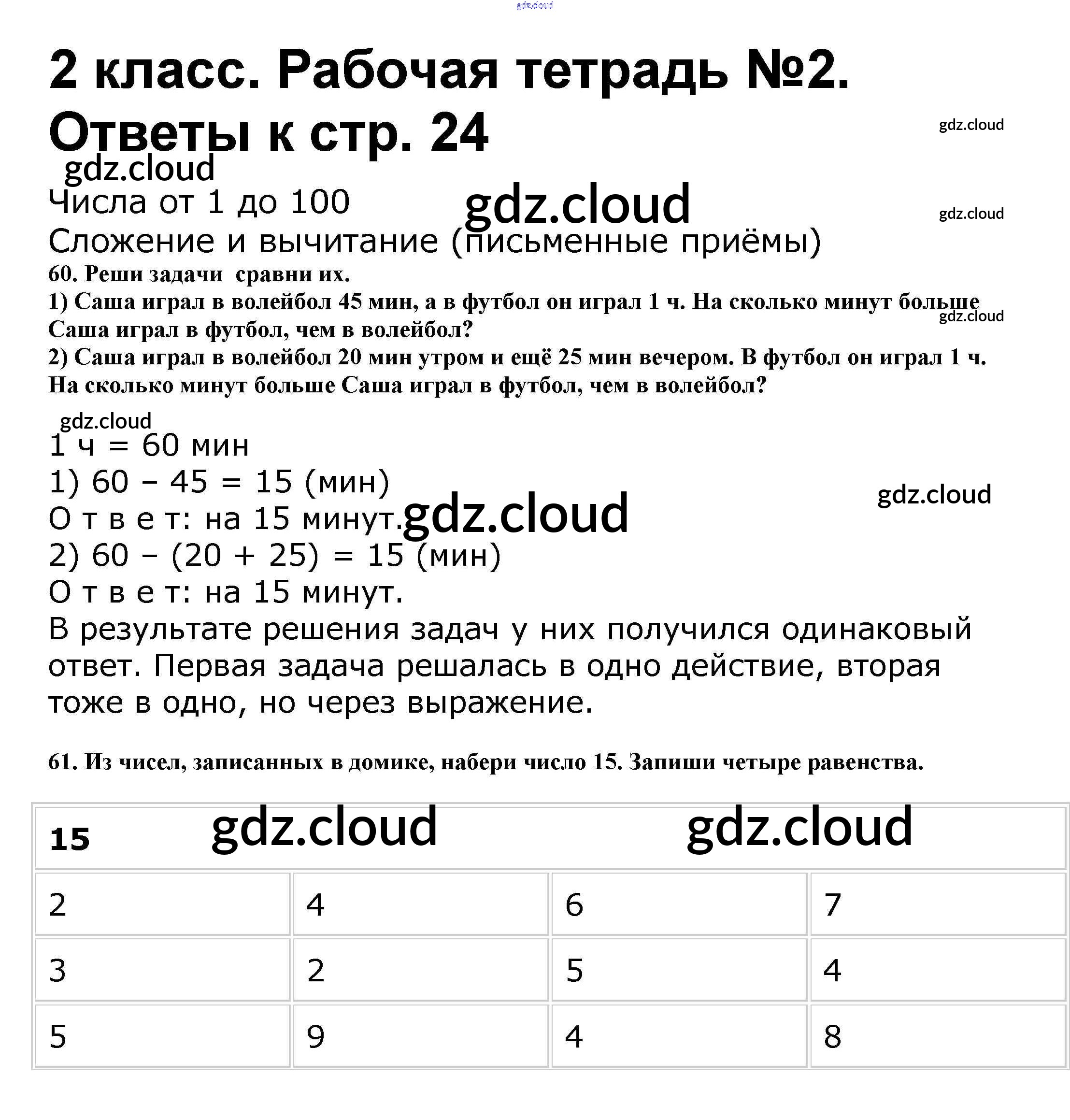 Ответ на задание стр.24 Рабочая тетрадь Математика за 2 (второй) класс Волкова, Моро Школа России 2016 Часть 1, 2