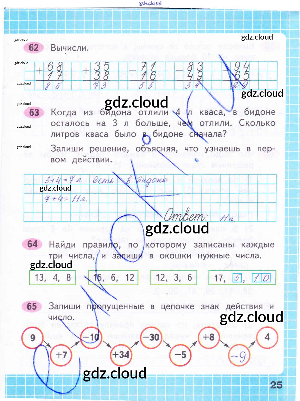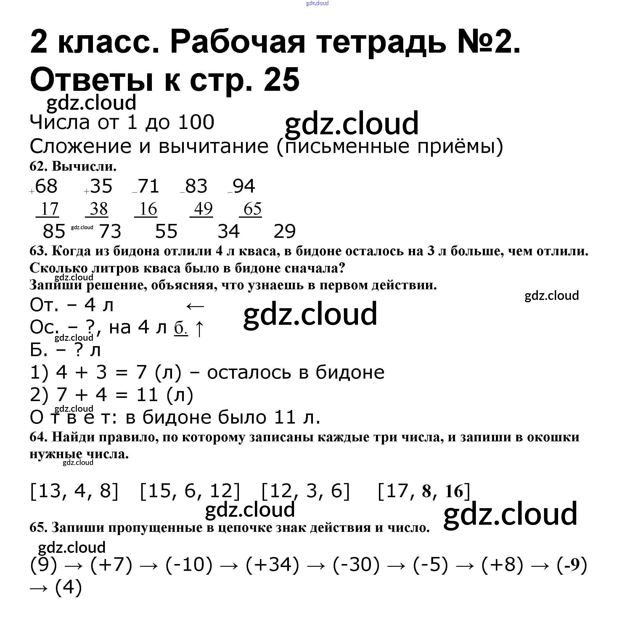 Ответ на задание стр.25 Рабочая тетрадь Математика за 2 (второй) класс Волкова, Моро Школа России 2016 Часть 1, 2