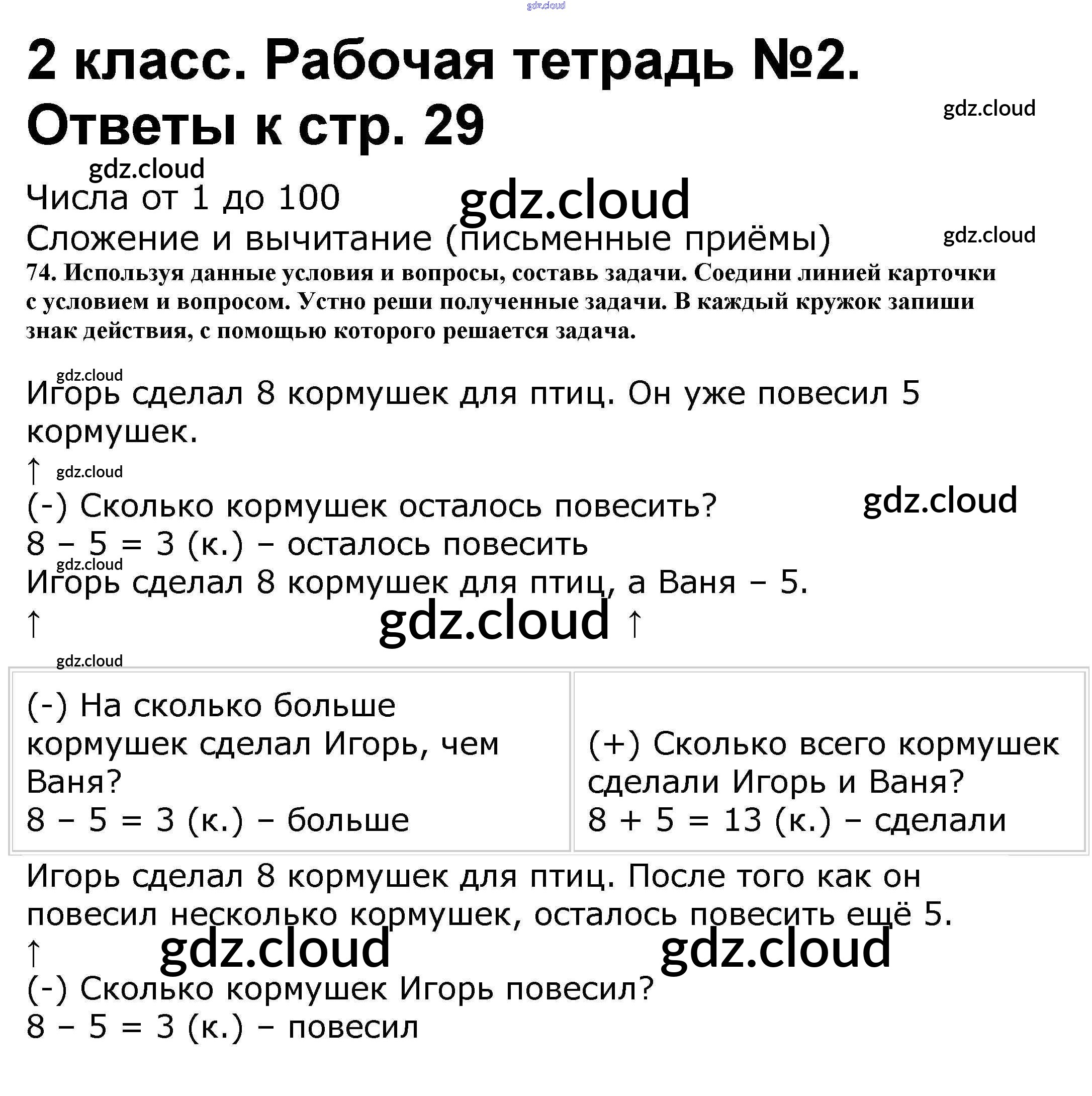 Ответ на задание стр.29 Рабочая тетрадь Математика за 2 (второй) класс Волкова, Моро Школа России 2016 Часть 1, 2