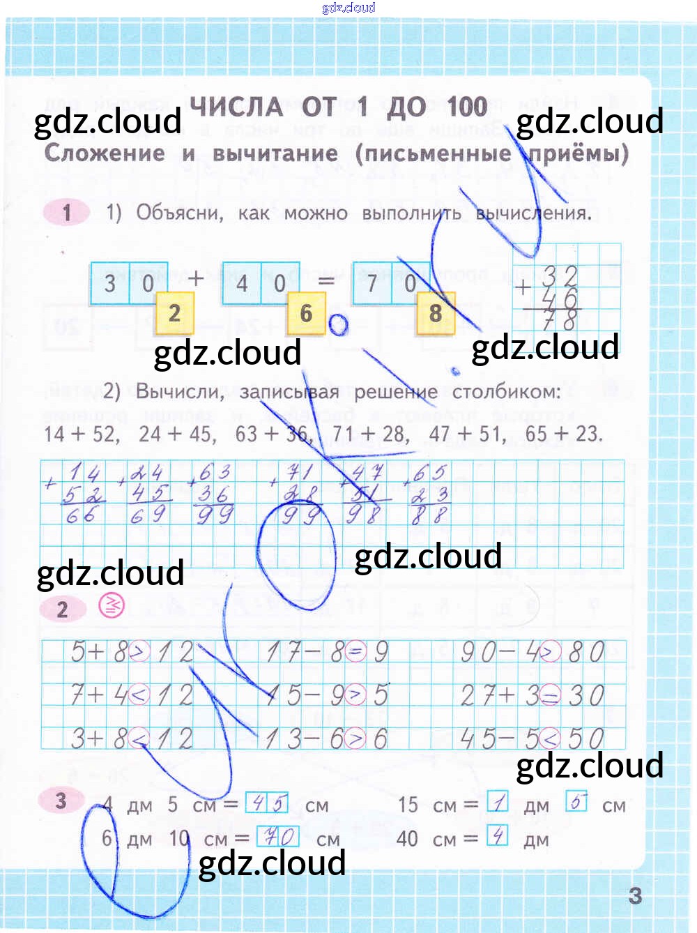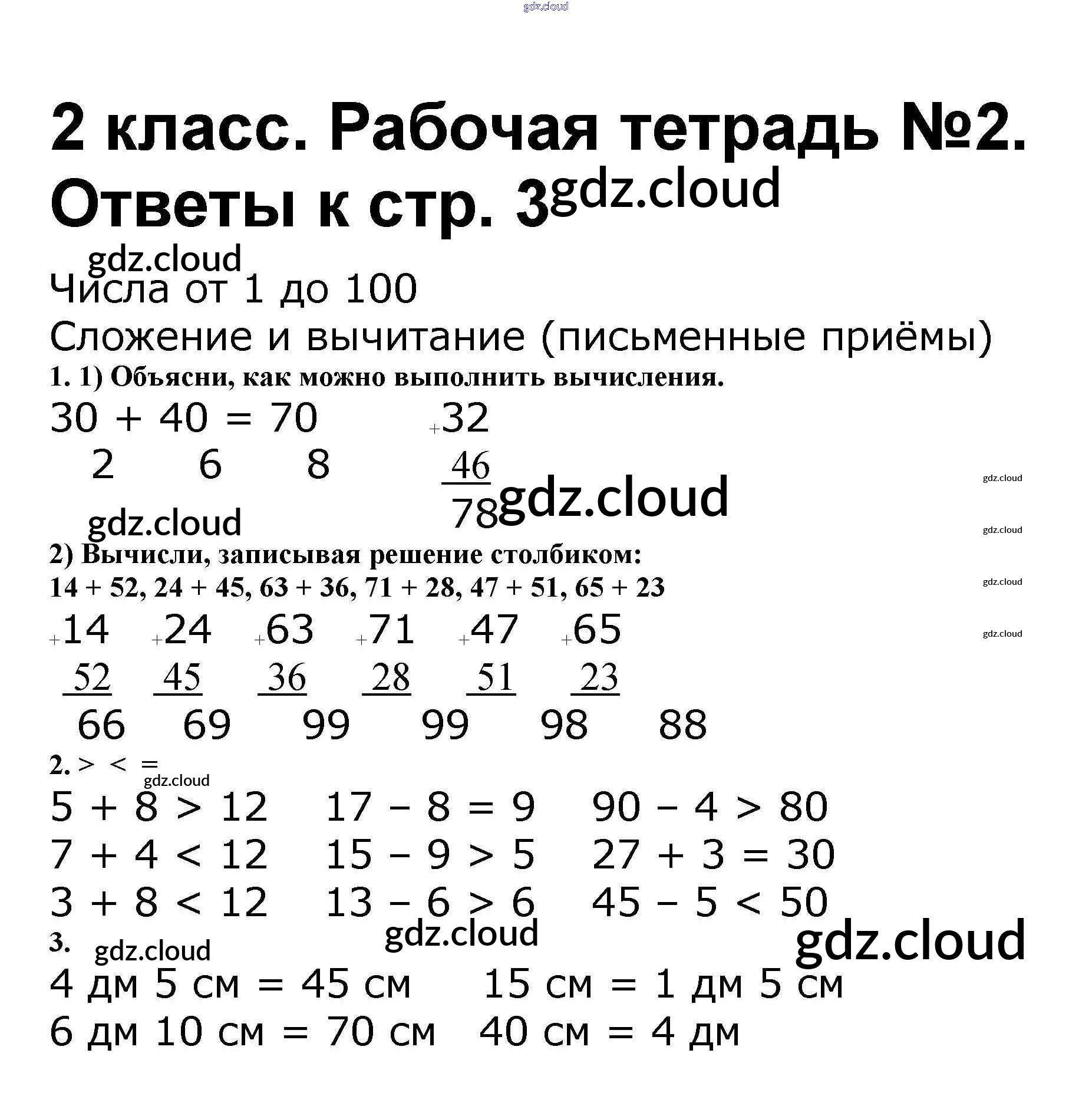 Ответ на задание стр.3 Рабочая тетрадь Математика за 2 (второй) класс Волкова, Моро Школа России 2016 Часть 1, 2