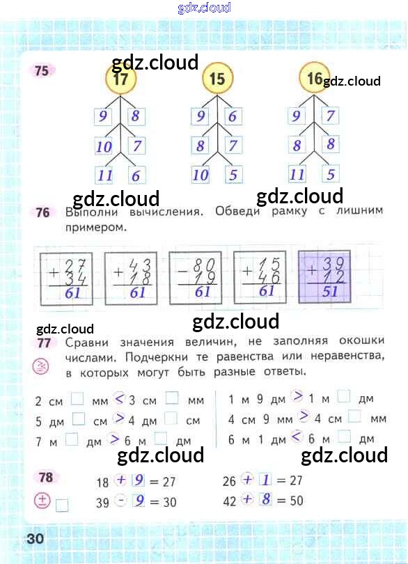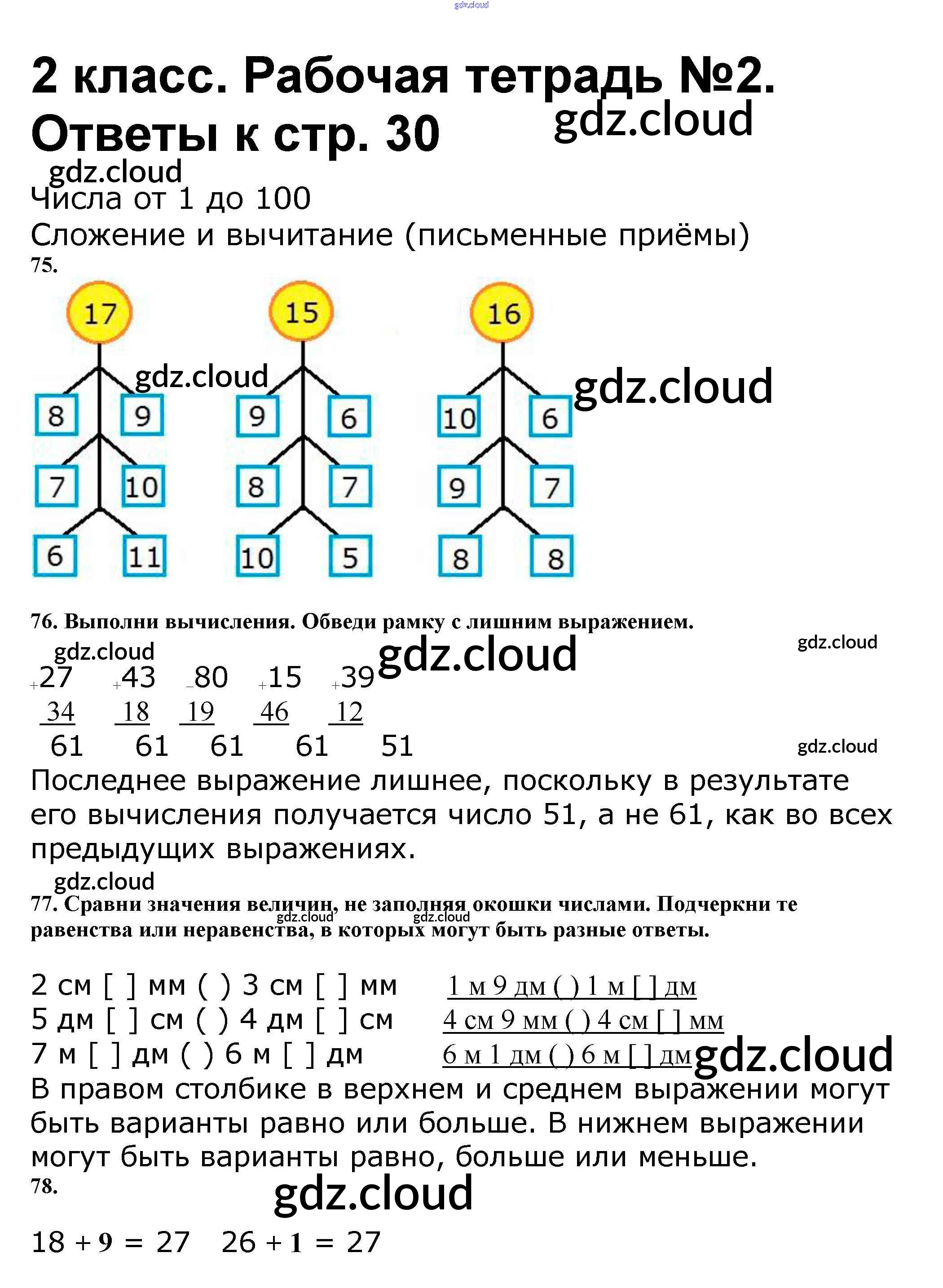 Ответ на задание стр.30 Рабочая тетрадь Математика за 2 (второй) класс Волкова, Моро Школа России 2016 Часть 1, 2