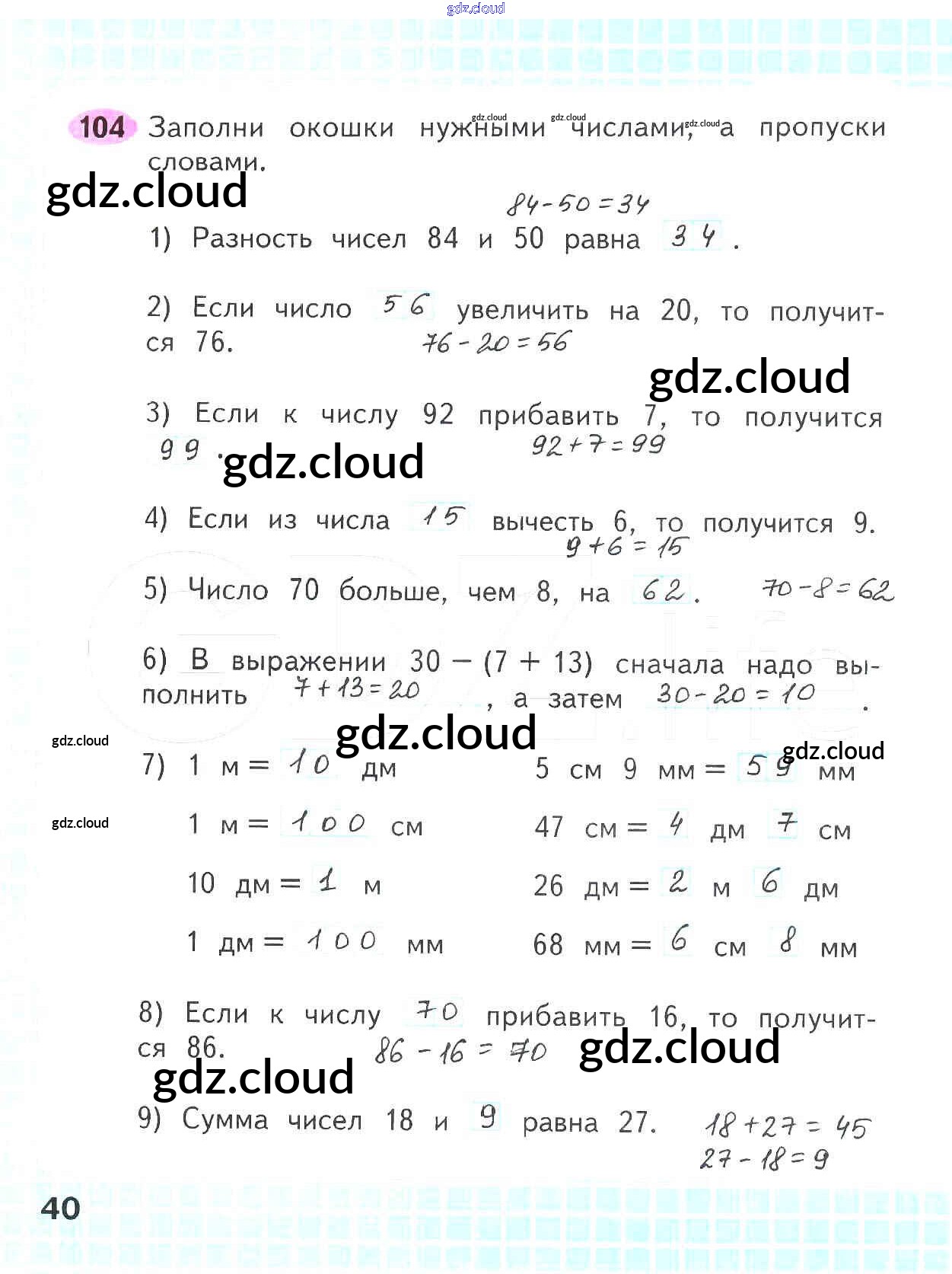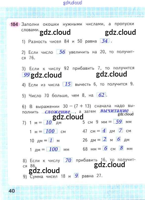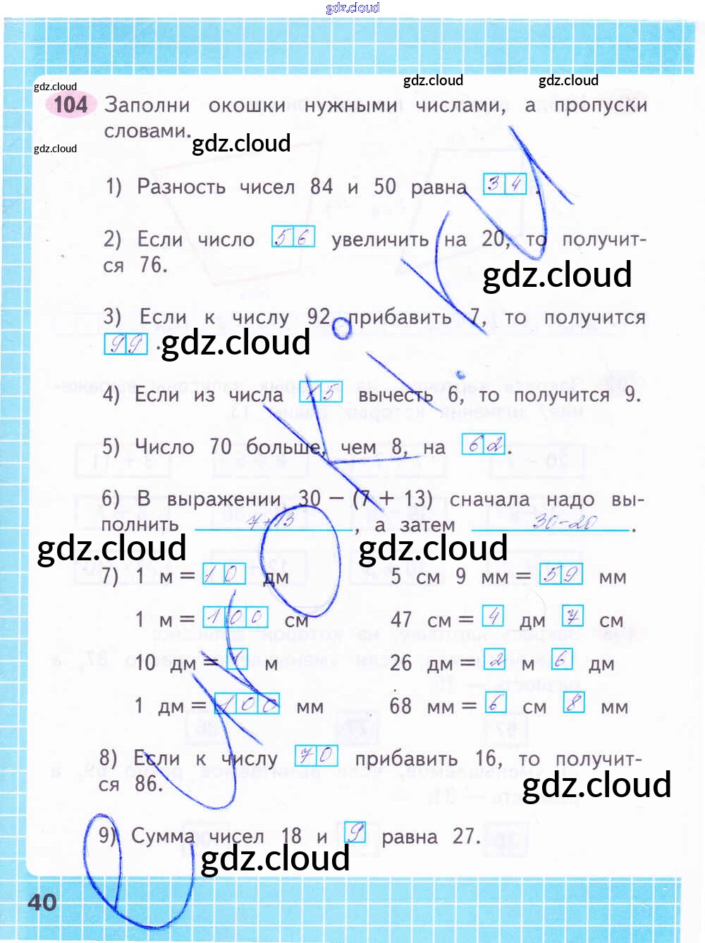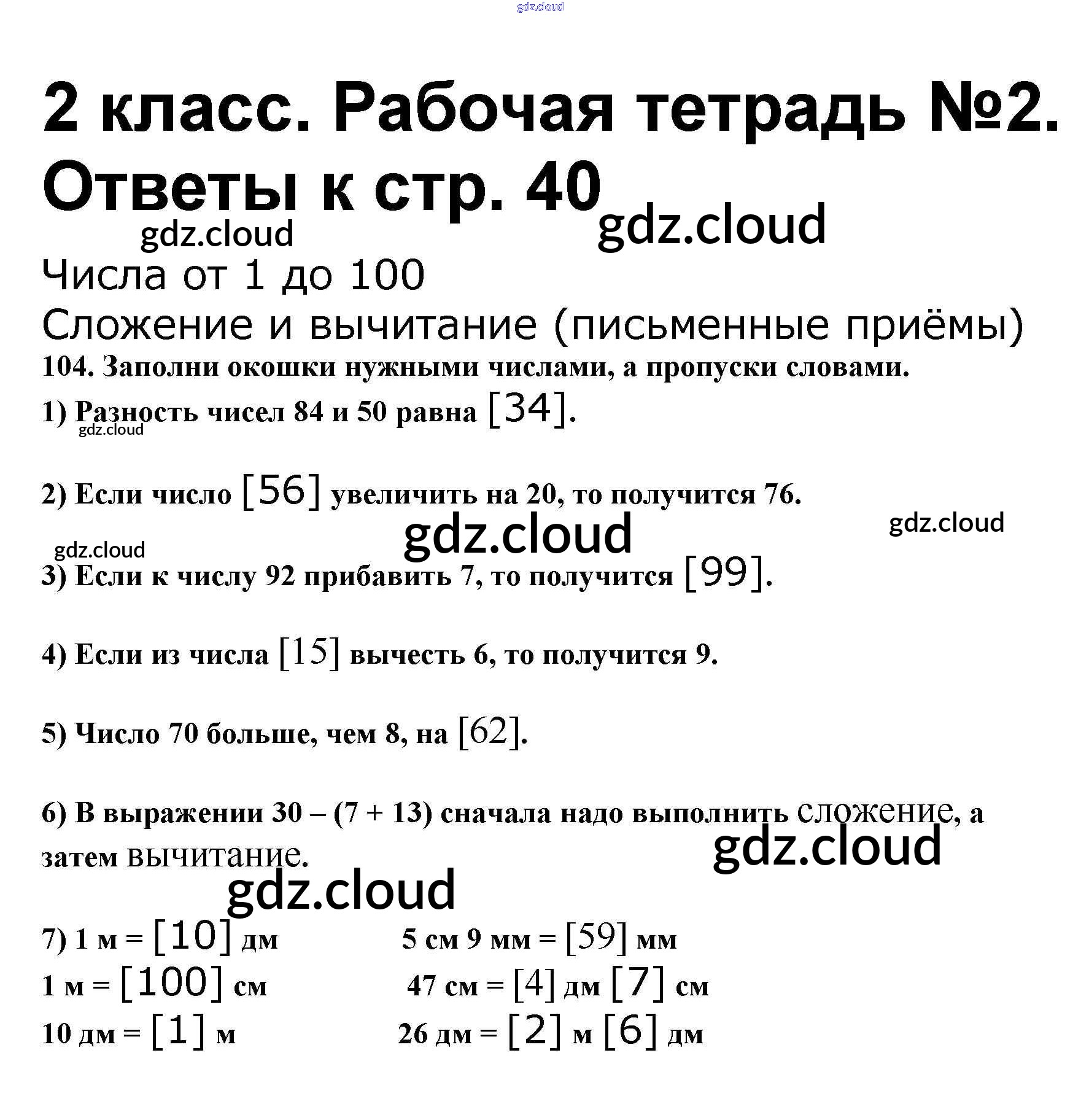 Ответ на задание стр.40 Рабочая тетрадь Математика за 2 (второй) класс Волкова, Моро Школа России 2016 Часть 1, 2