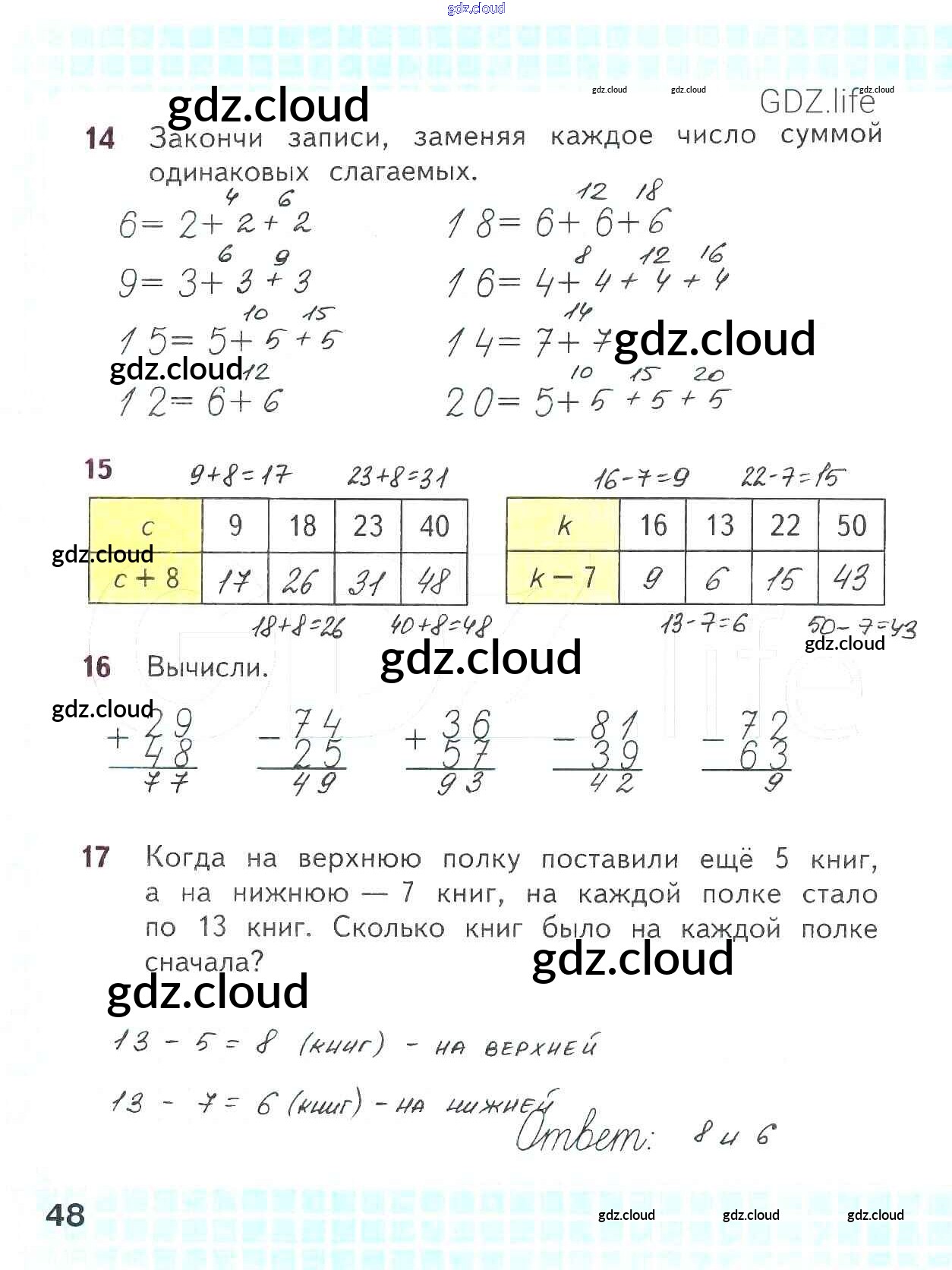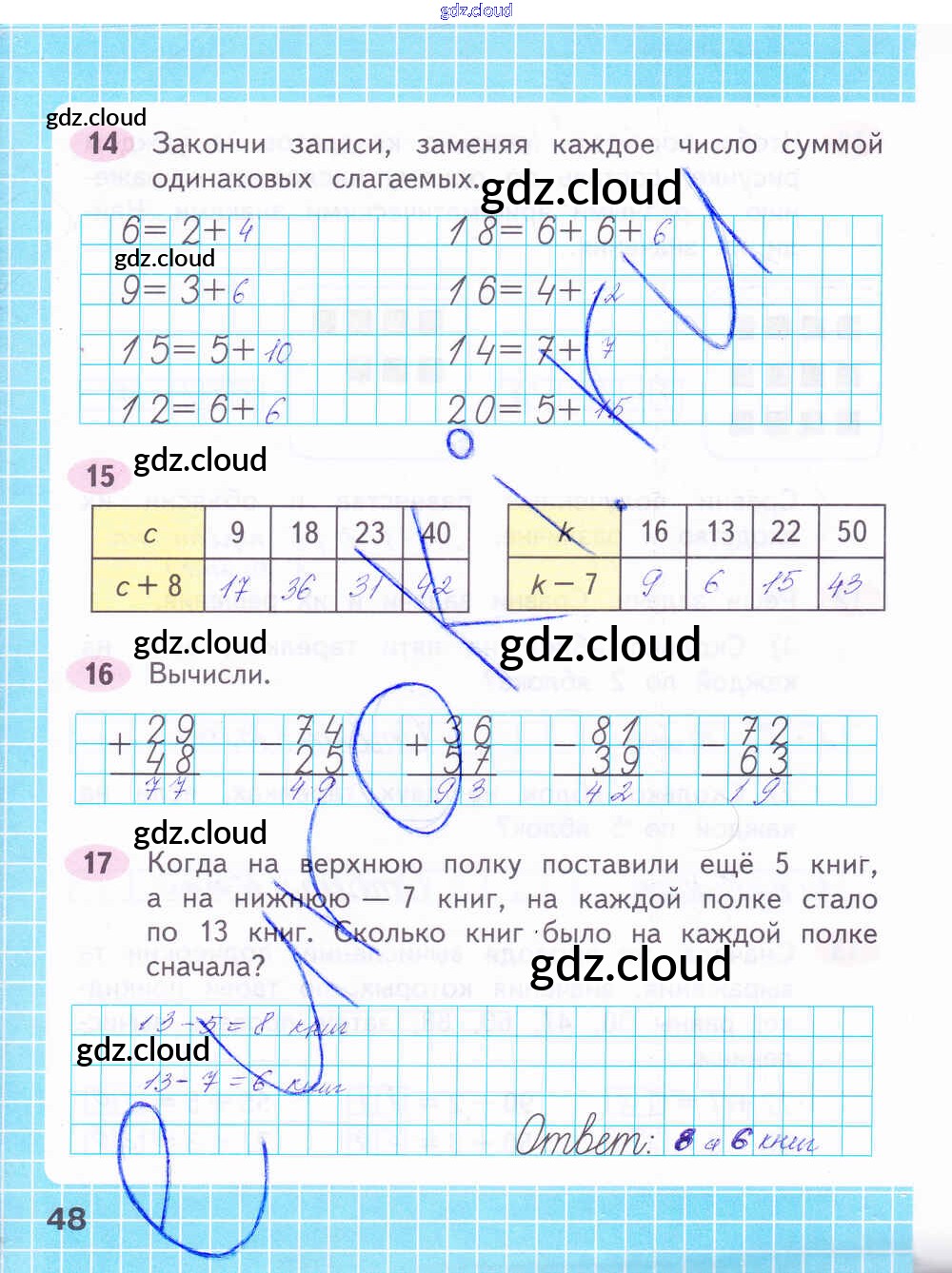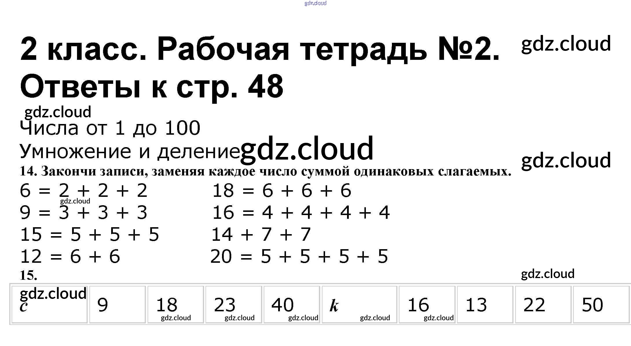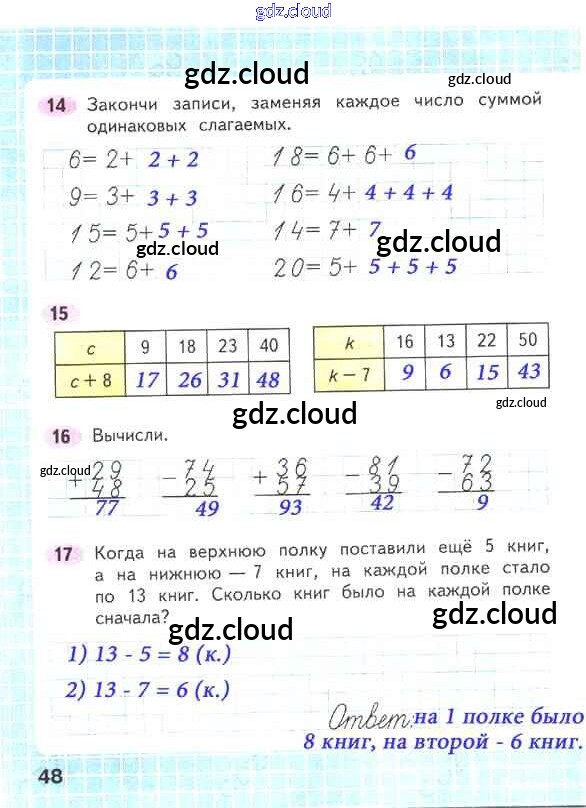 Ответ на задание стр.48 Рабочая тетрадь Математика за 2 (второй) класс Волкова, Моро Школа России 2016 Часть 1, 2
