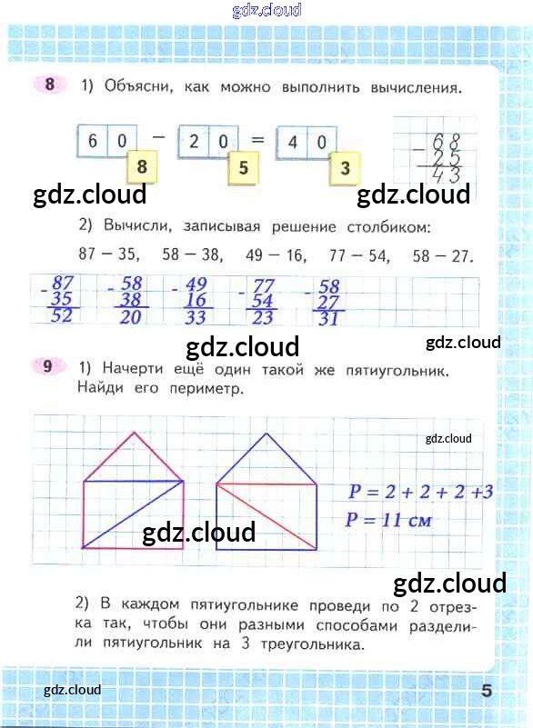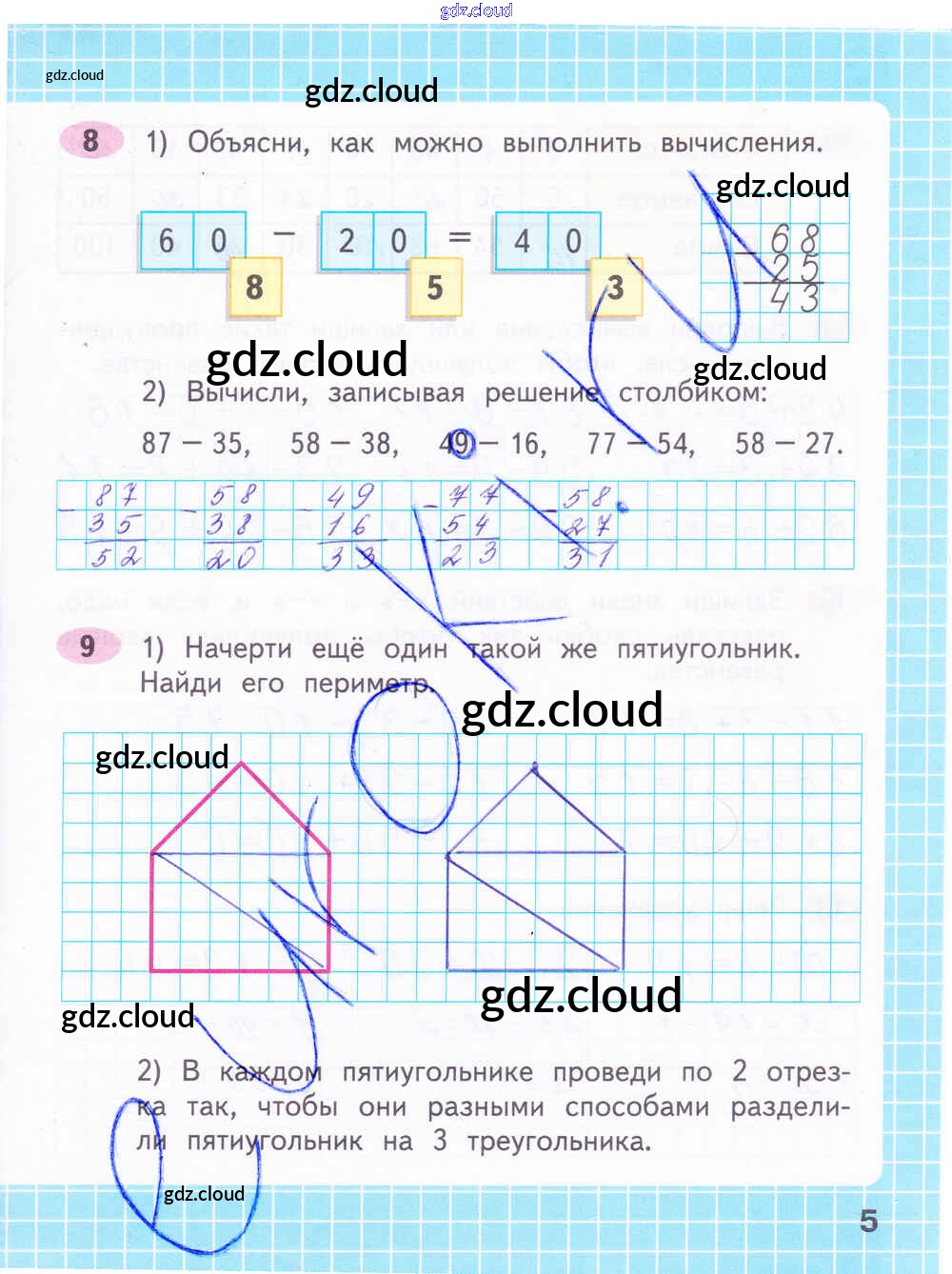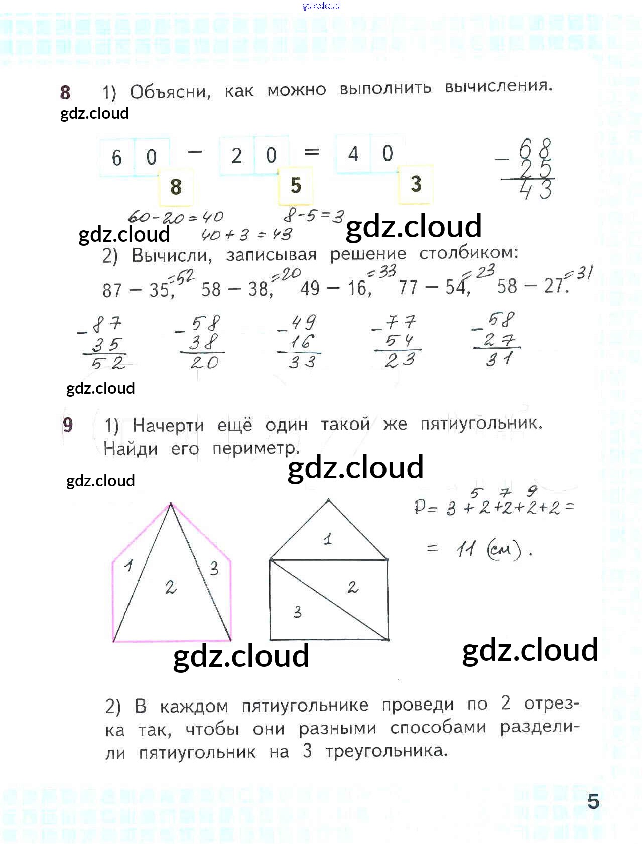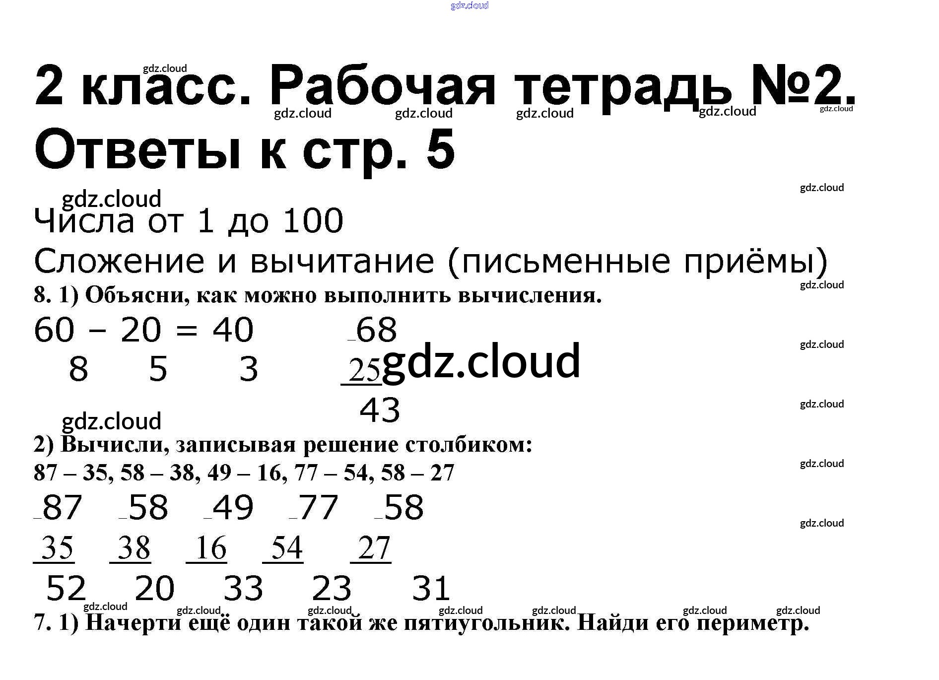 Ответ на задание стр.5 Рабочая тетрадь Математика за 2 (второй) класс Волкова, Моро Школа России 2016 Часть 1, 2