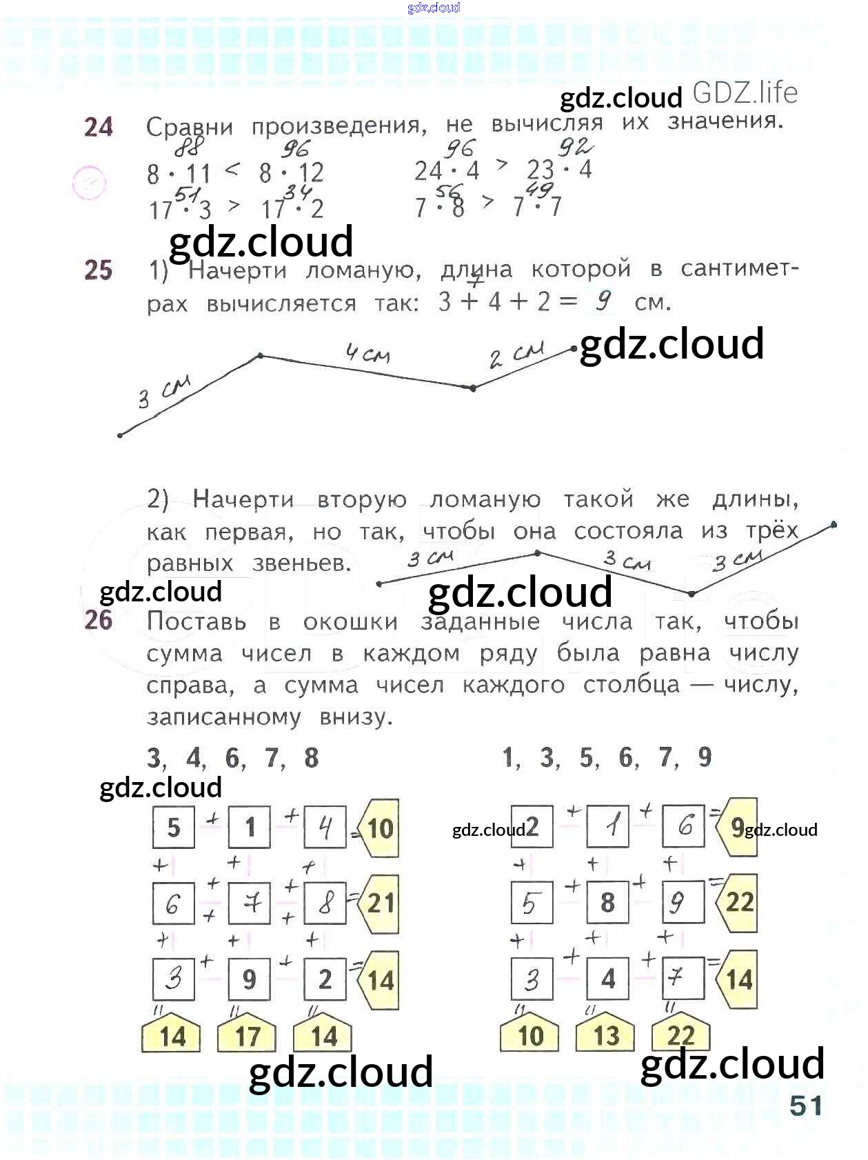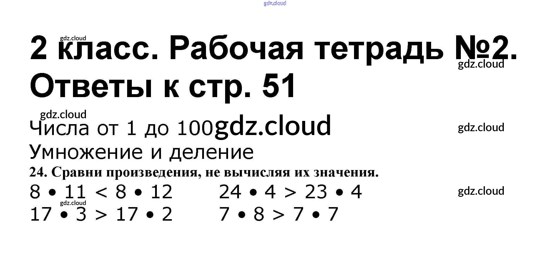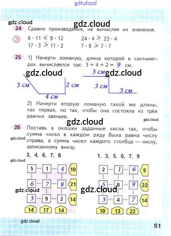 Ответ на задание стр.51 Рабочая тетрадь Математика за 2 (второй) класс Волкова, Моро Школа России 2016 Часть 1, 2