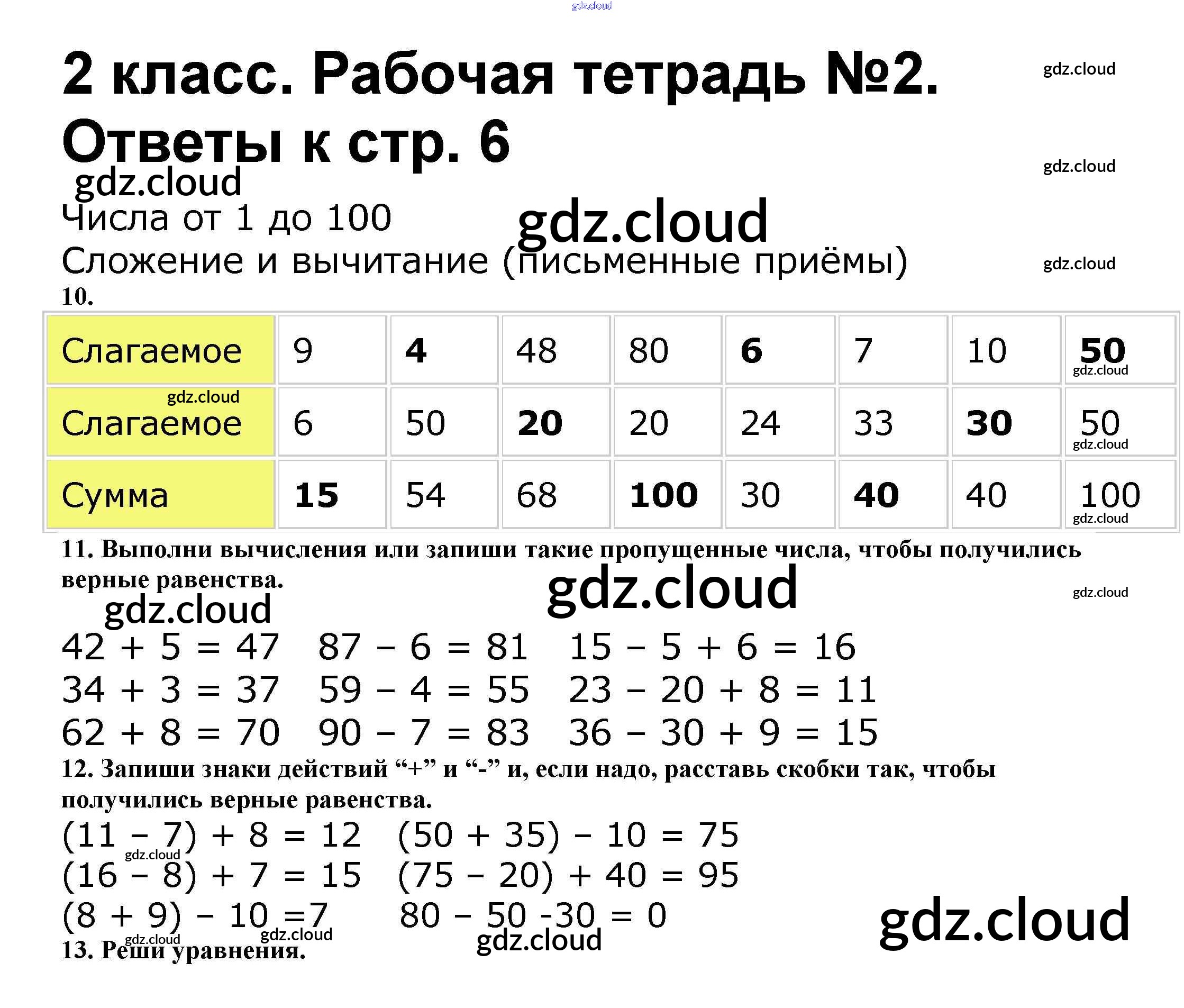 Ответ на задание стр.6 Рабочая тетрадь Математика за 2 (второй) класс Волкова, Моро Школа России 2016 Часть 1, 2