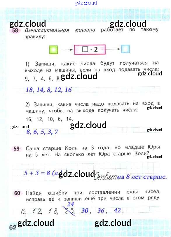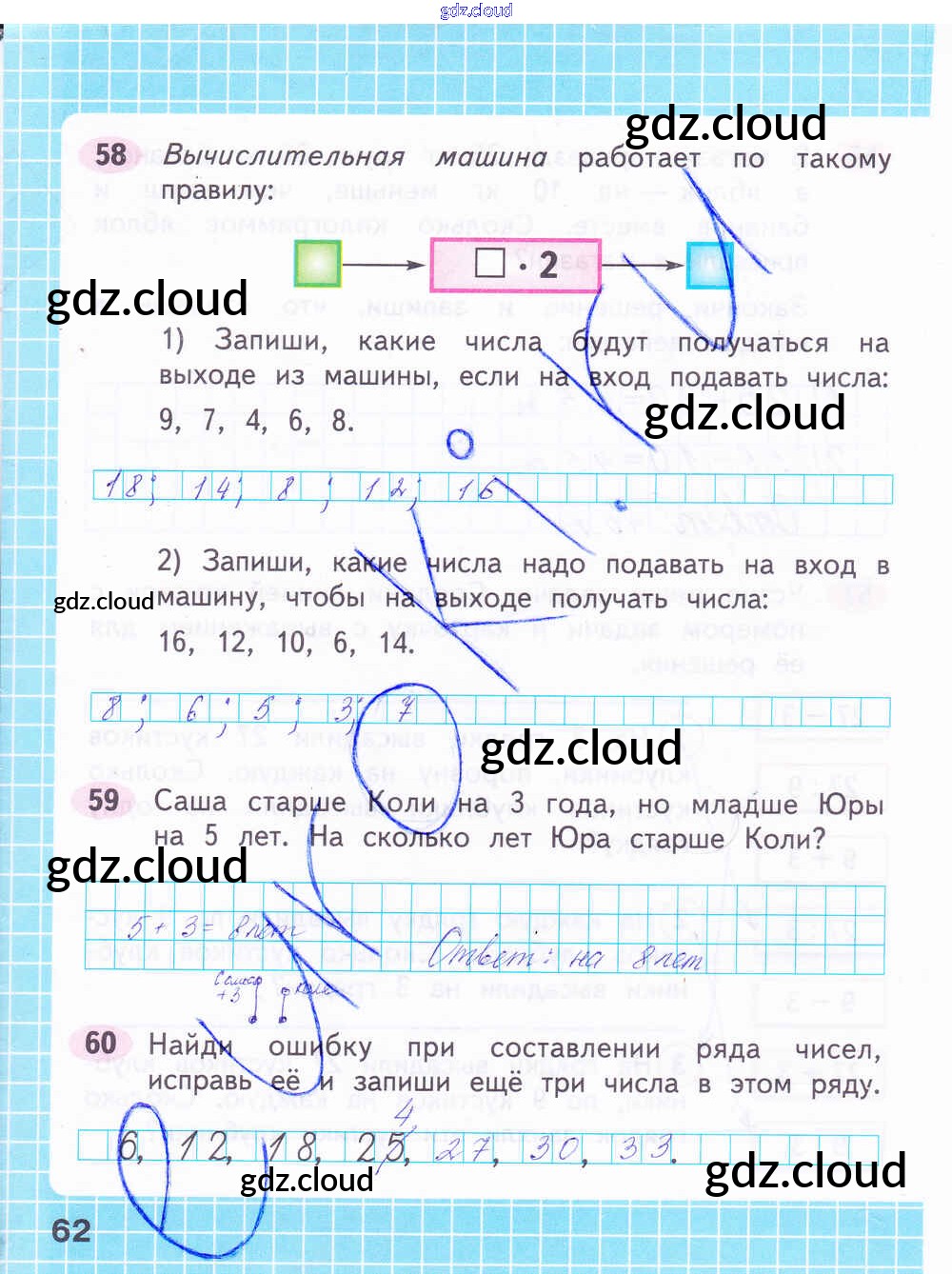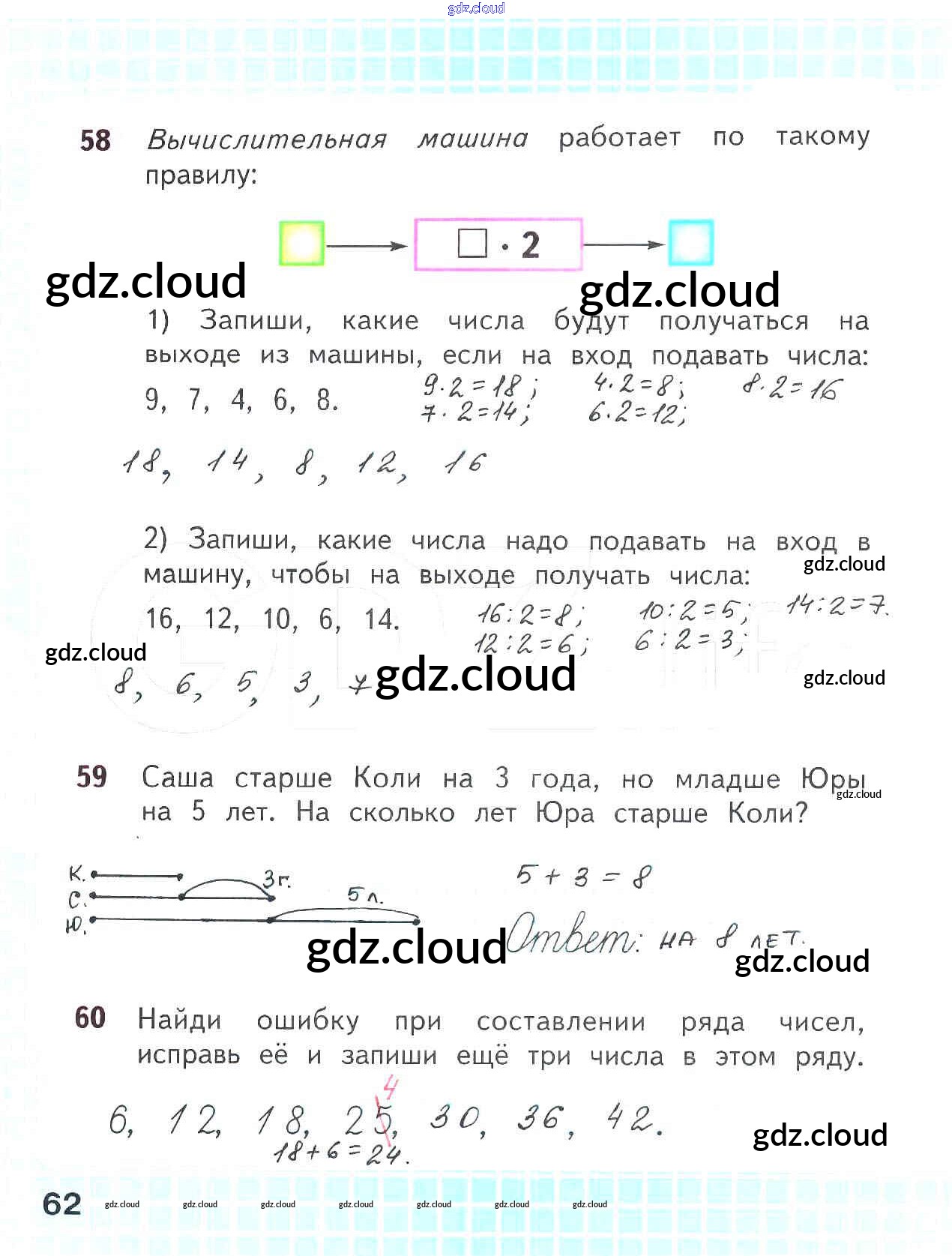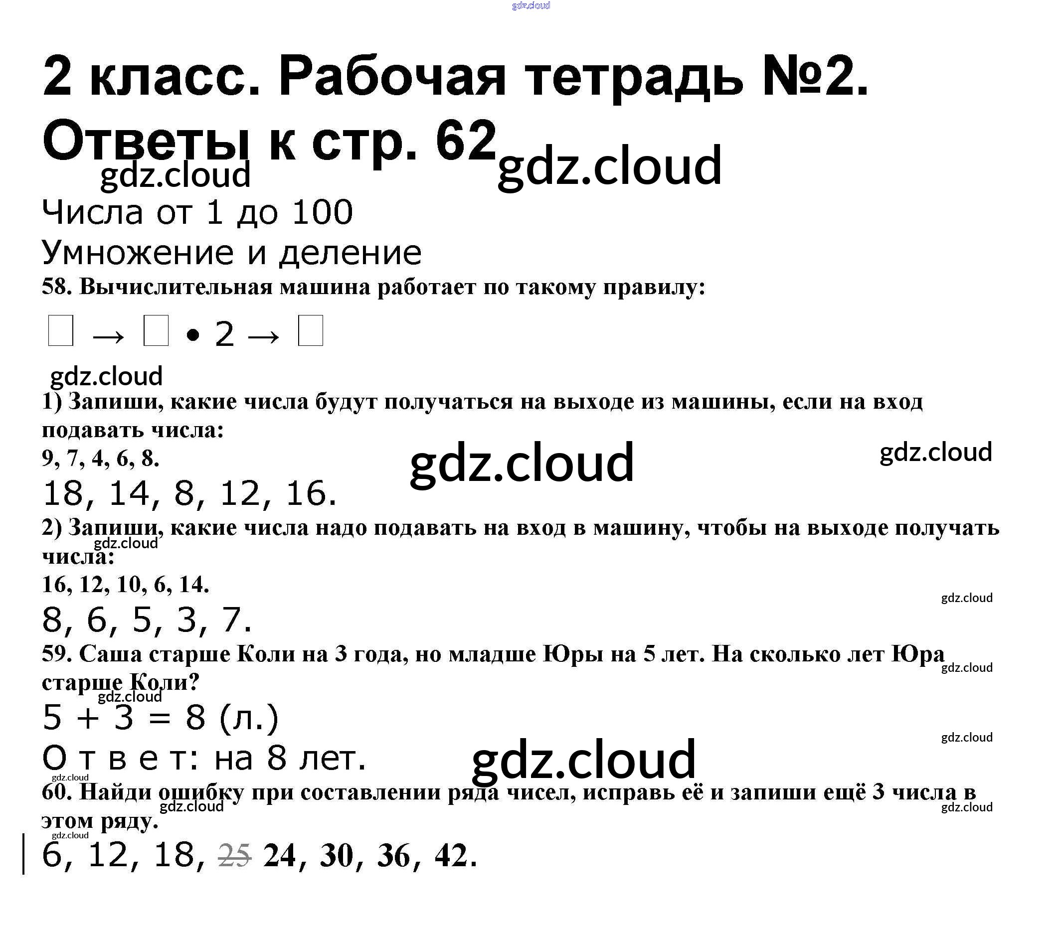Ответ на задание стр.62 Рабочая тетрадь Математика за 2 (второй) класс Волкова, Моро Школа России 2016 Часть 1, 2