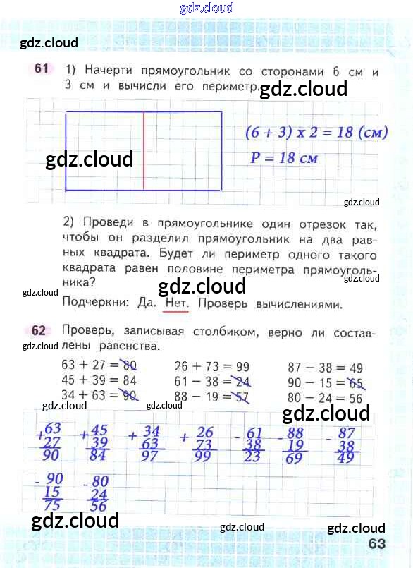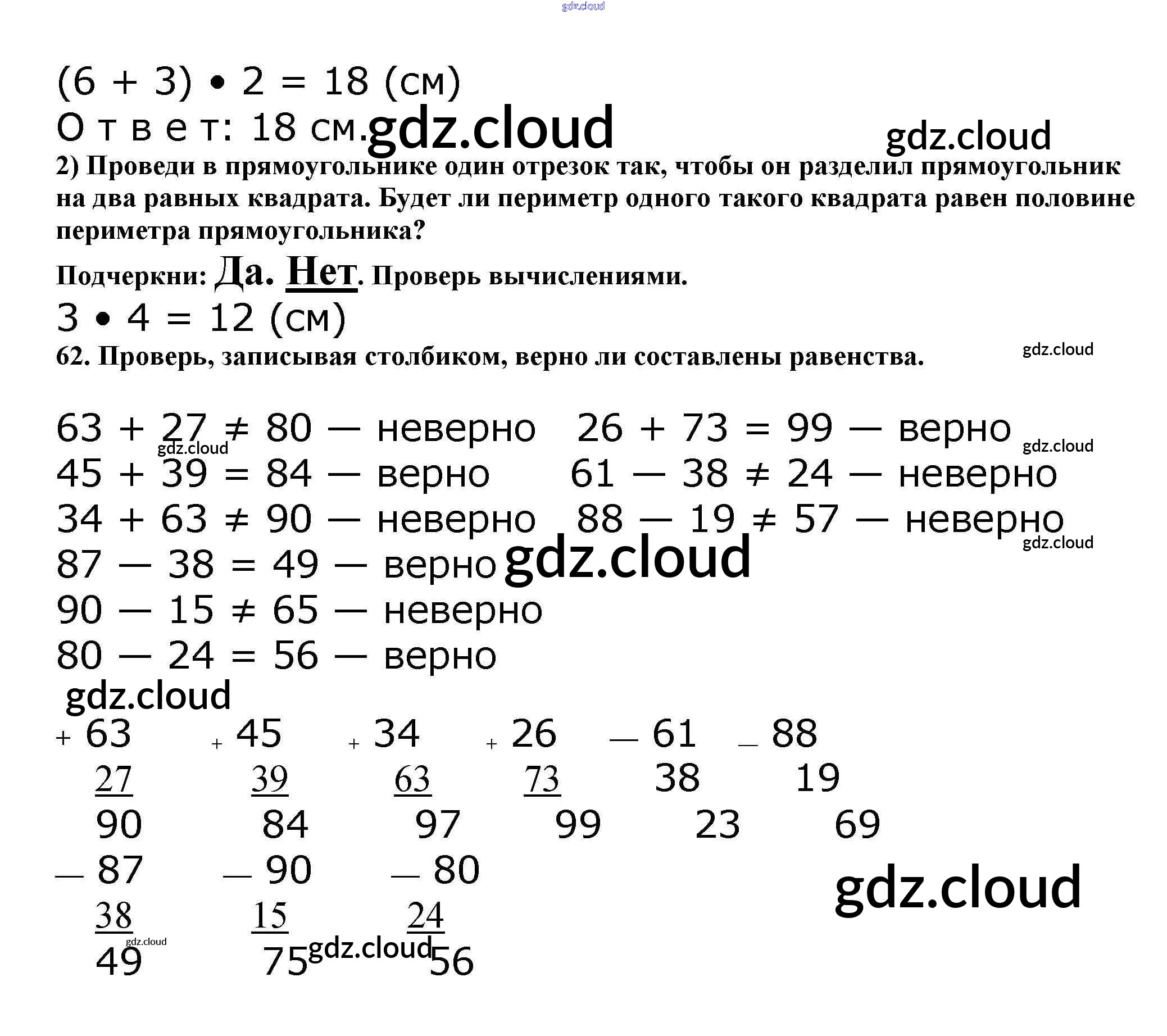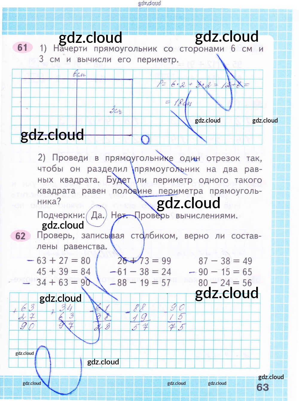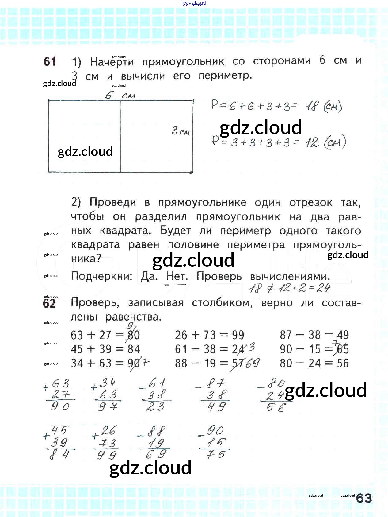 Ответ на задание стр.63 Рабочая тетрадь Математика за 2 (второй) класс Волкова, Моро Школа России 2016 Часть 1, 2