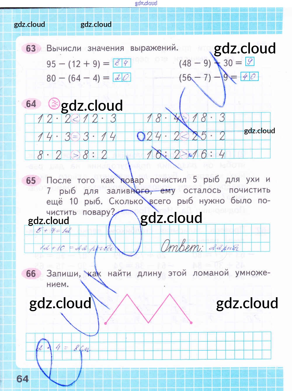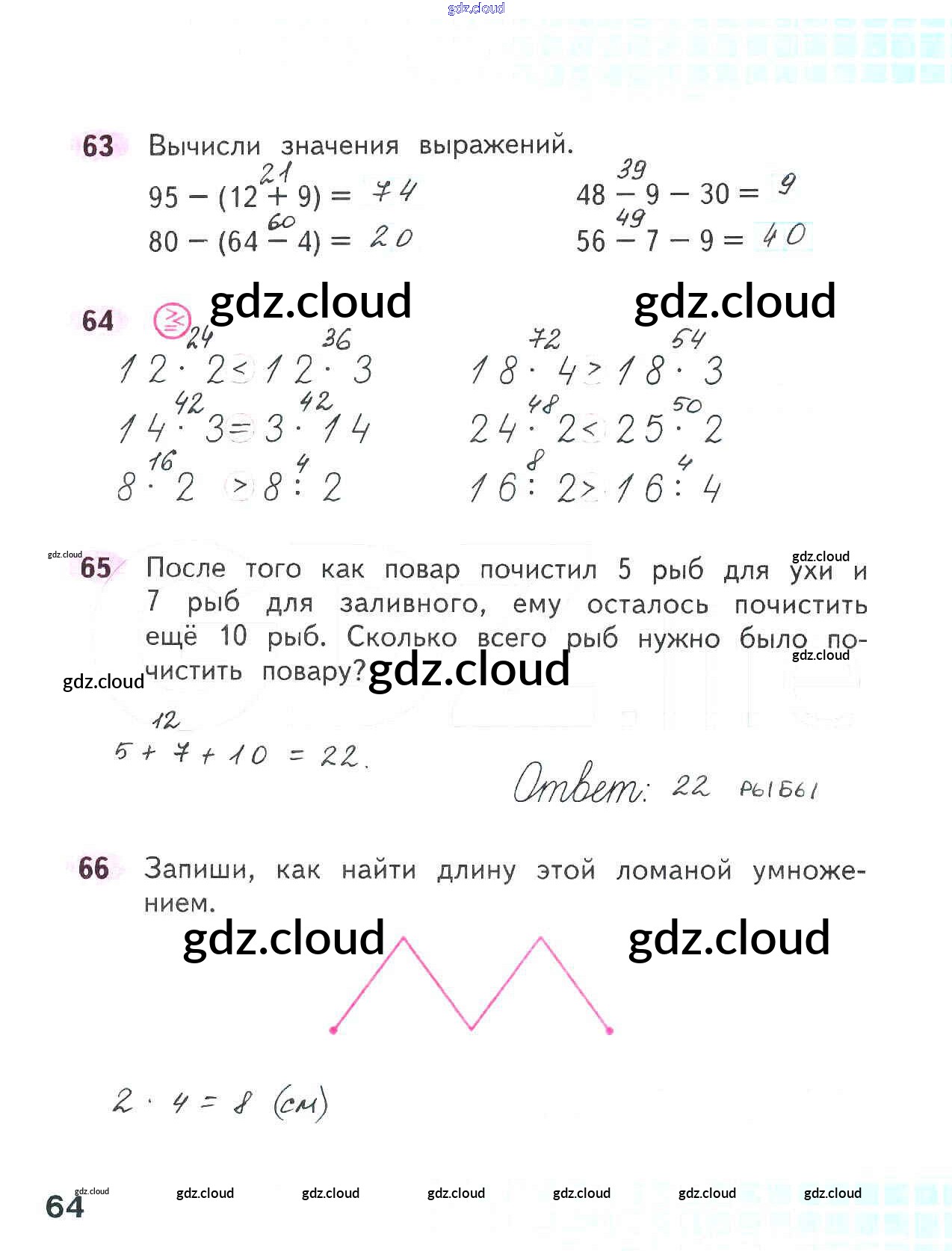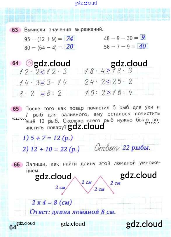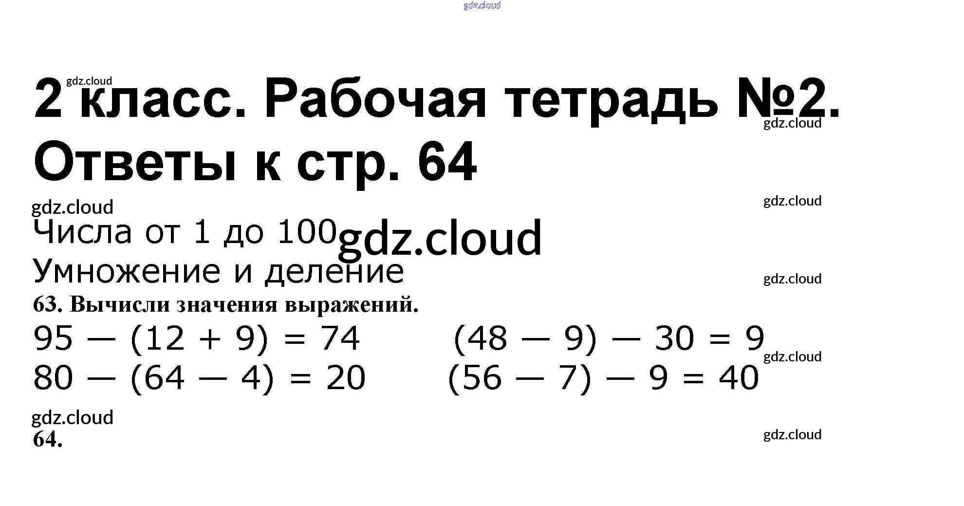 Ответ на задание стр.64 Рабочая тетрадь Математика за 2 (второй) класс Волкова, Моро Школа России 2016 Часть 1, 2