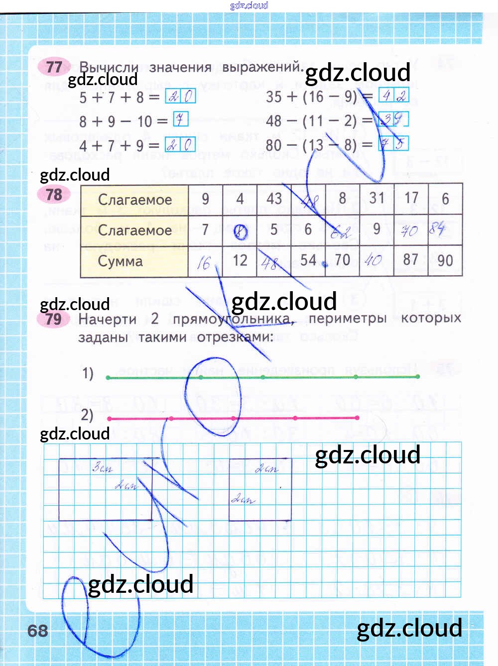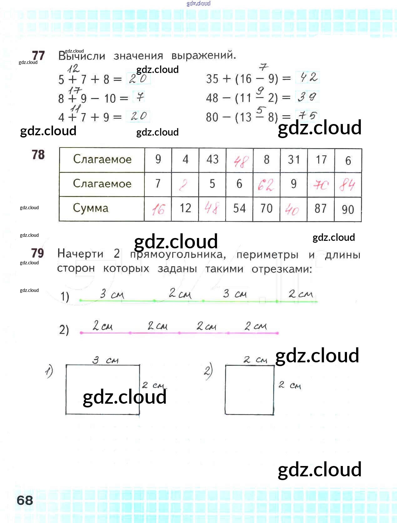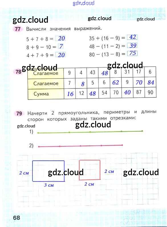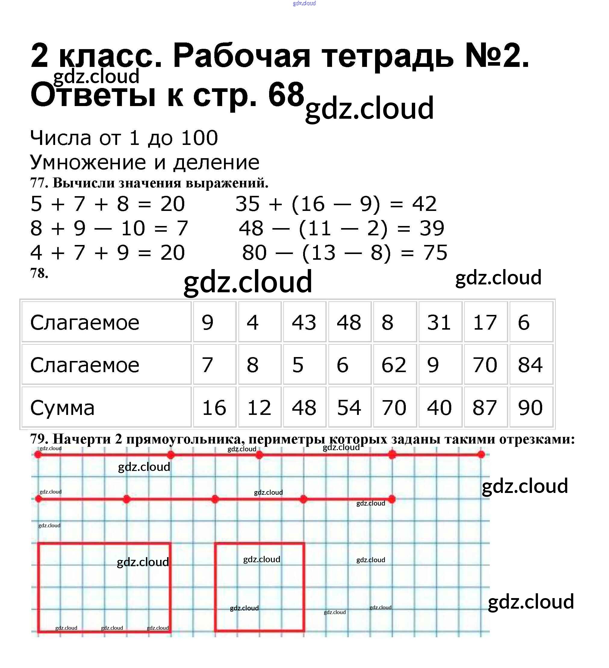 Ответ на задание стр.68 Рабочая тетрадь Математика за 2 (второй) класс Волкова, Моро Школа России 2016 Часть 1, 2