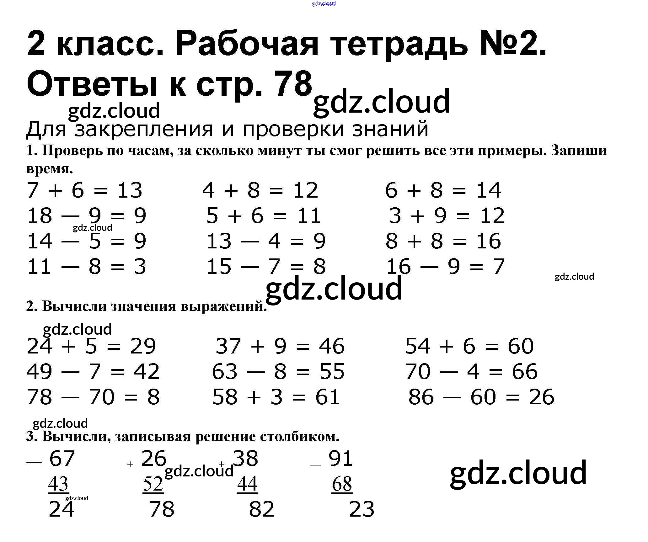 Ответ на задание стр.78 Рабочая тетрадь Математика за 2 (второй) класс Волкова, Моро Школа России 2016 Часть 1, 2
