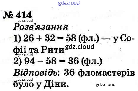 Ответ на задание 414 Учебник Математика за 2 (второй) класс Оляницкая, Ривкинд 2012 онлайн и без номера телефона.
