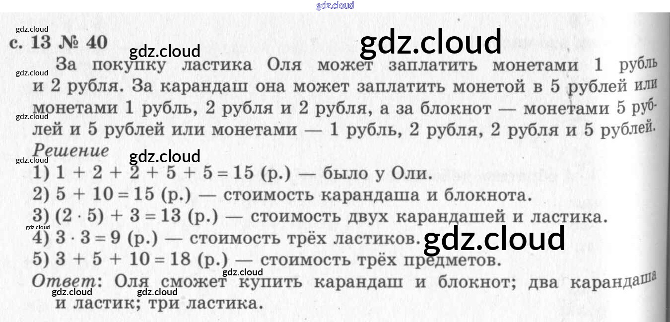 Ответ на задание 40 Учебник Математика за 2 (второй) класс Рудницкая, Юдачева Начальная школа XXI века 2016 Часть 1, 2