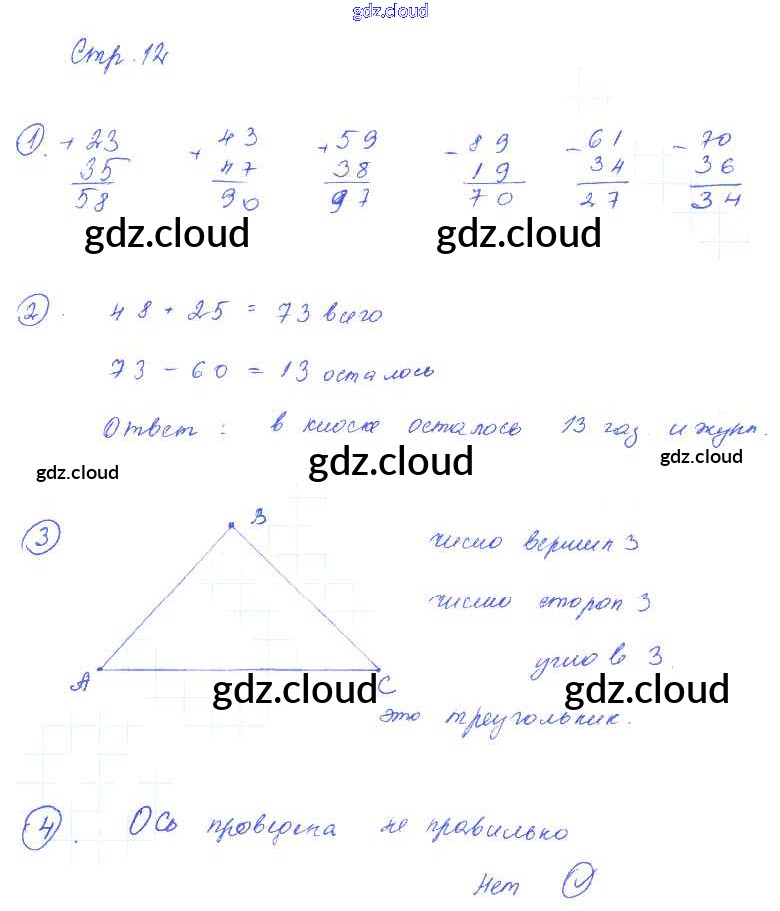 Ответ на задание 12 Тетрадь для контрольных работ Математика за 2 (второй) класс Рудницкая, Юдачева Начальная школа XXI века 2014