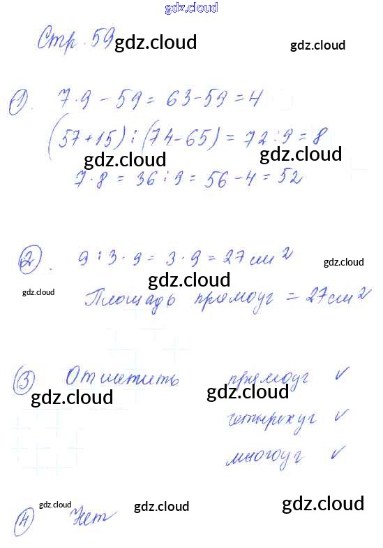 Ответ на задание 59 Тетрадь для контрольных работ Математика за 2 (второй) класс Рудницкая, Юдачева Начальная школа XXI века 2014
