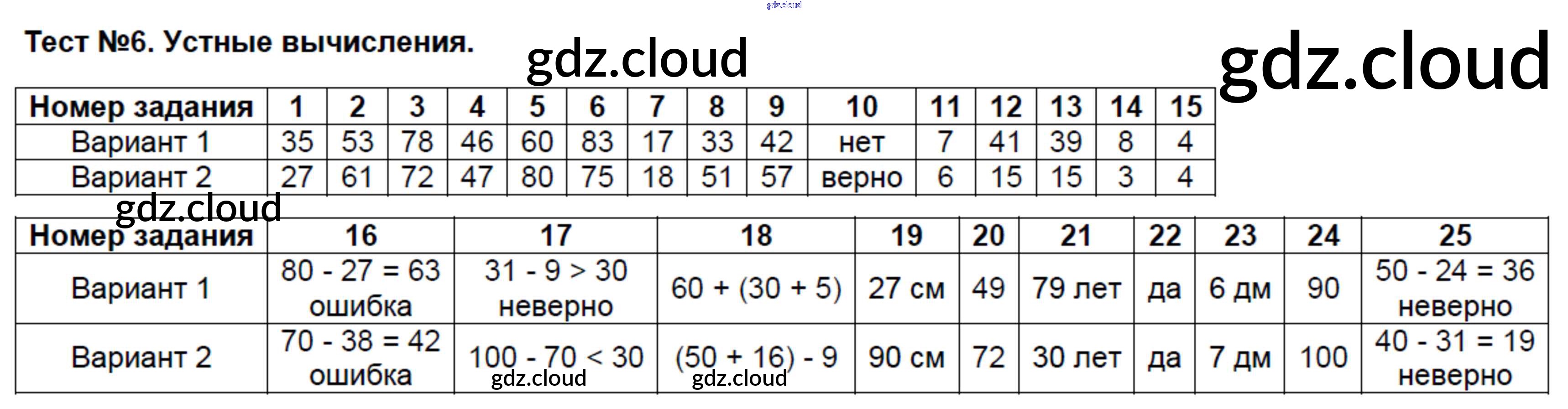 Ответ на задание 6 Тесты Математика за 2 (второй) класс Рудницкая УМК 2016 Часть 1, 2 ФГОС онлайн и без номера телефона.