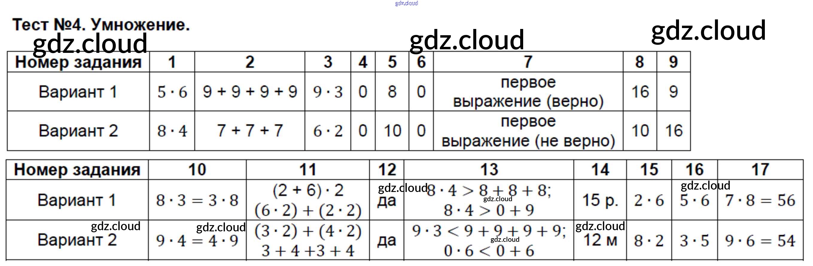 Ответы к части 2. Тесты по Математике 2 класс Тесты Рудницкая УМК Часть 1, 2 Экзамен