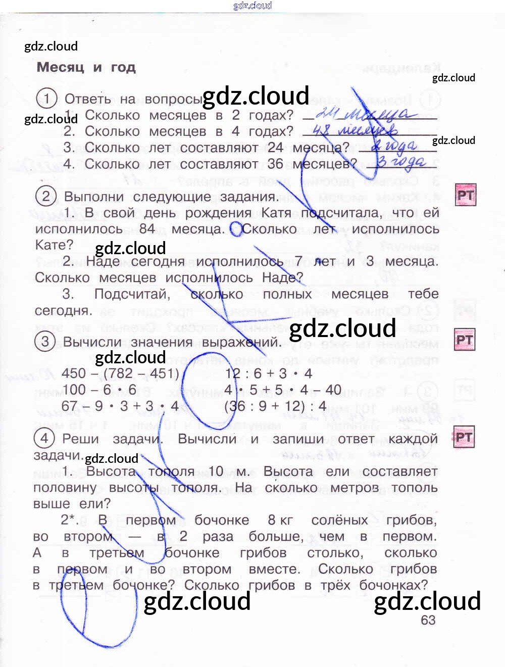 Ответ на задание 63 Тетрадь для самостоятельной работы Математика за 2 (второй) класс Захарова, Юдина Перспективная начальная школа 2016 Часть 1, 2, 3