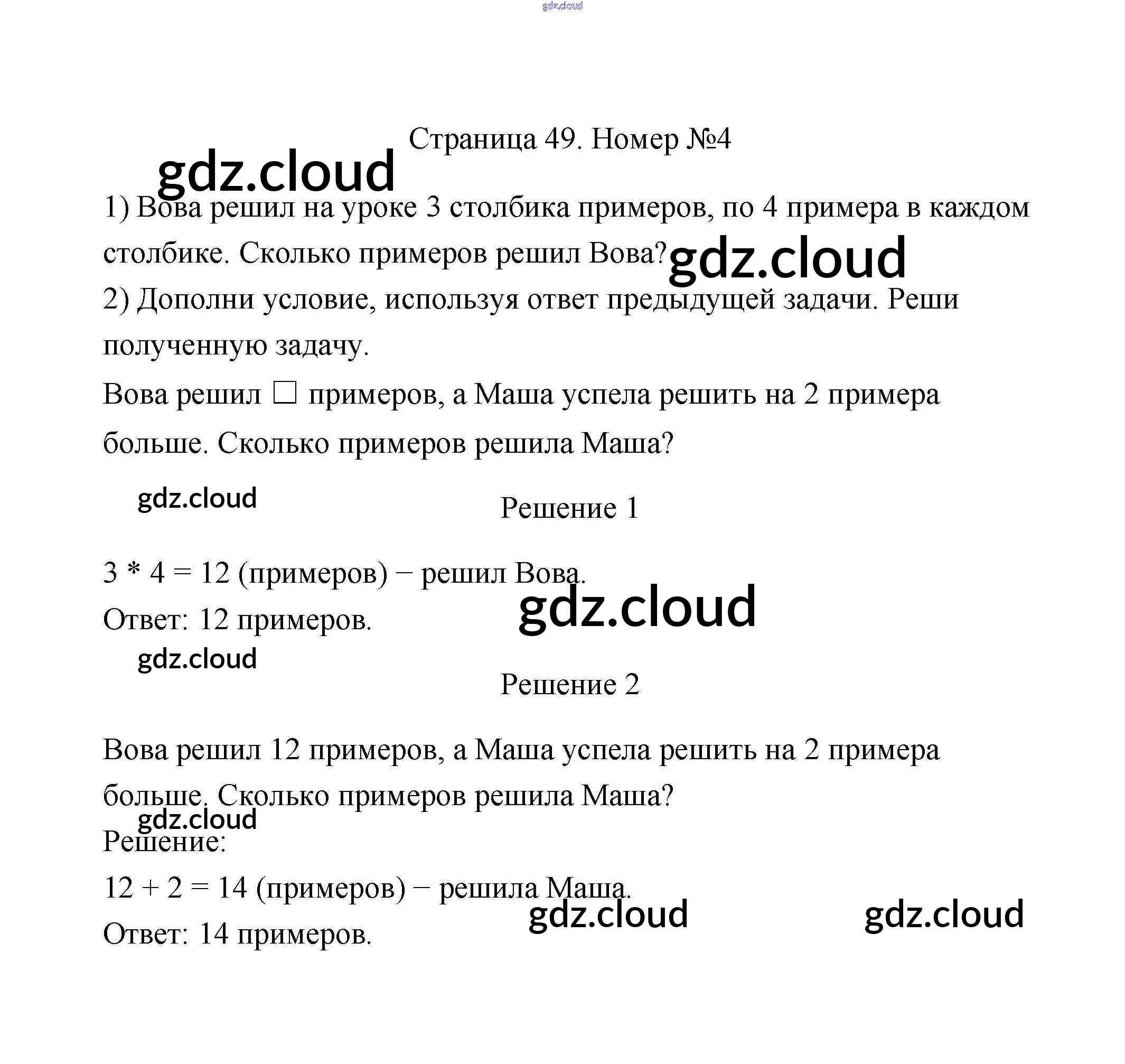 Страницы 49-50 Ответы к части 1 по Математике 2 класс Учебник Дорофеев Перспектива Часть 1, 2 Просвещение