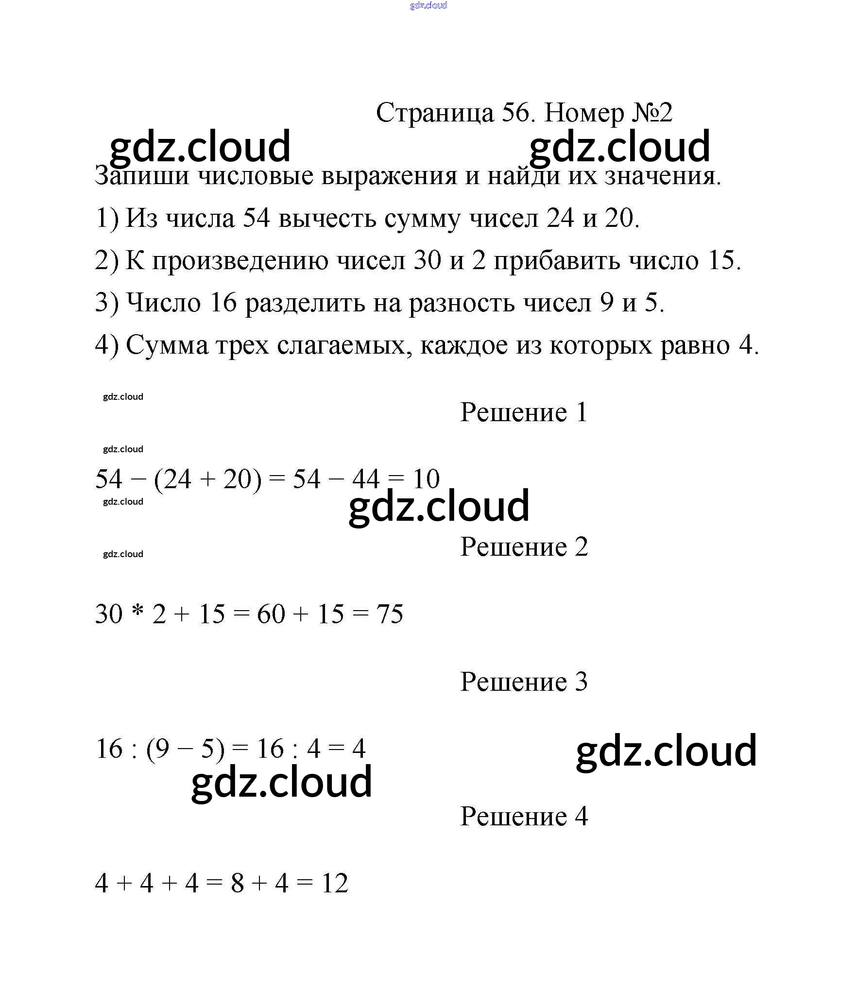 Страницы 56-57 Ответы к части 2 по Математике 2 класс Учебник Дорофеев Перспектива Часть 1, 2 Просвещение