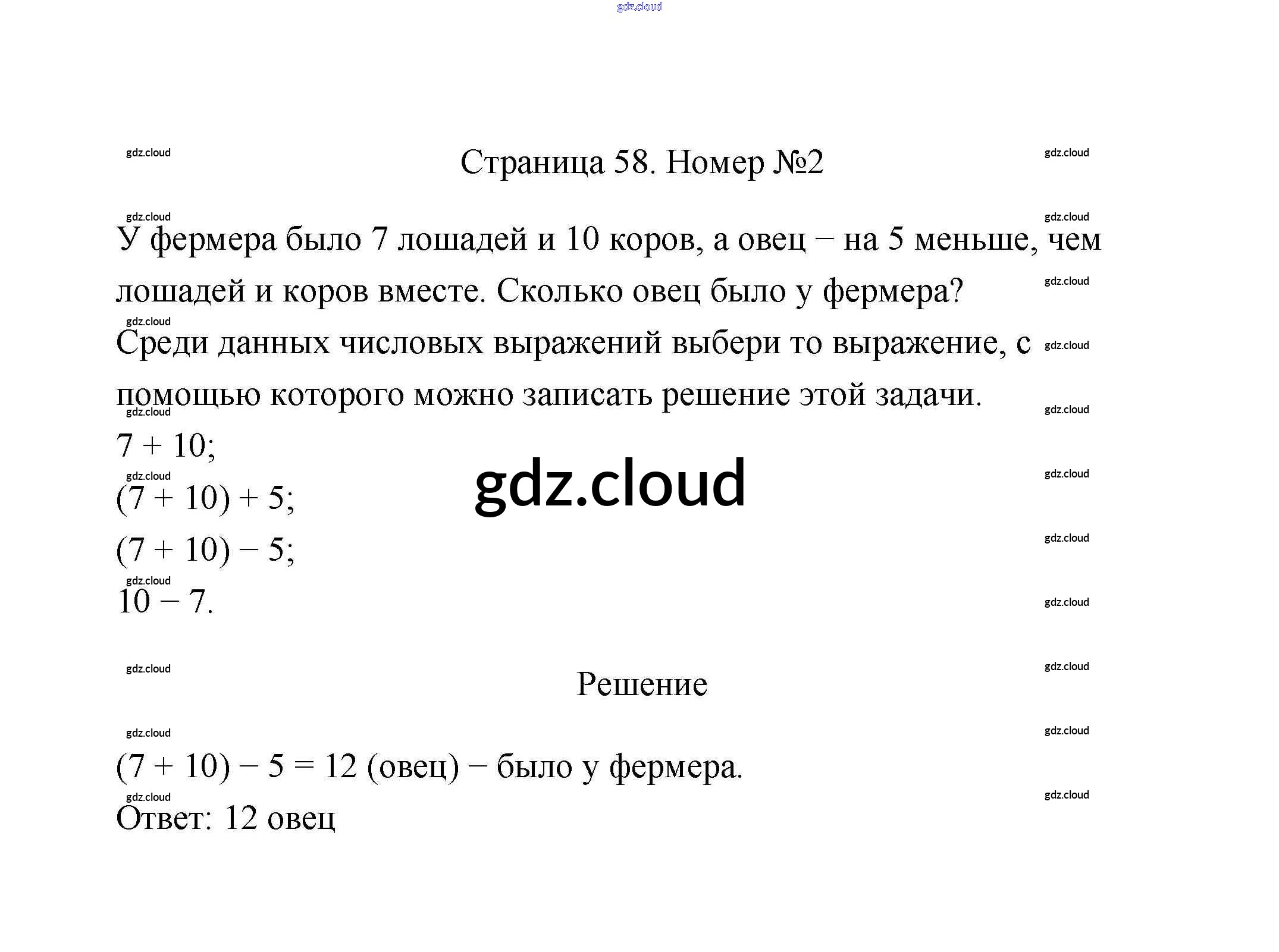 Страницы 58-59 Ответы к части 2 по Математике 2 класс Учебник Дорофеев Перспектива Часть 1, 2 Просвещение