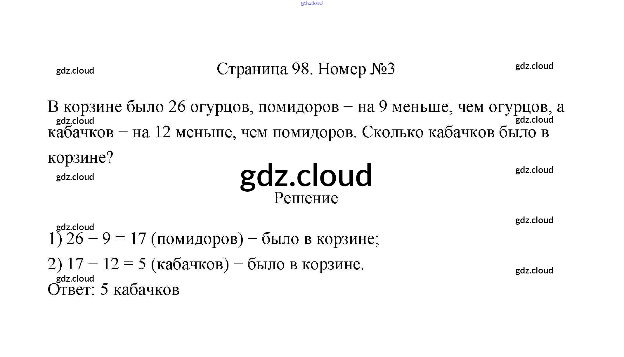 Страницы 98-99 Ответы к части 2 по Математике 2 класс Учебник Дорофеев Перспектива Часть 1, 2 Просвещение