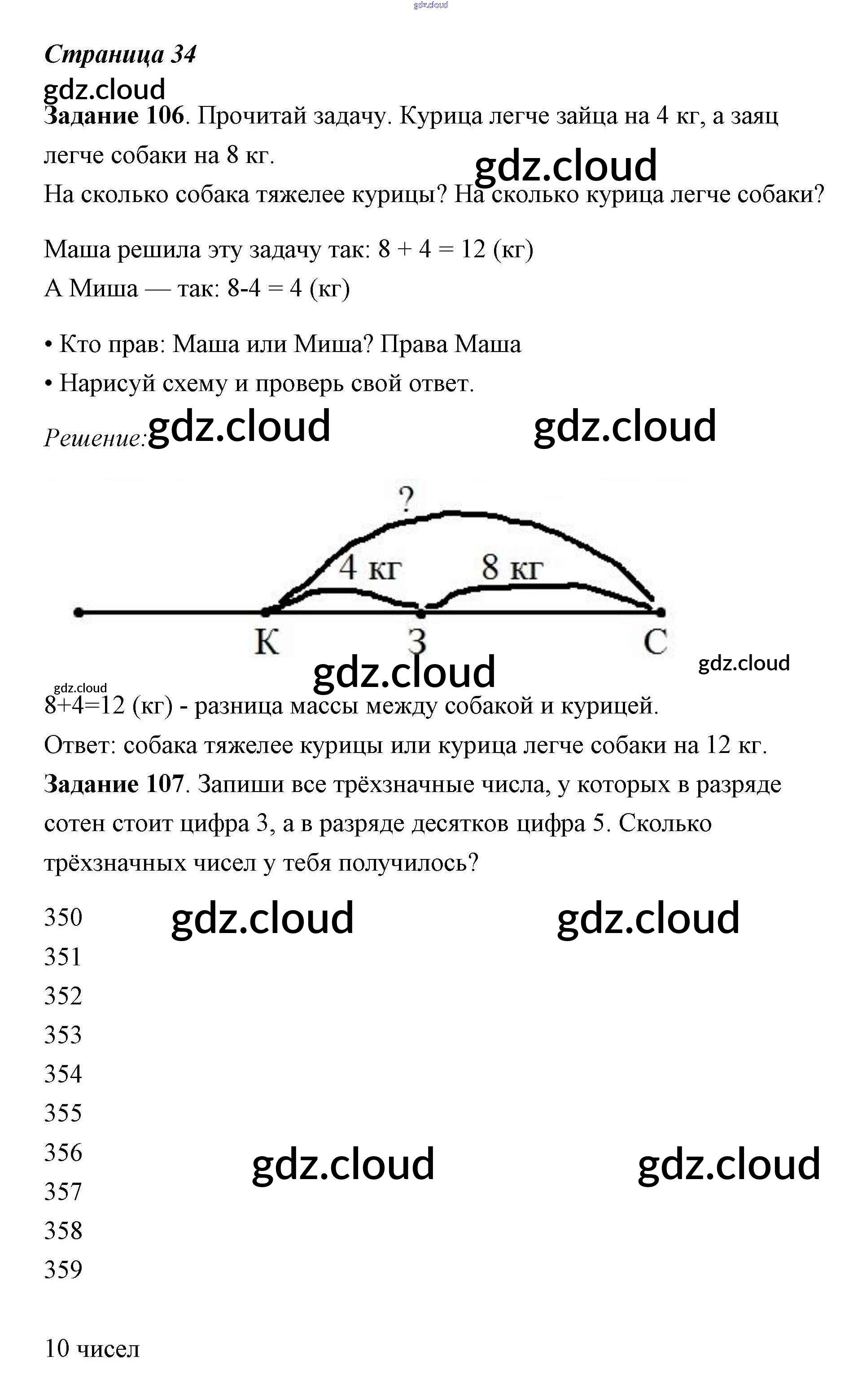 Ответ на задание 34 Учебник Математика за 2 (второй) класс Истомина Гармония 2016 Часть 1, 2 ФГОС онлайн и без номера телефона.