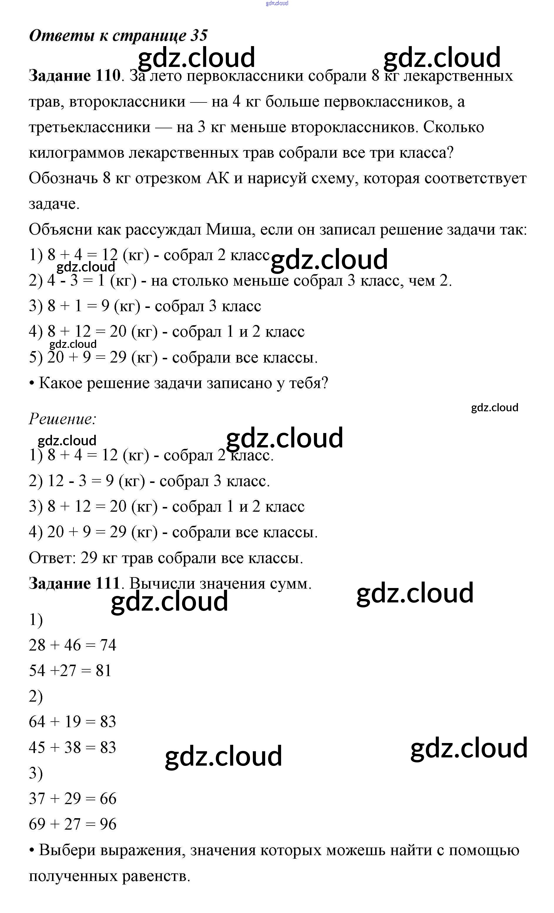 Ответ на задание 35 Учебник Математика за 2 (второй) класс Истомина Гармония 2016 Часть 1, 2 ФГОС онлайн и без номера телефона.