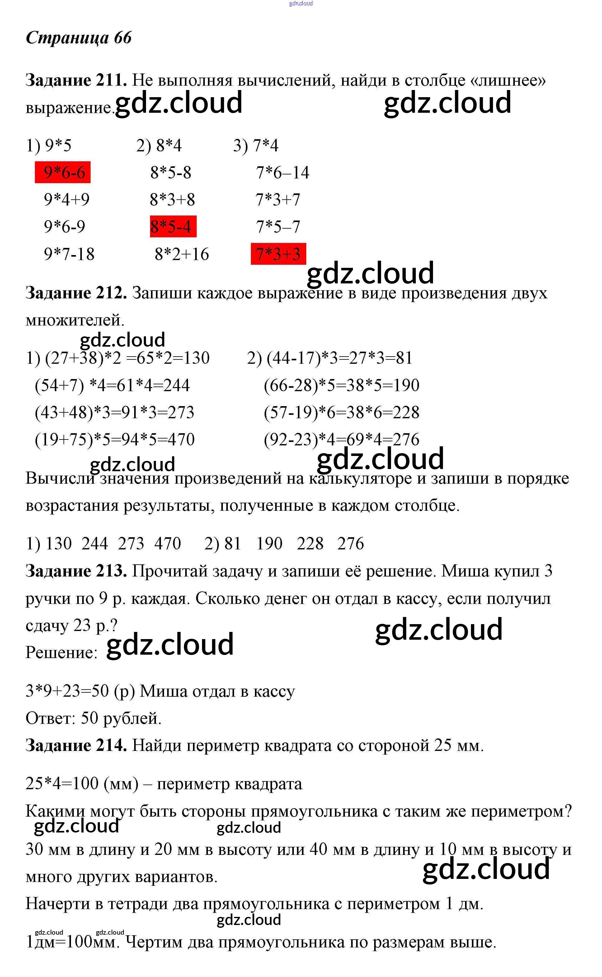 Ответ на задание 66 Учебник Математика за 2 (второй) класс Истомина Гармония 2016 Часть 1, 2 ФГОС онлайн и без номера телефона.