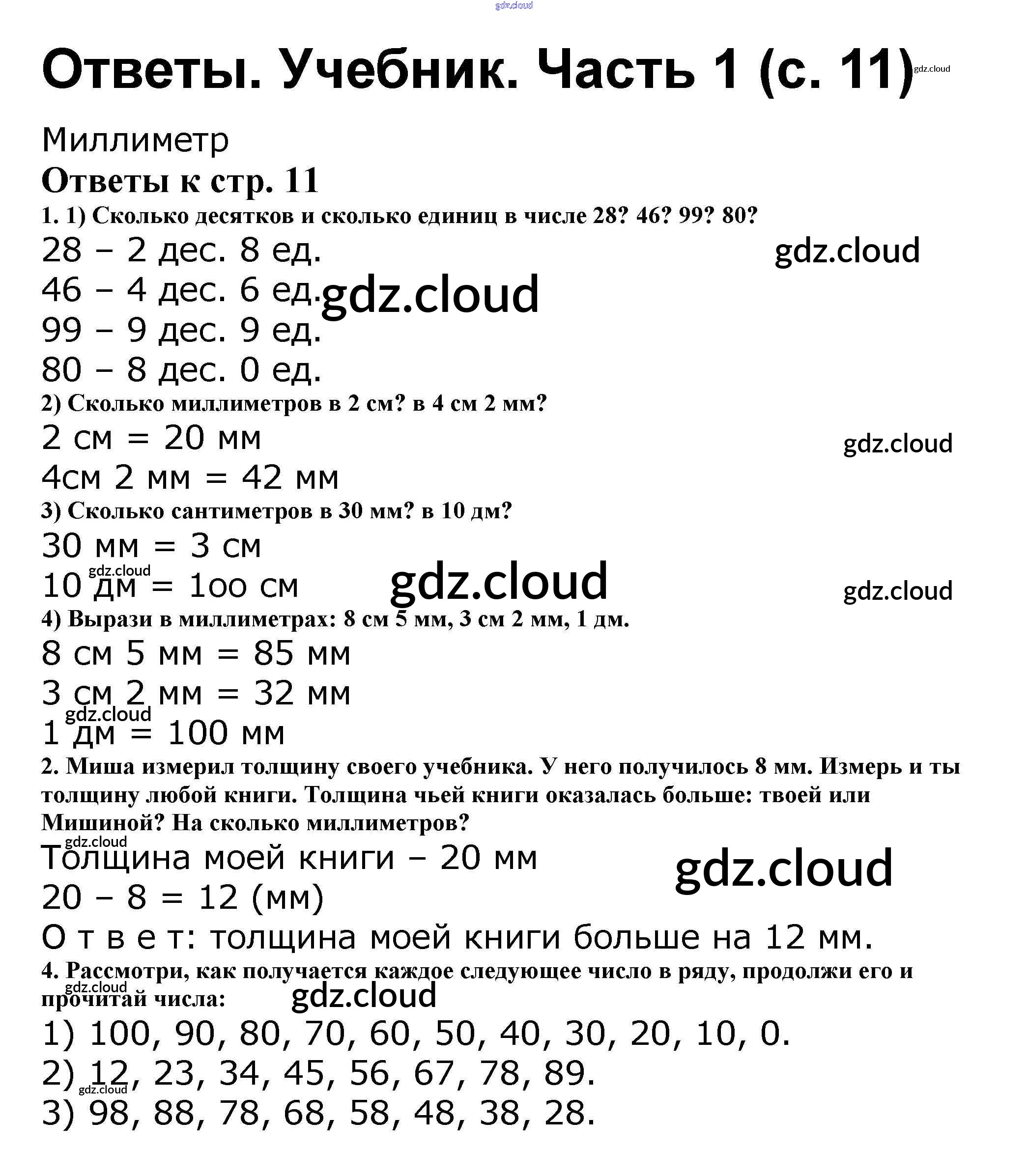 Ответ на задание стр.11 Учебник Математика за 2 (второй) класс Моро, Бантова, Бельтюкова Школа России 2015 Часть 1, 2