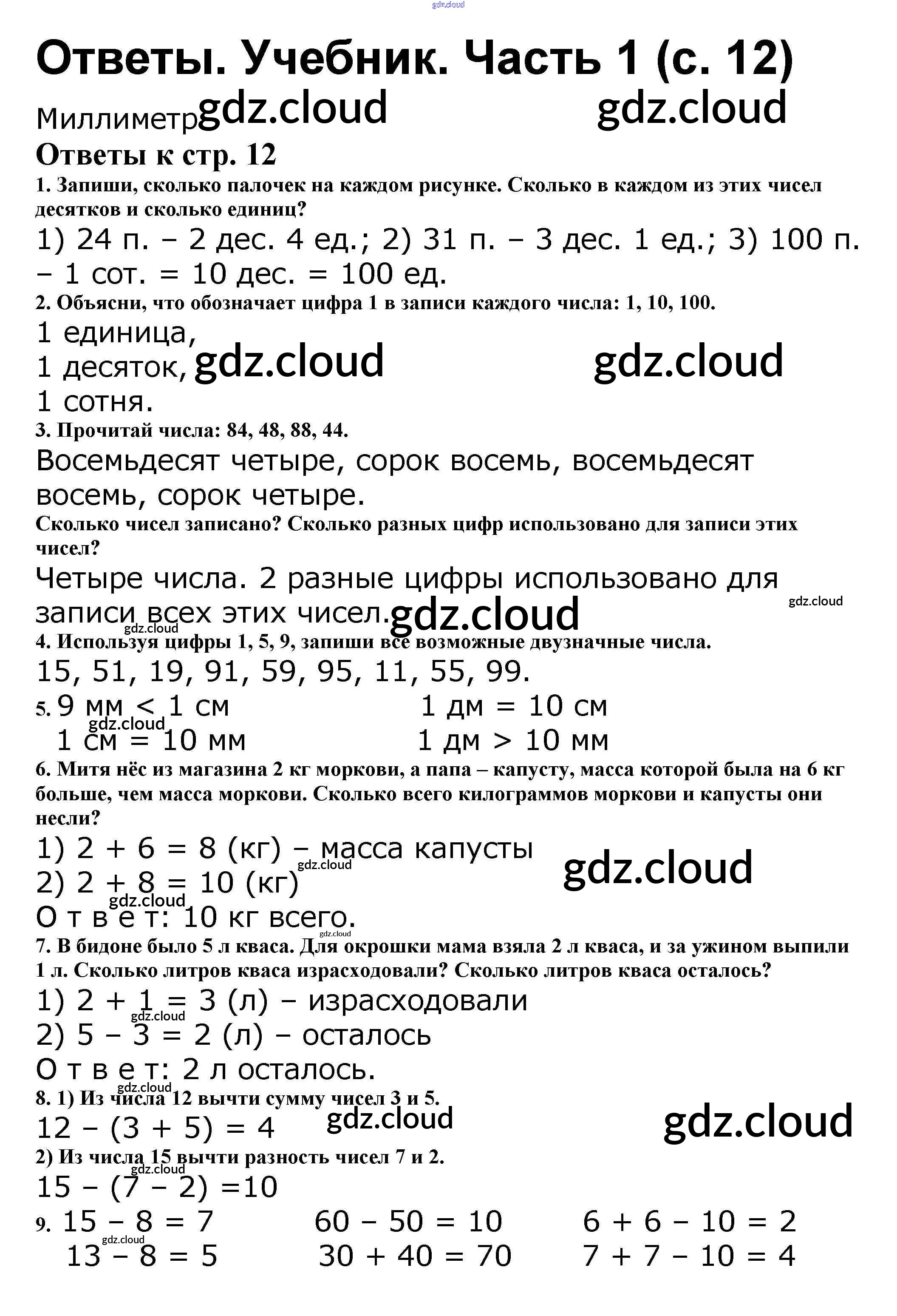 Ответ на задание стр.12 Учебник Математика за 2 (второй) класс Моро, Бантова, Бельтюкова Школа России 2015 Часть 1, 2