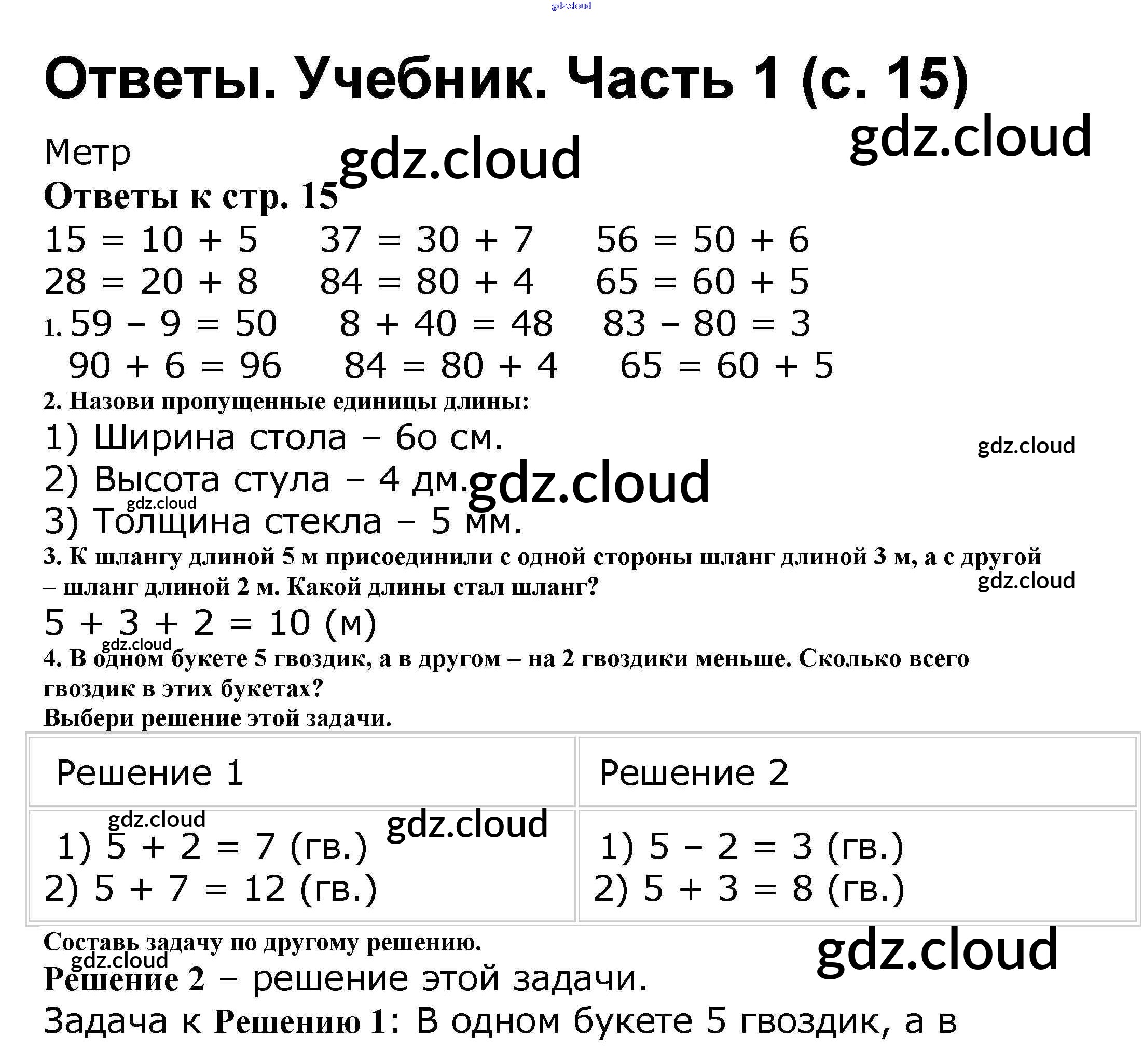 Ответ на задание стр.15 Учебник Математика за 2 (второй) класс Моро, Бантова, Бельтюкова Школа России 2015 Часть 1, 2