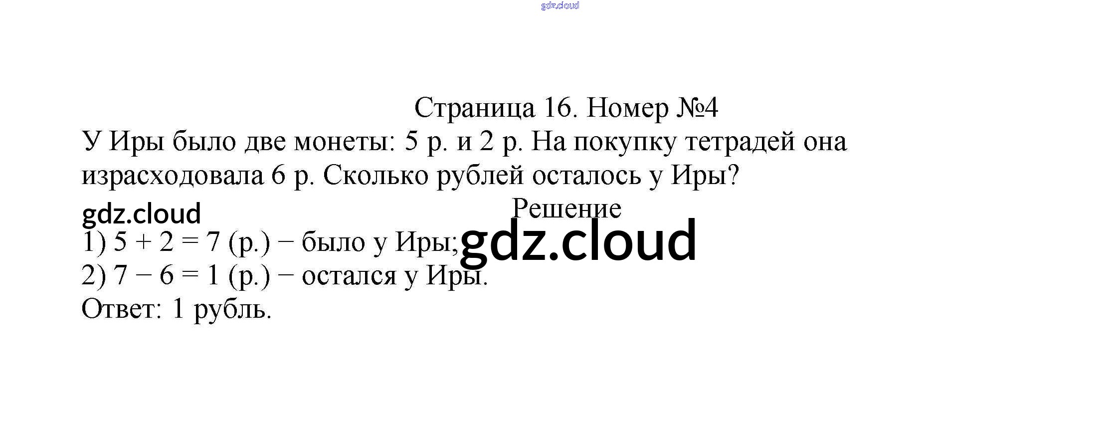Ответ на задание стр.16 Учебник Математика за 2 (второй) класс Моро, Бантова, Бельтюкова Школа России 2015 Часть 1, 2