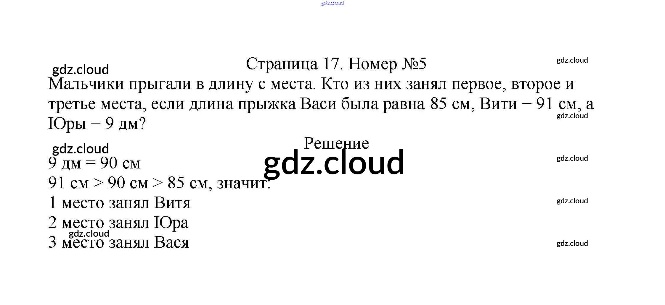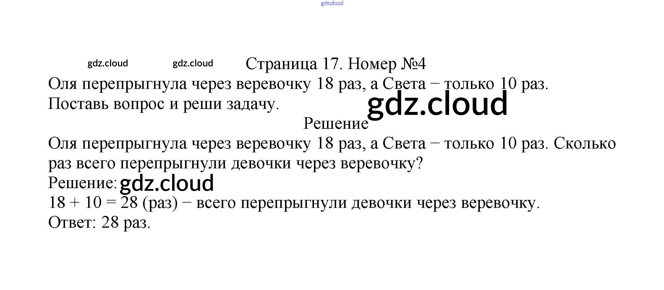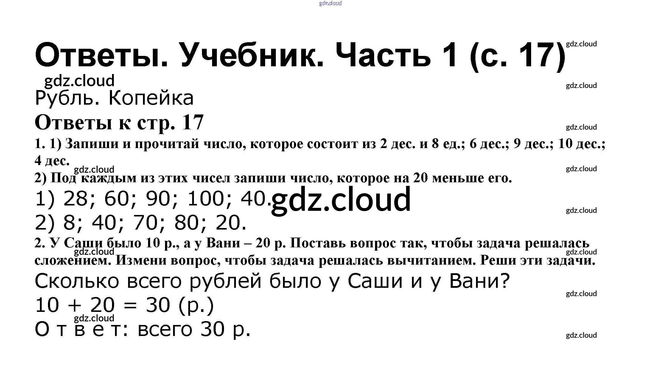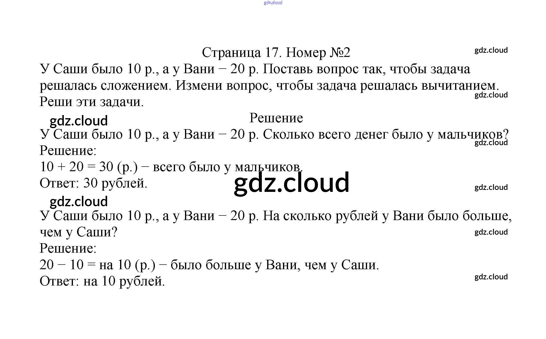 Ответ на задание стр.17 Учебник Математика за 2 (второй) класс Моро, Бантова, Бельтюкова Школа России 2015 Часть 1, 2