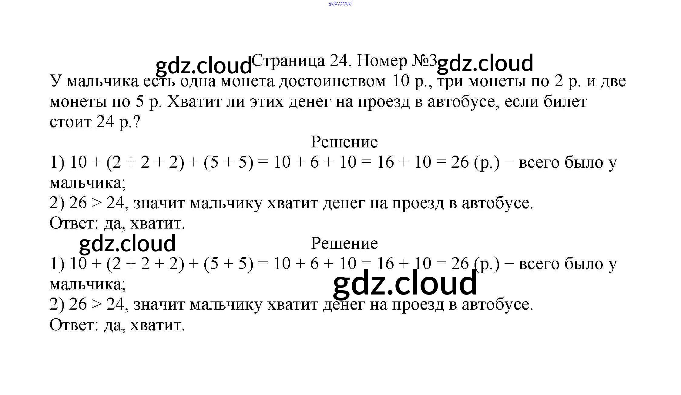 Ответ на задание стр.24 Учебник Математика за 2 (второй) класс Моро, Бантова, Бельтюкова Школа России 2015 Часть 1, 2