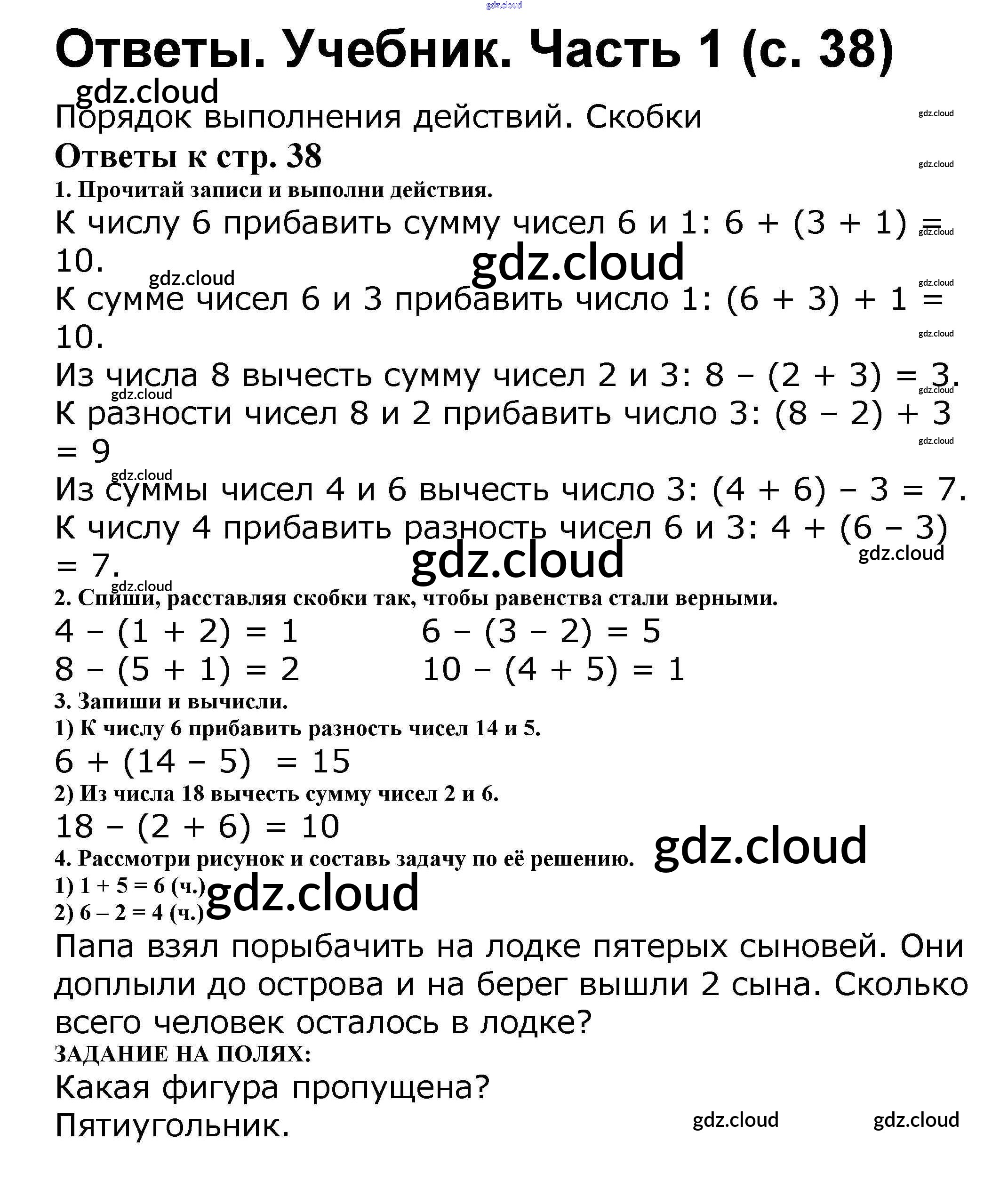 Ответ на задание стр.38 Учебник Математика за 2 (второй) класс Моро, Бантова, Бельтюкова Школа России 2015 Часть 1, 2
