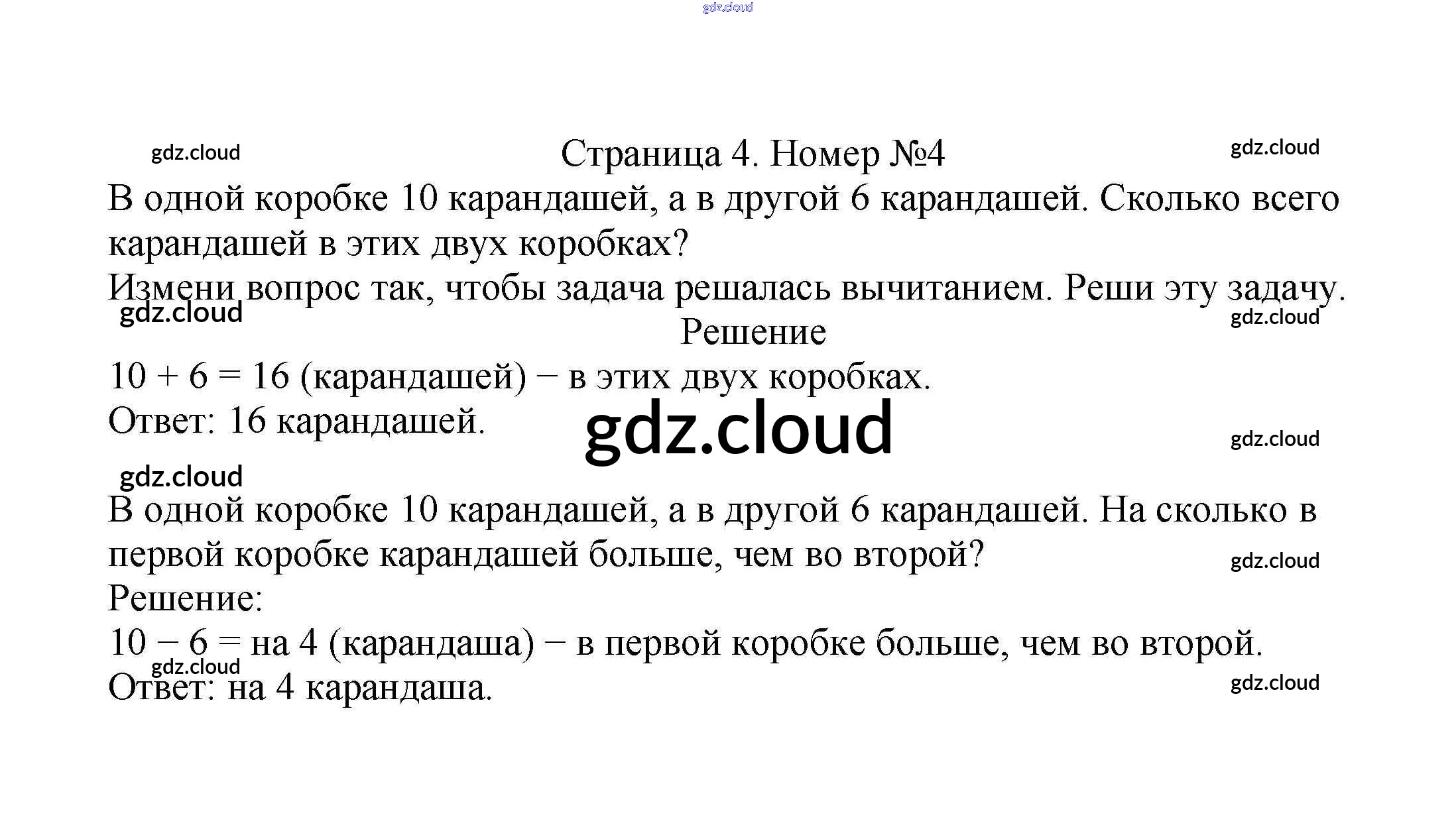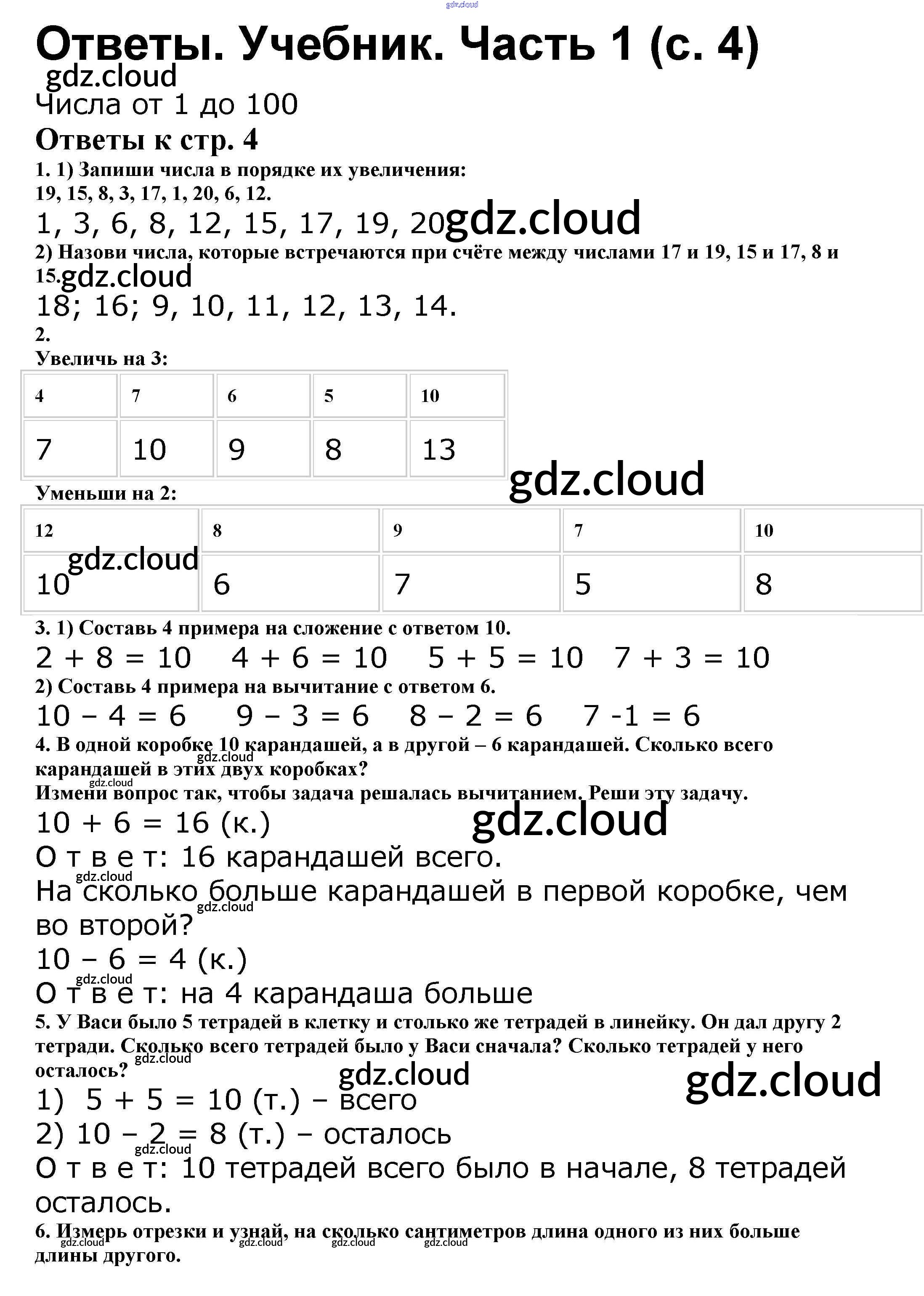 Ответ на задание стр.4 Учебник Математика за 2 (второй) класс Моро, Бантова, Бельтюкова Школа России 2015 Часть 1, 2