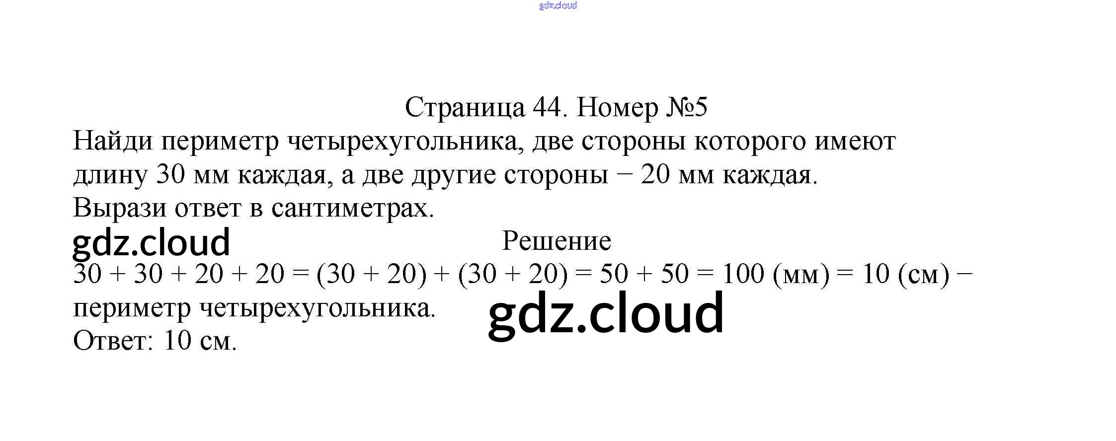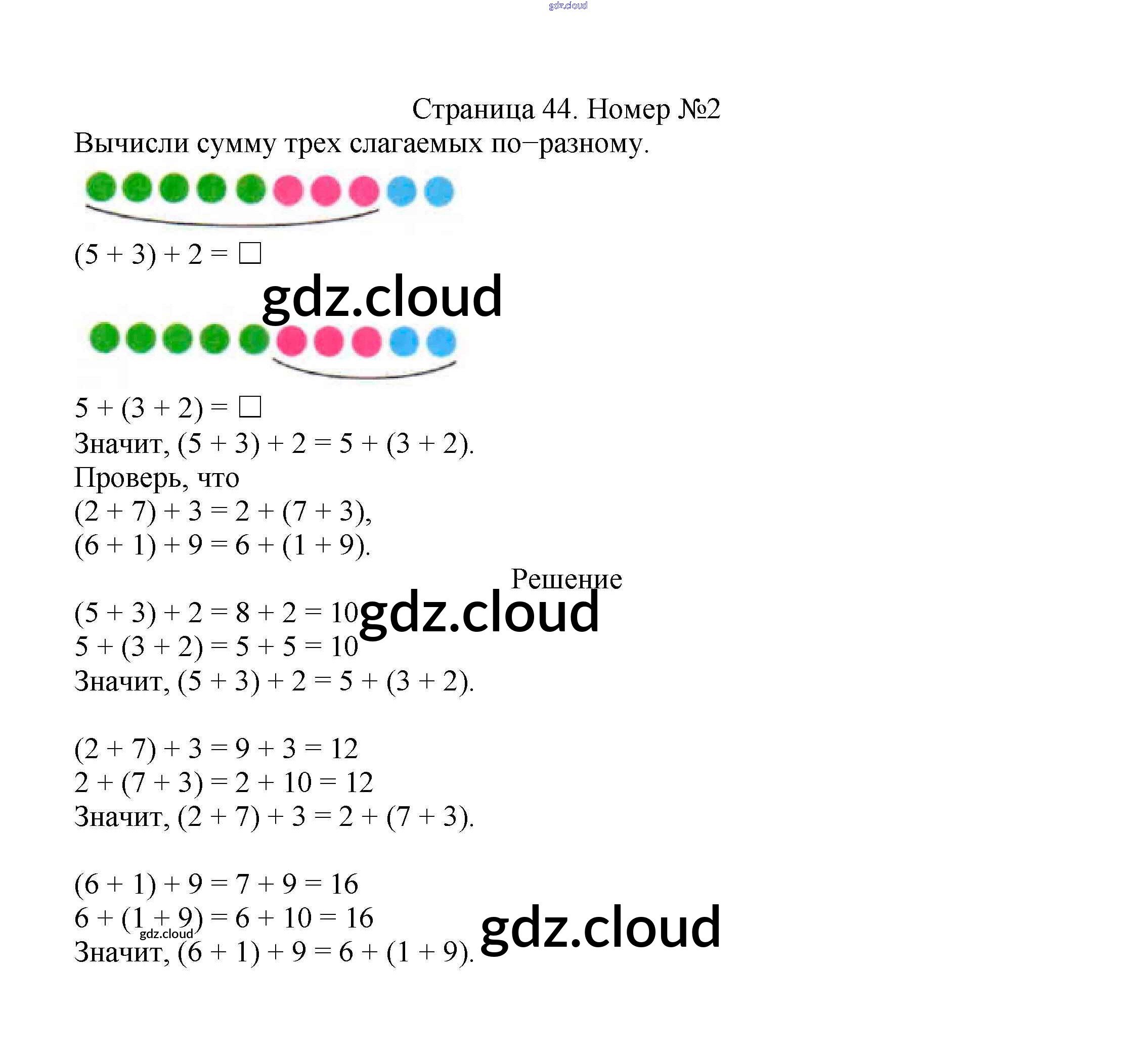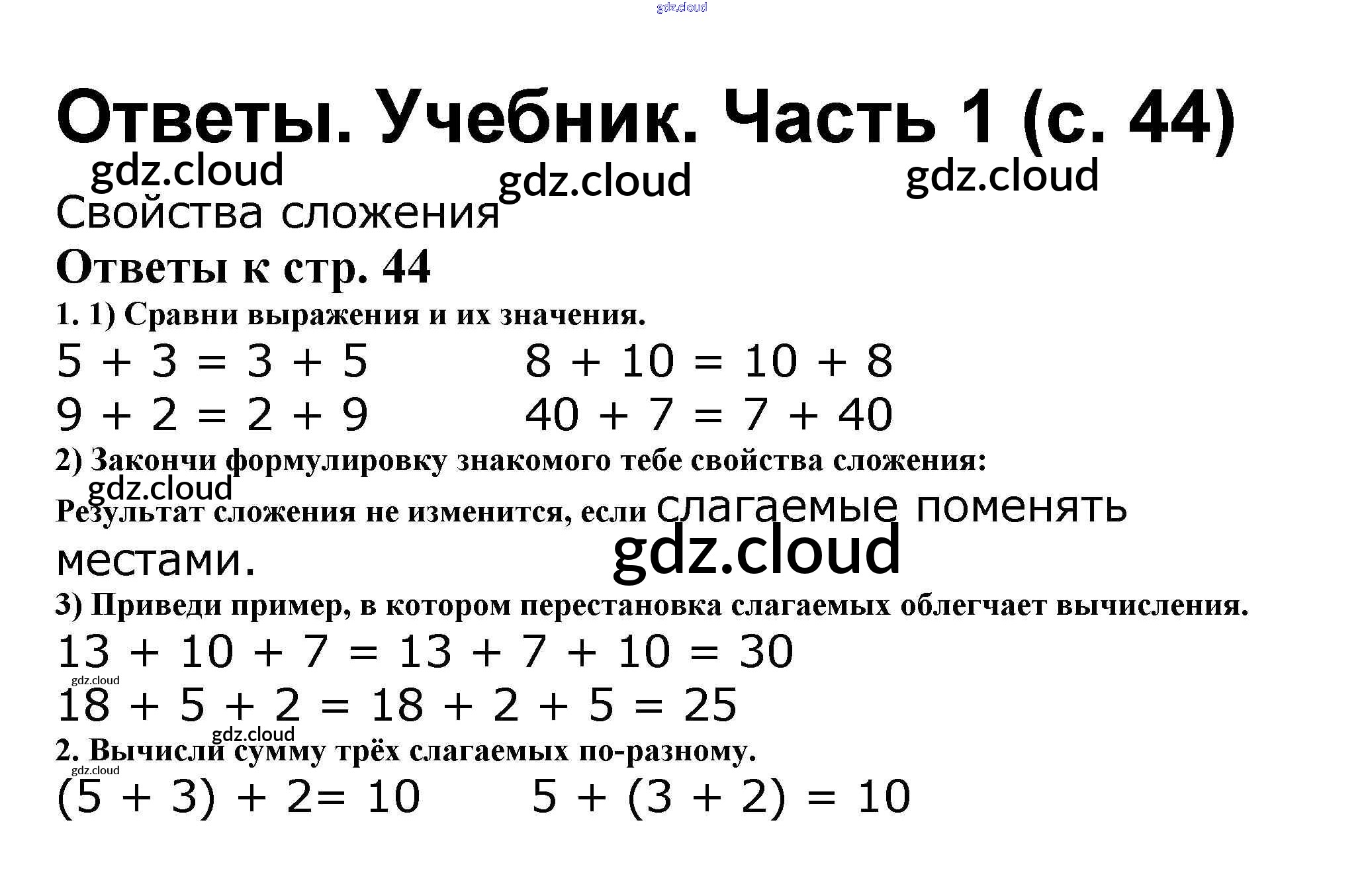 Ответ на задание стр.44 Учебник Математика за 2 (второй) класс Моро, Бантова, Бельтюкова Школа России 2015 Часть 1, 2