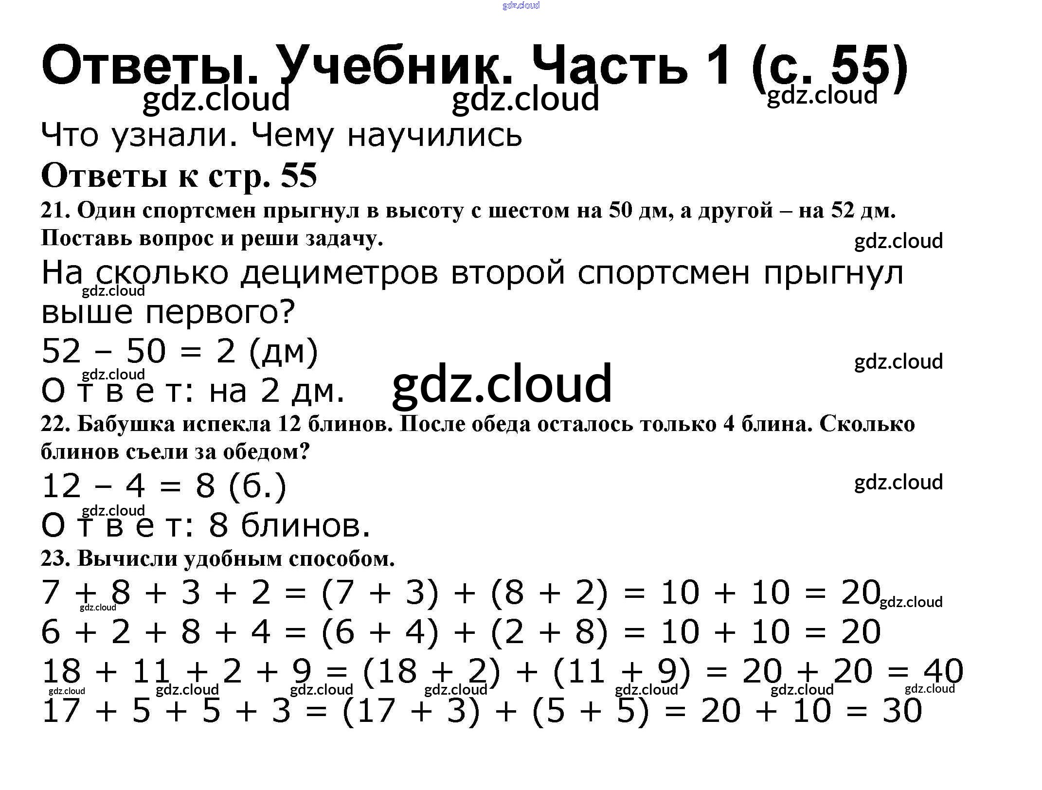 Ответ на задание стр.55 Учебник Математика за 2 (второй) класс Моро, Бантова, Бельтюкова Школа России 2015 Часть 1, 2