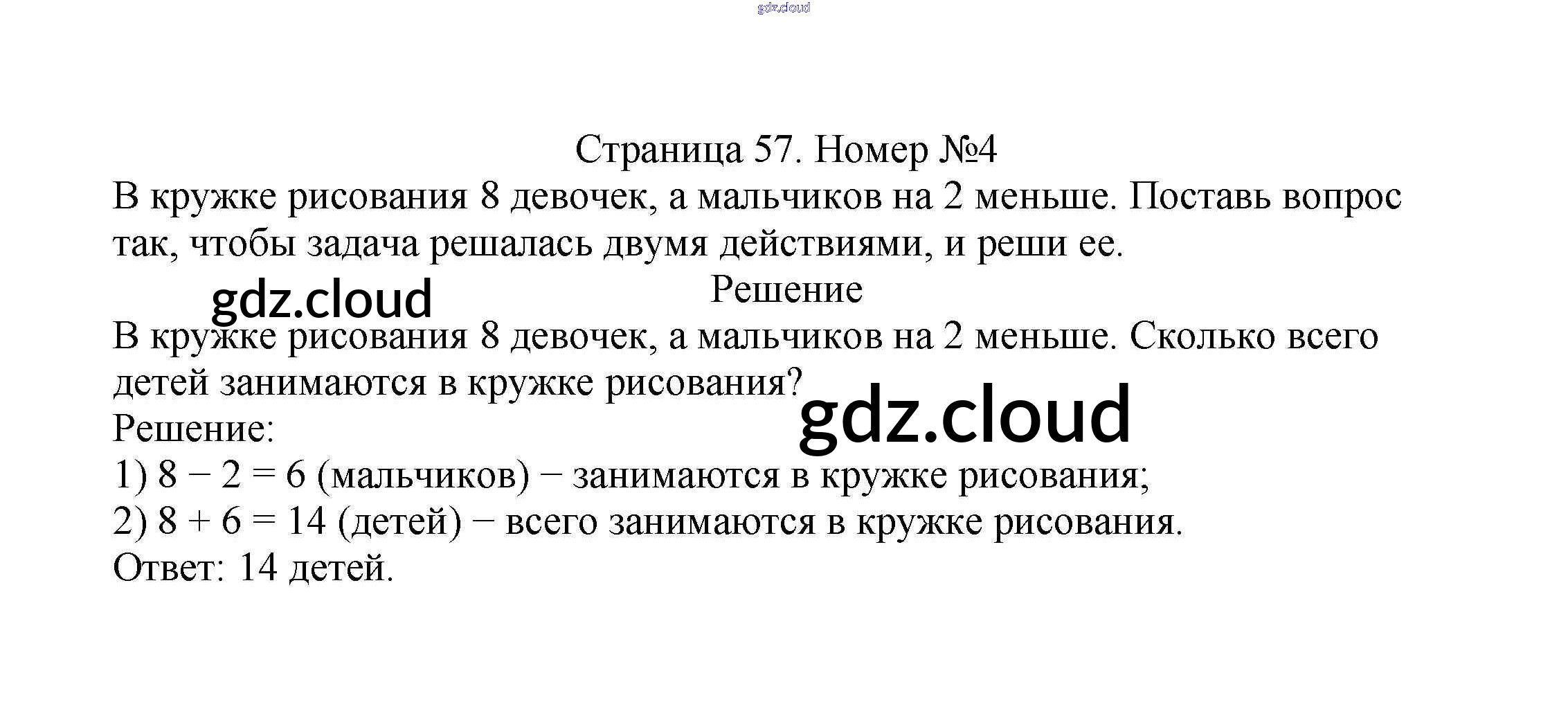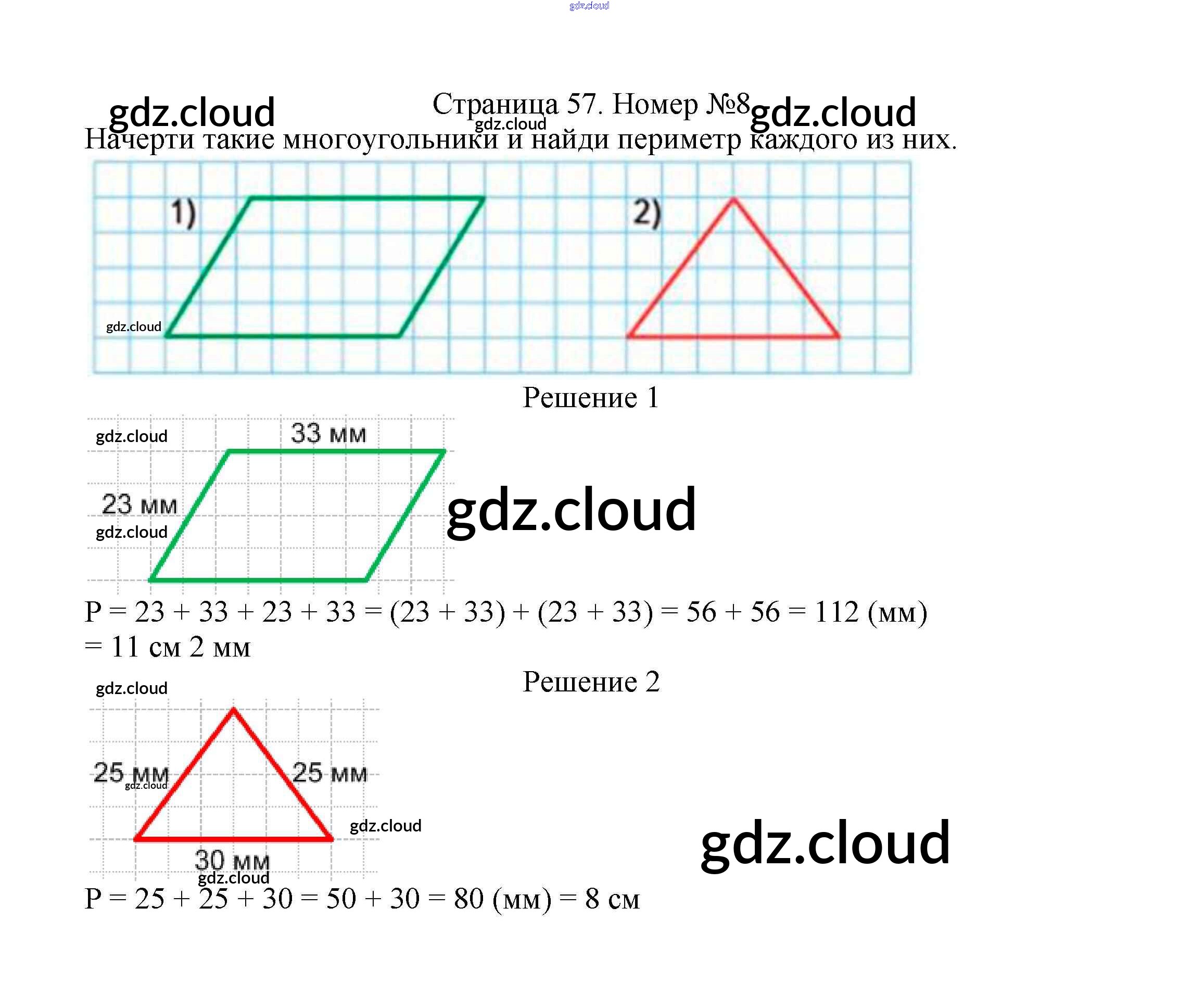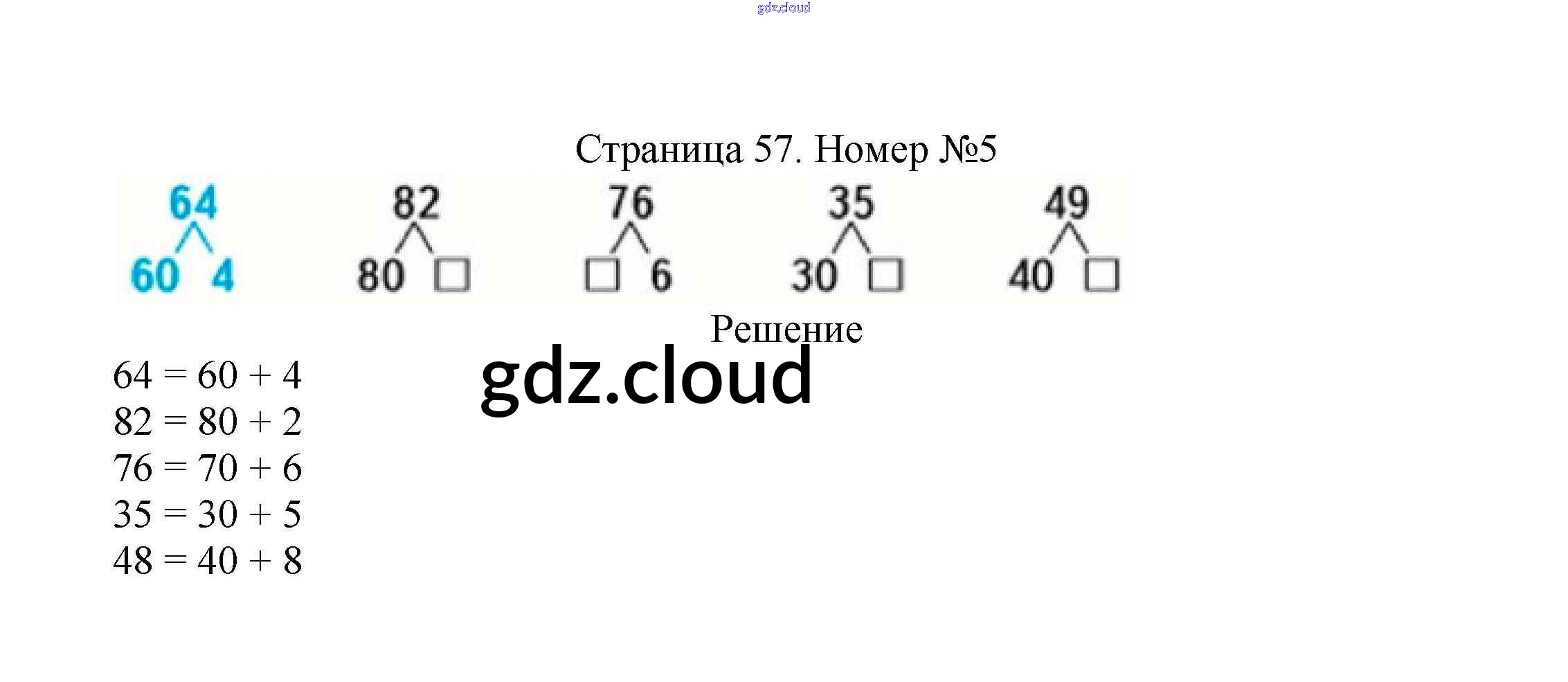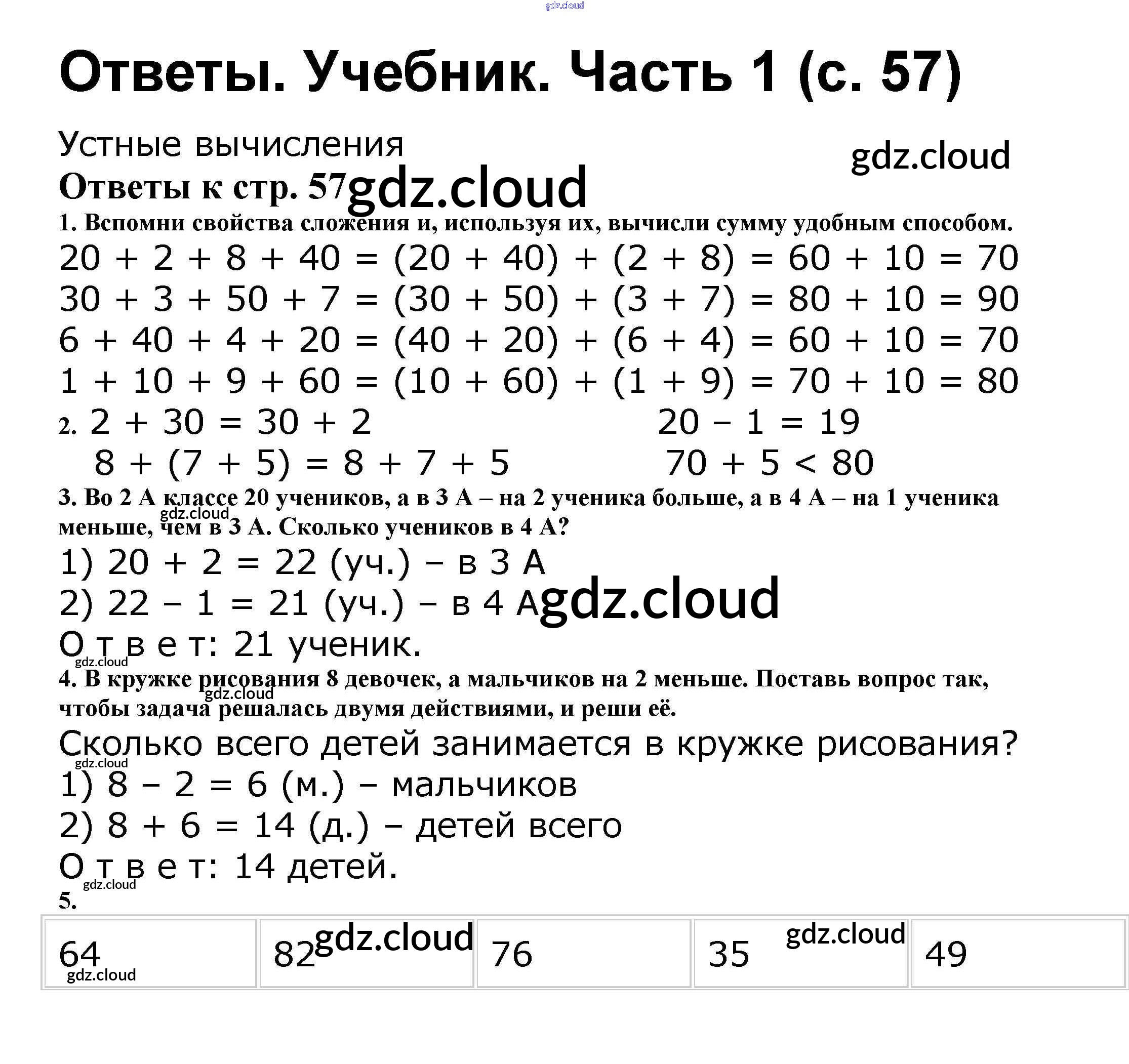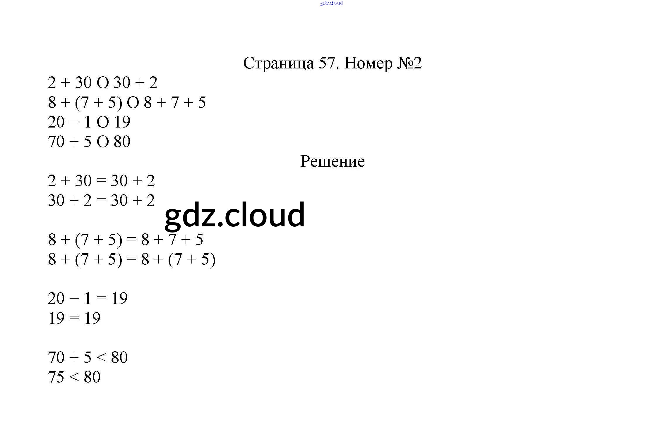 Ответ на задание стр.57 Учебник Математика за 2 (второй) класс Моро, Бантова, Бельтюкова Школа России 2015 Часть 1, 2