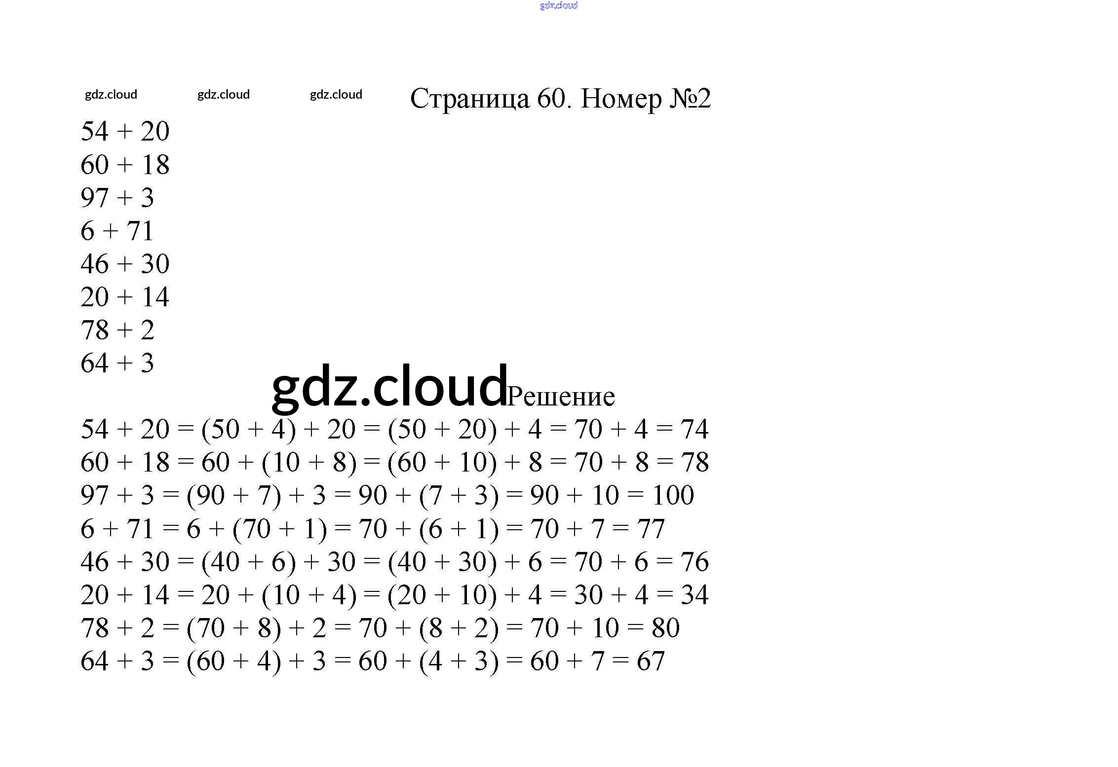 Ответ на задание стр.60 Учебник Математика за 2 (второй) класс Моро, Бантова, Бельтюкова Школа России 2015 Часть 1, 2