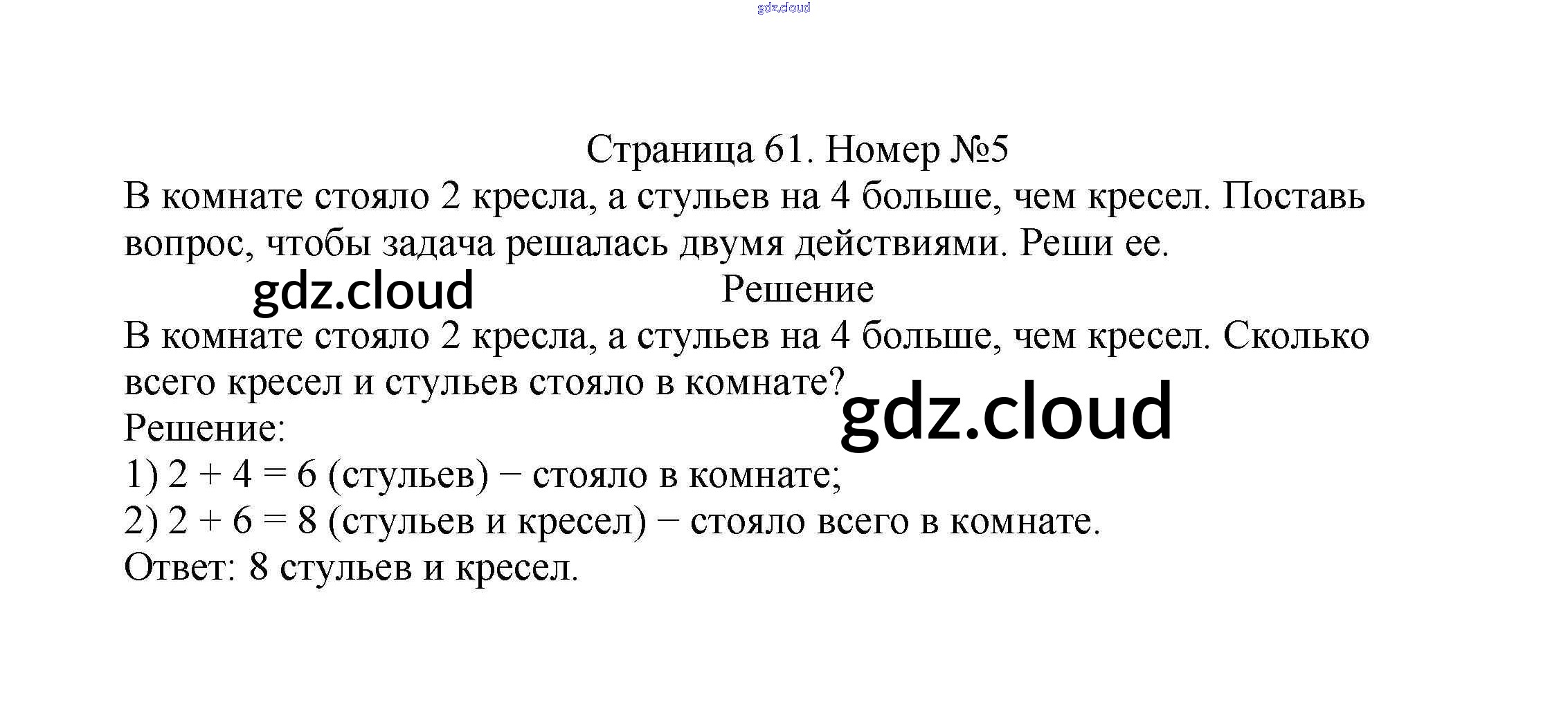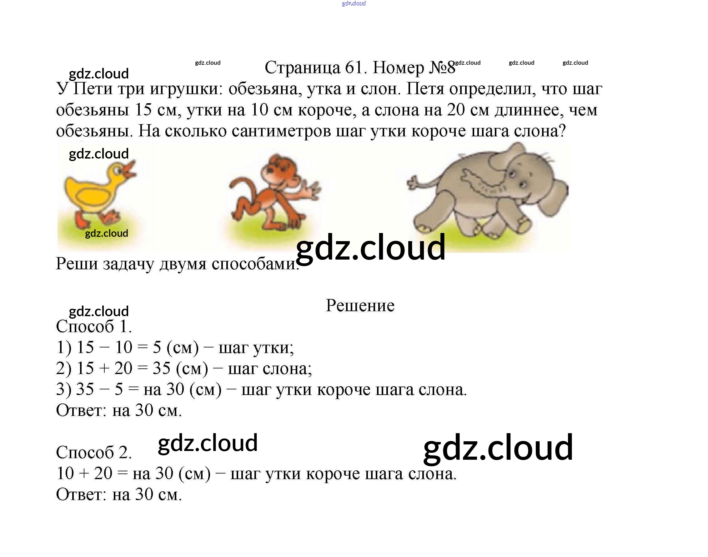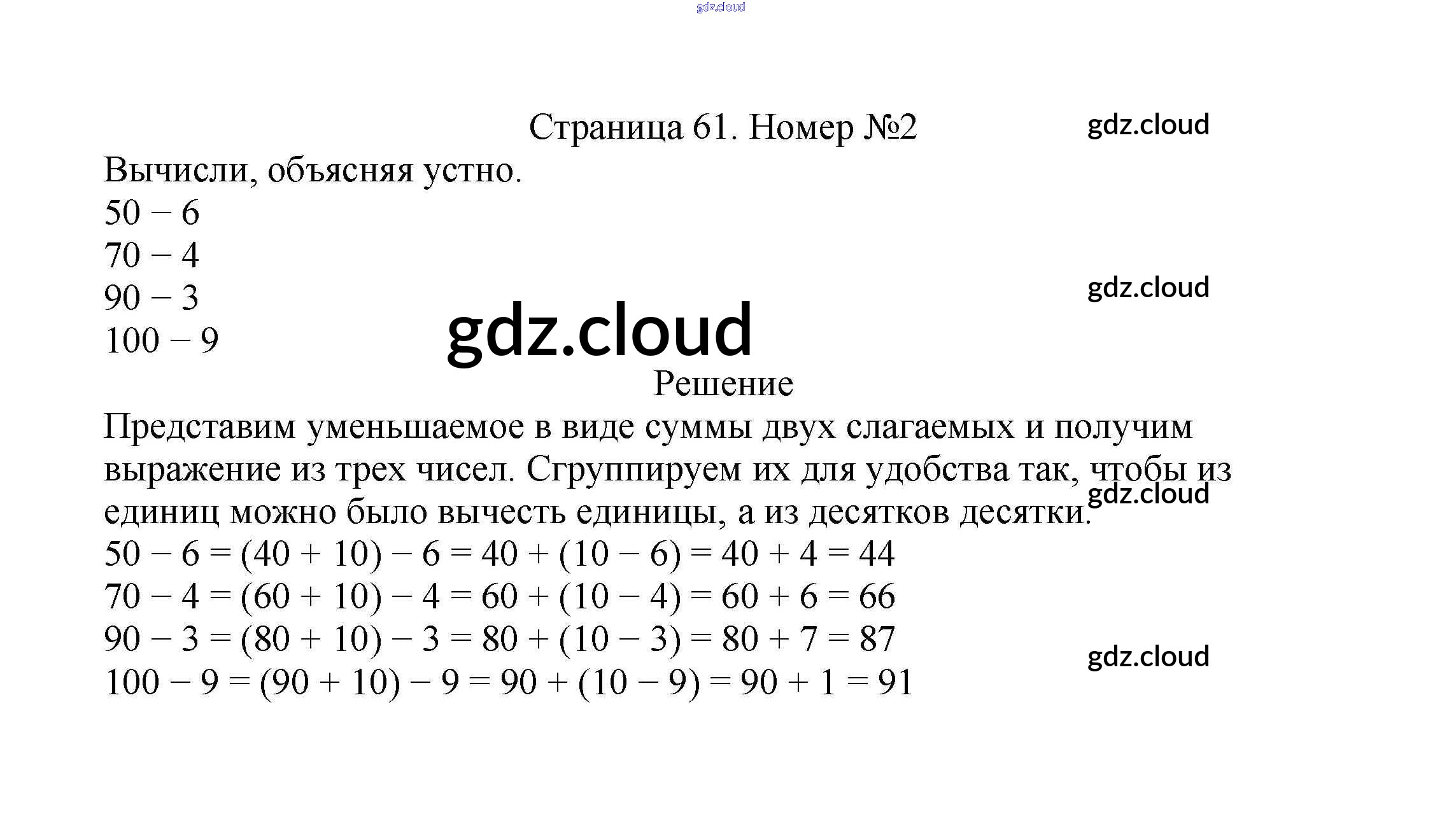 Ответ на задание стр.61 Учебник Математика за 2 (второй) класс Моро, Бантова, Бельтюкова Школа России 2015 Часть 1, 2