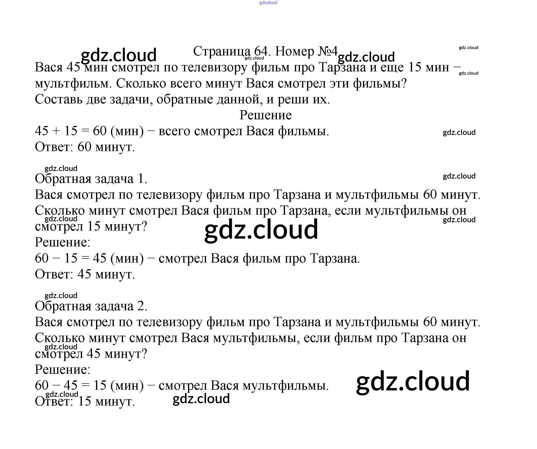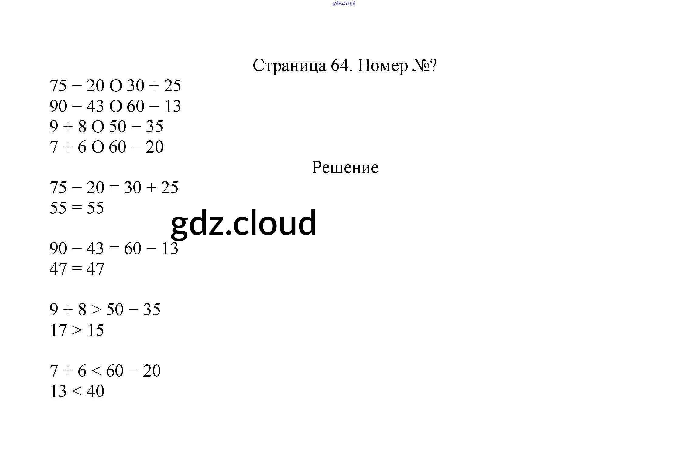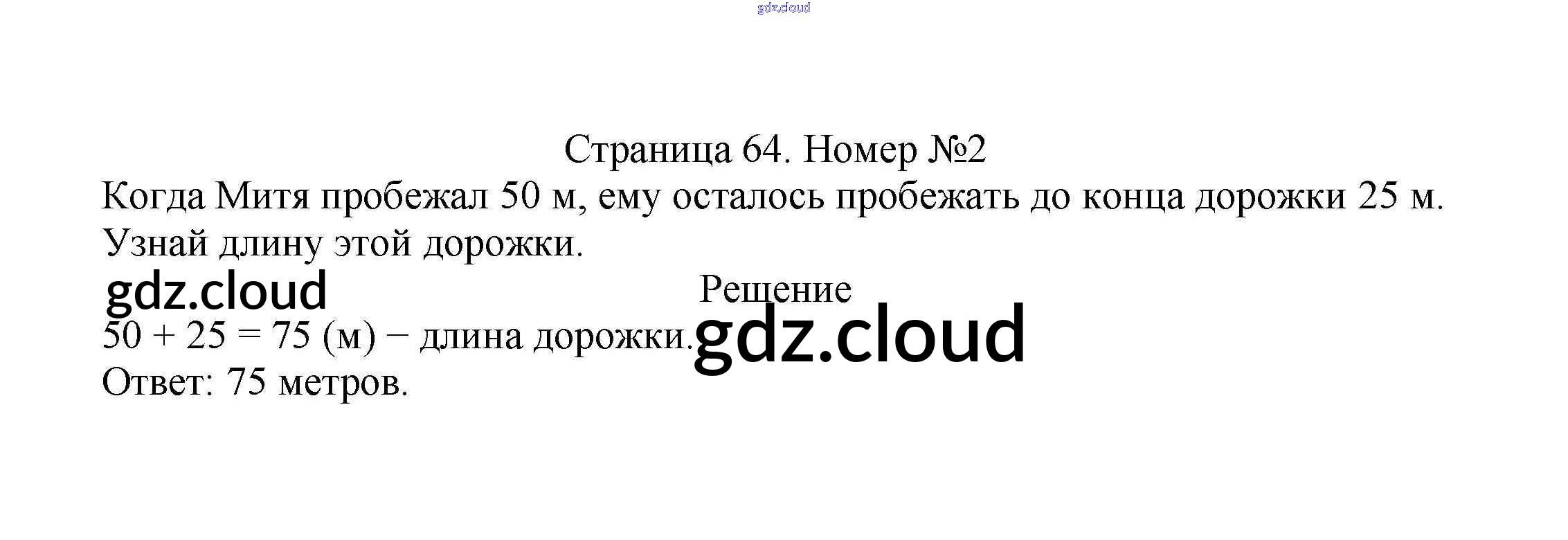 Ответ на задание стр.64 Учебник Математика за 2 (второй) класс Моро, Бантова, Бельтюкова Школа России 2015 Часть 1, 2