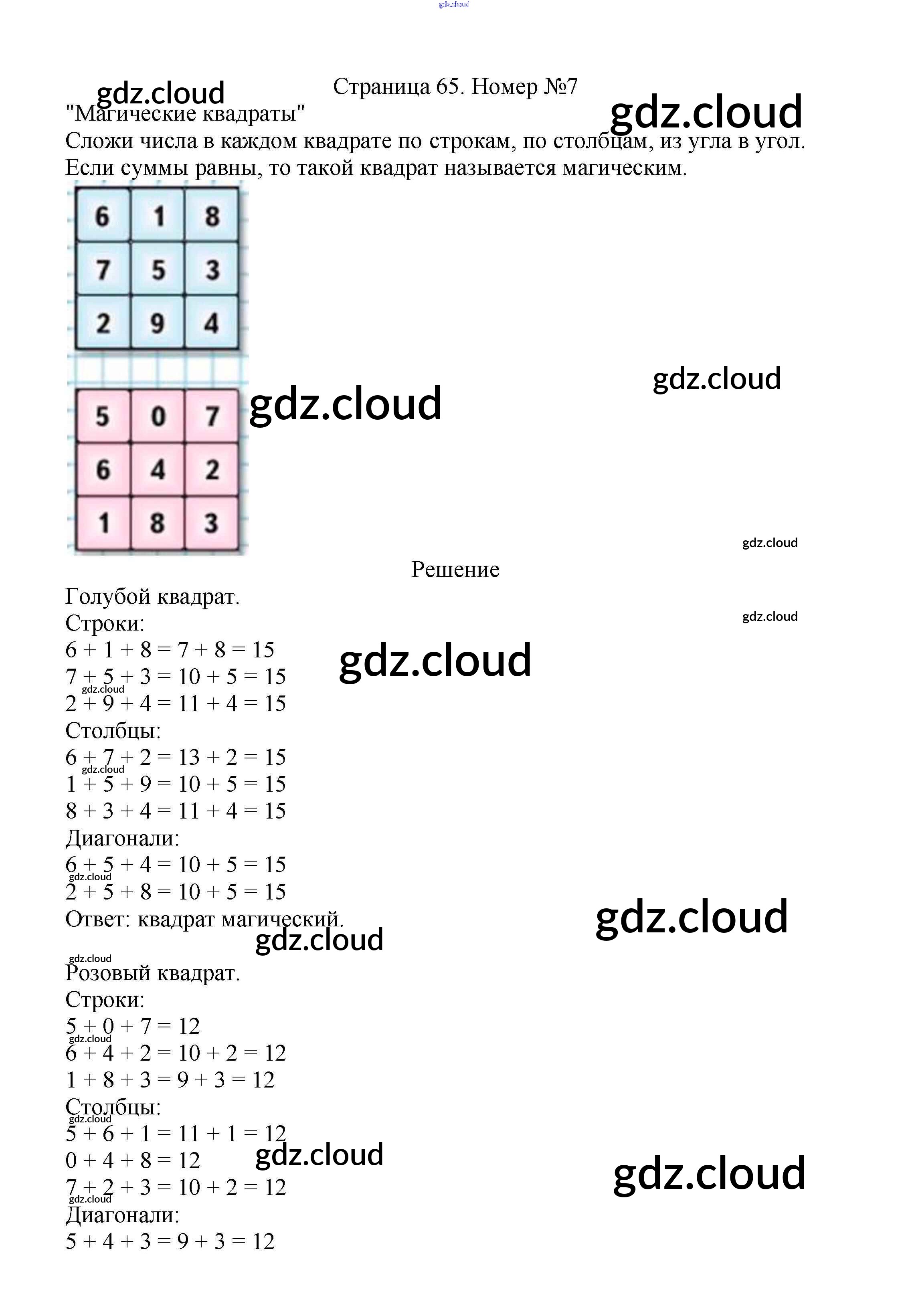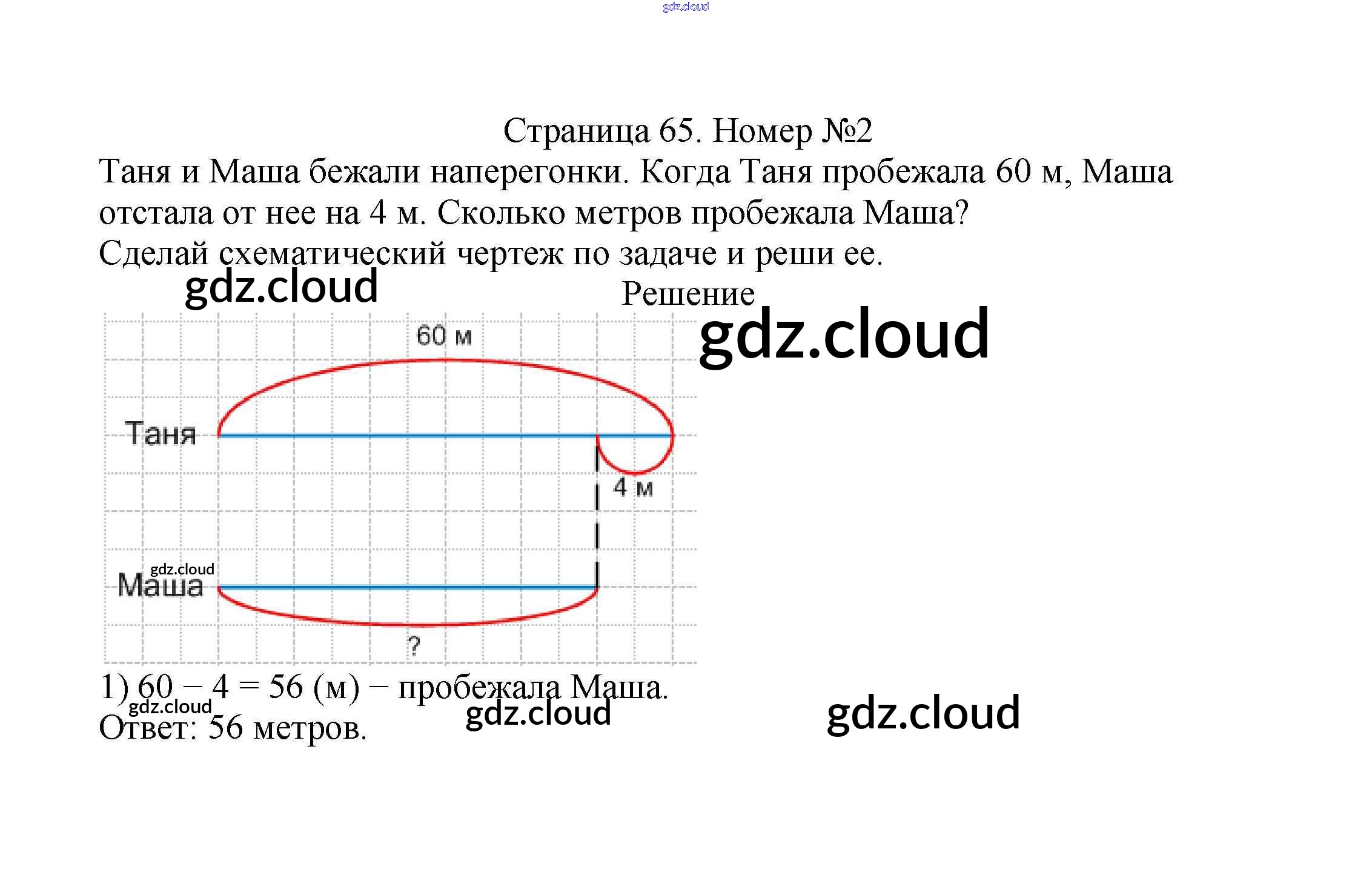 Ответ на задание стр.65 Учебник Математика за 2 (второй) класс Моро, Бантова, Бельтюкова Школа России 2015 Часть 1, 2