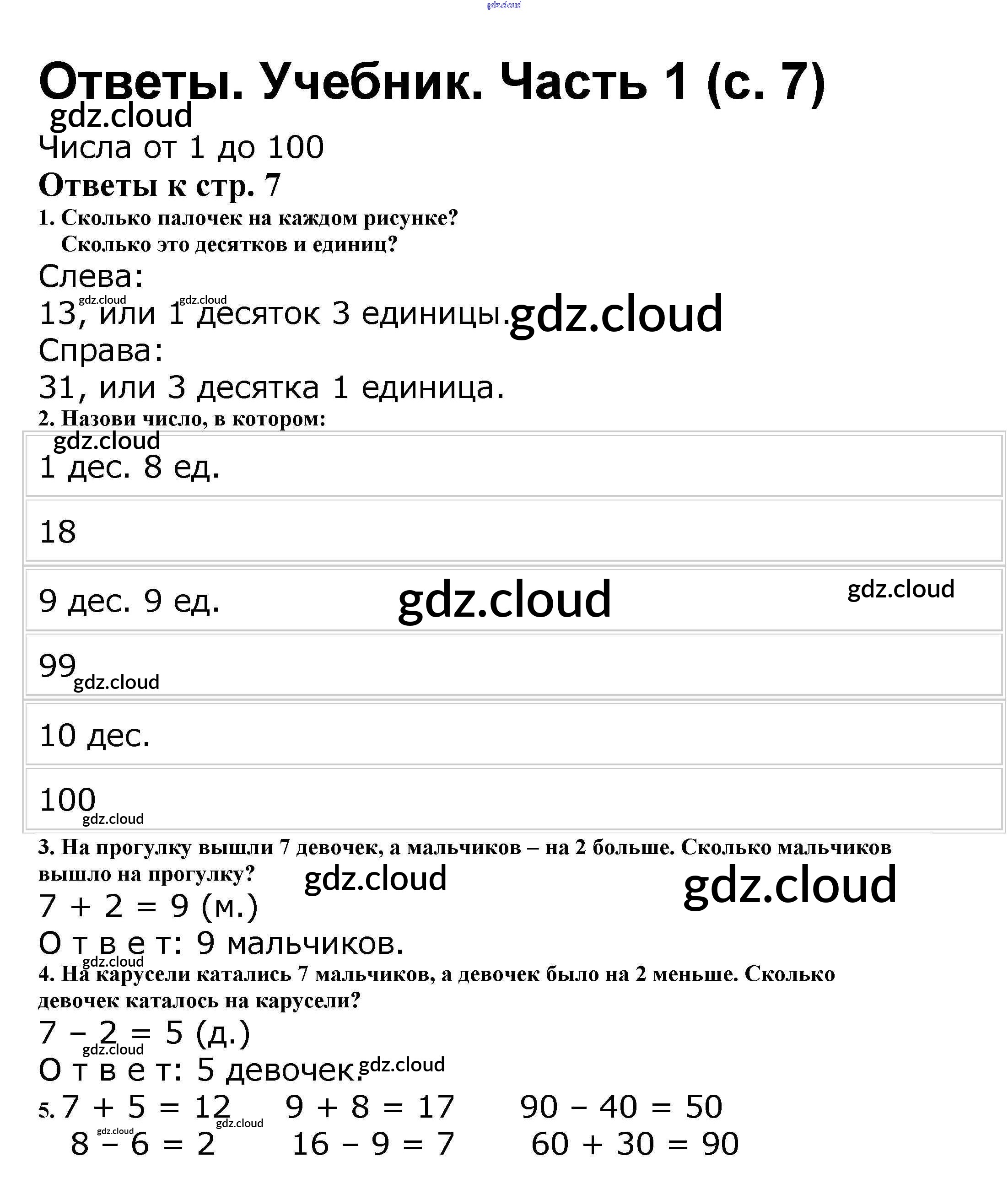 Ответ на задание стр.7 Учебник Математика за 2 (второй) класс Моро, Бантова, Бельтюкова Школа России 2015 Часть 1, 2
