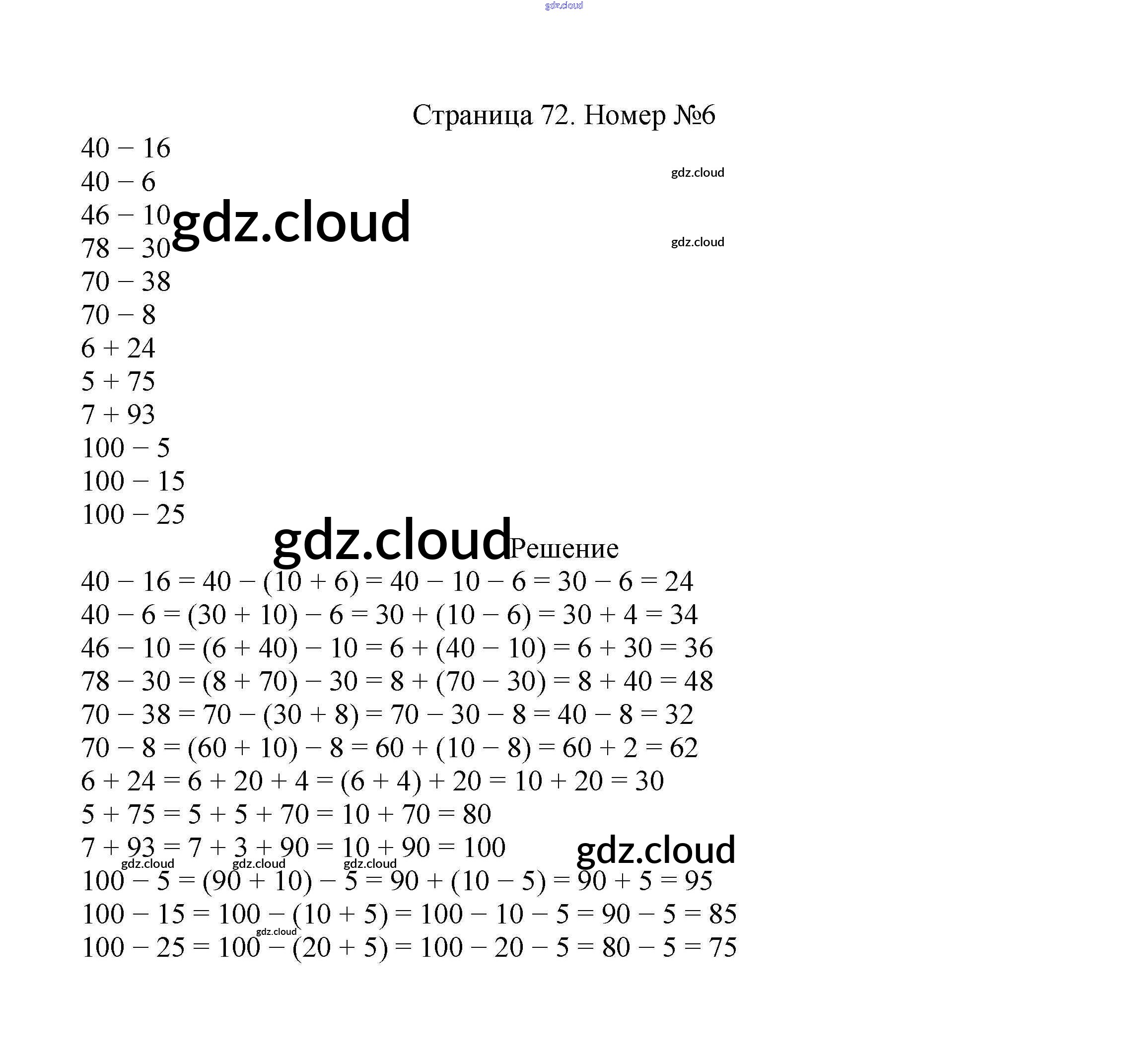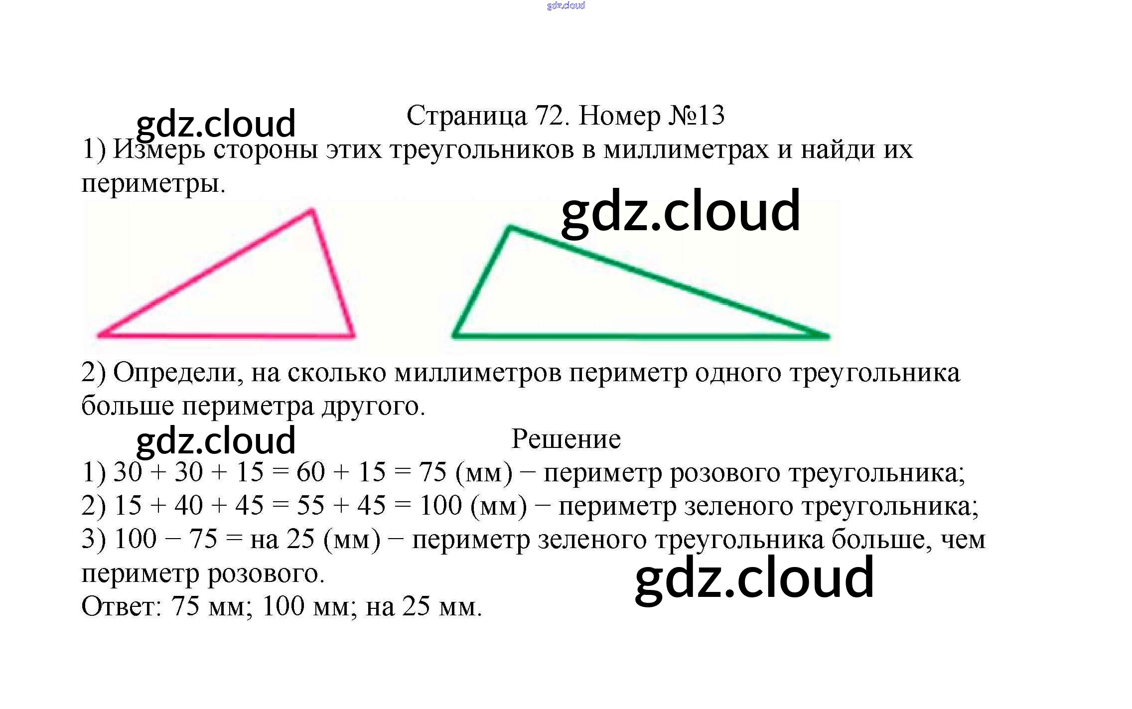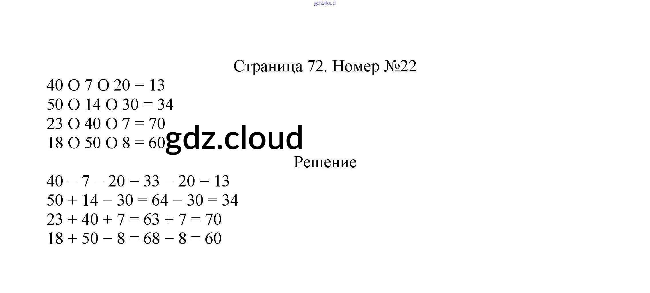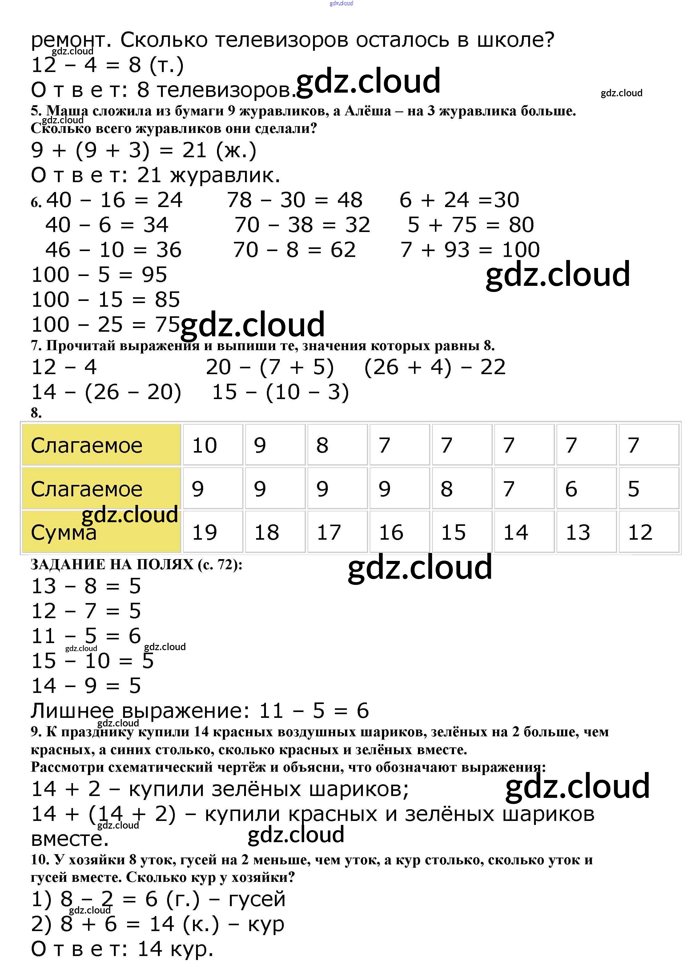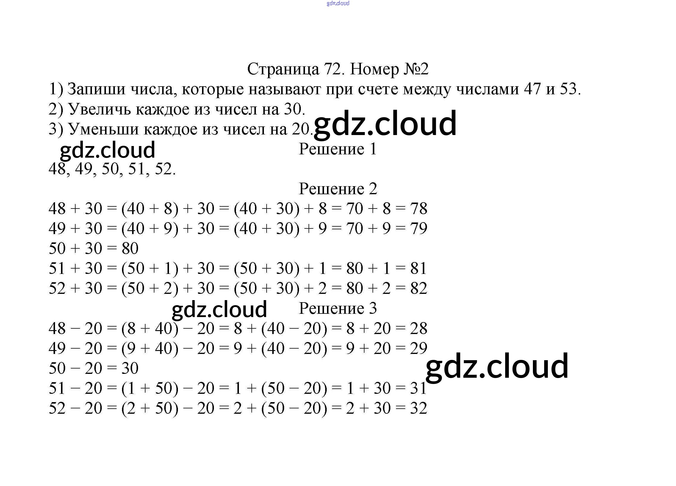 Ответ на задание стр.72 Учебник Математика за 2 (второй) класс Моро, Бантова, Бельтюкова Школа России 2015 Часть 1, 2