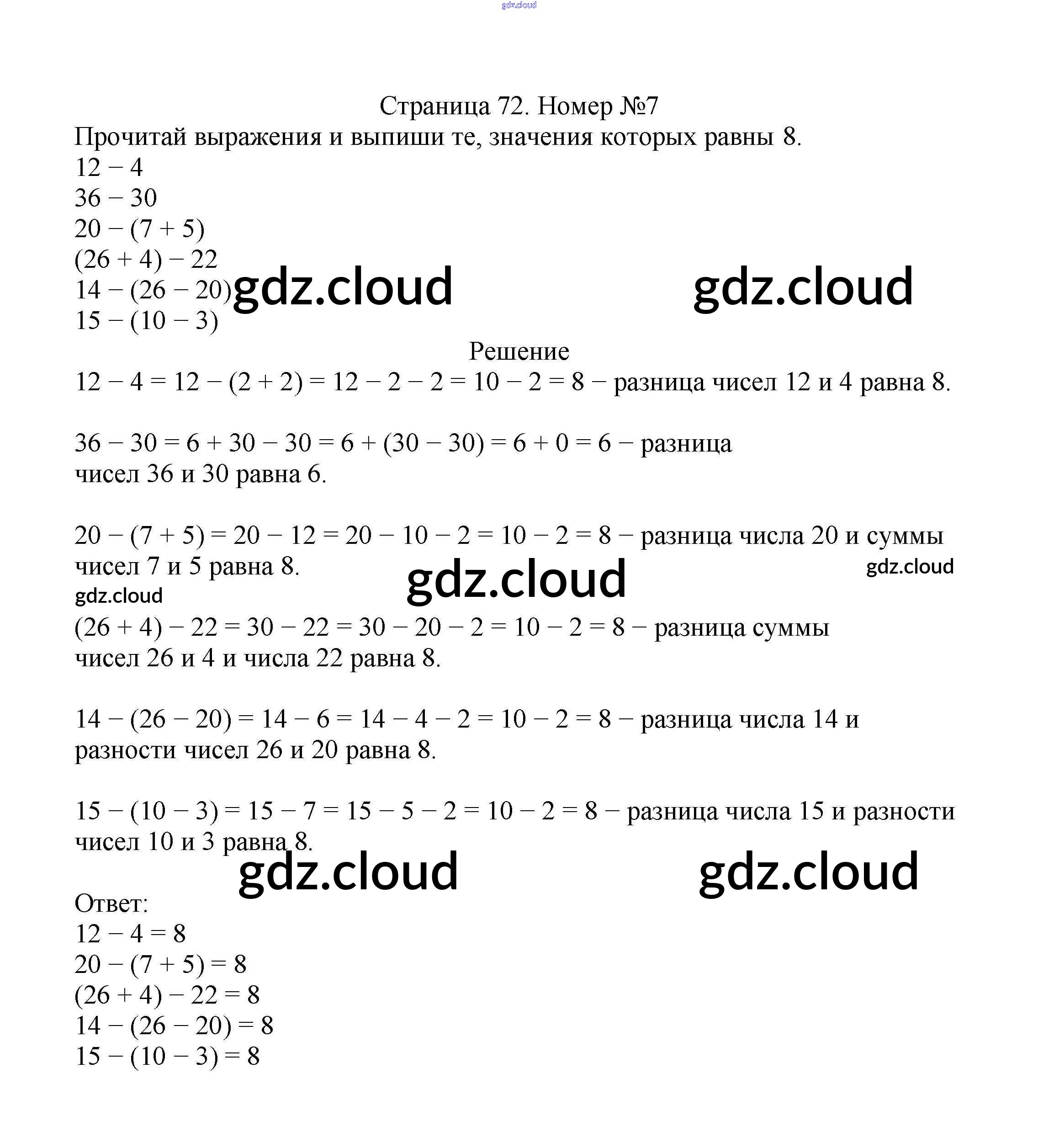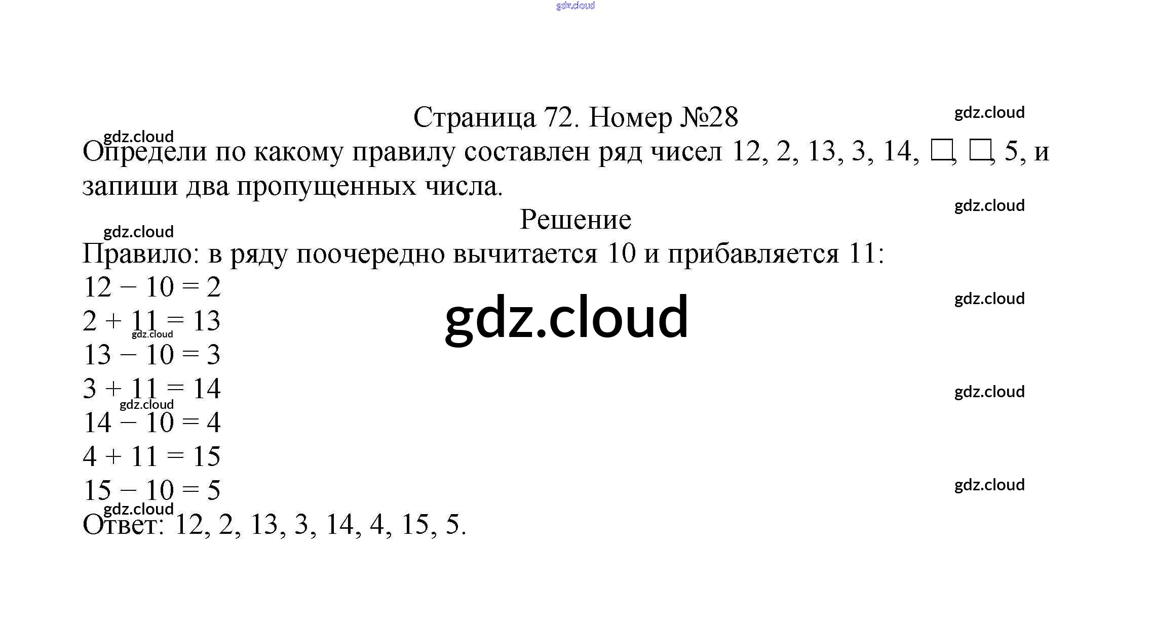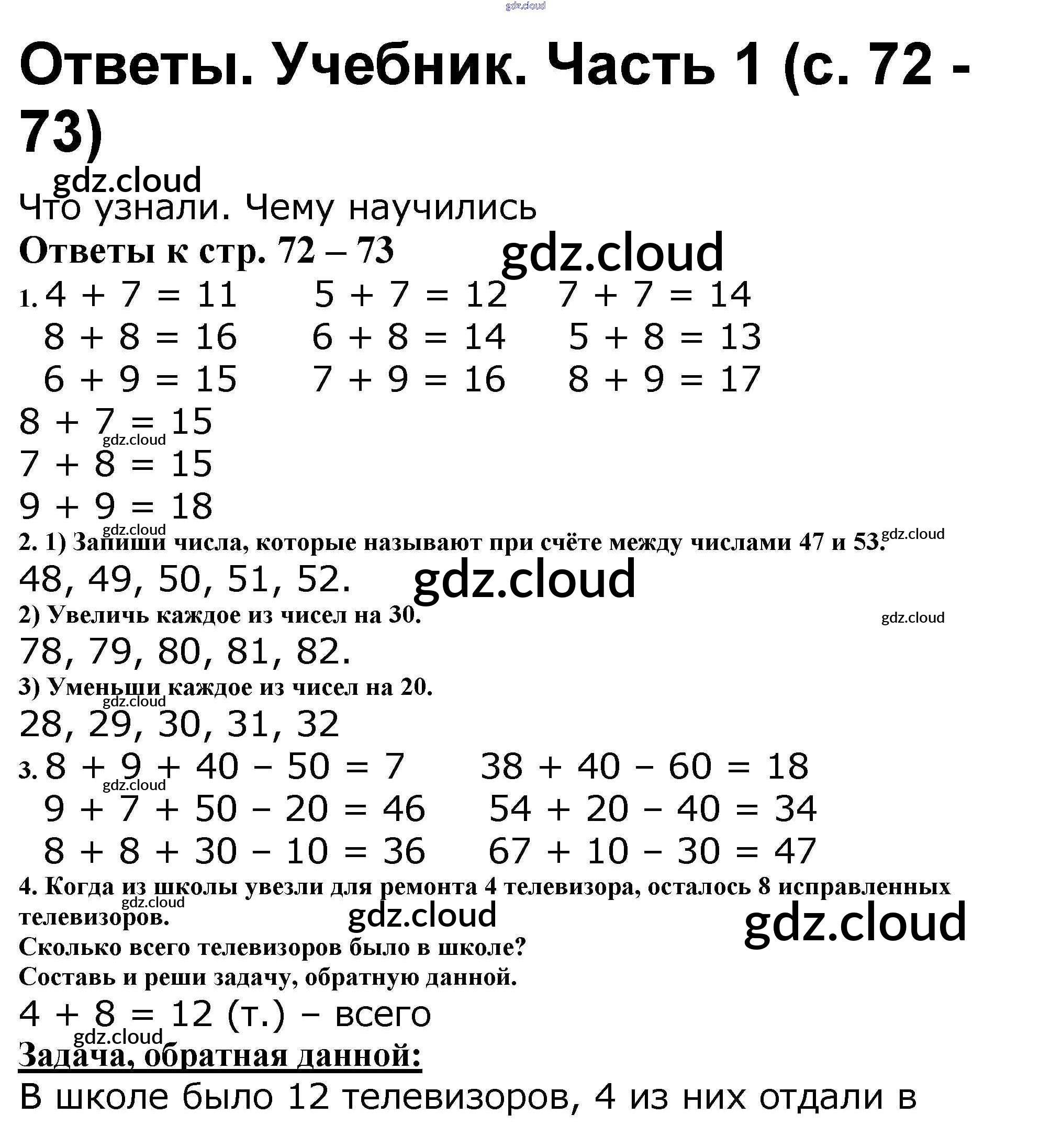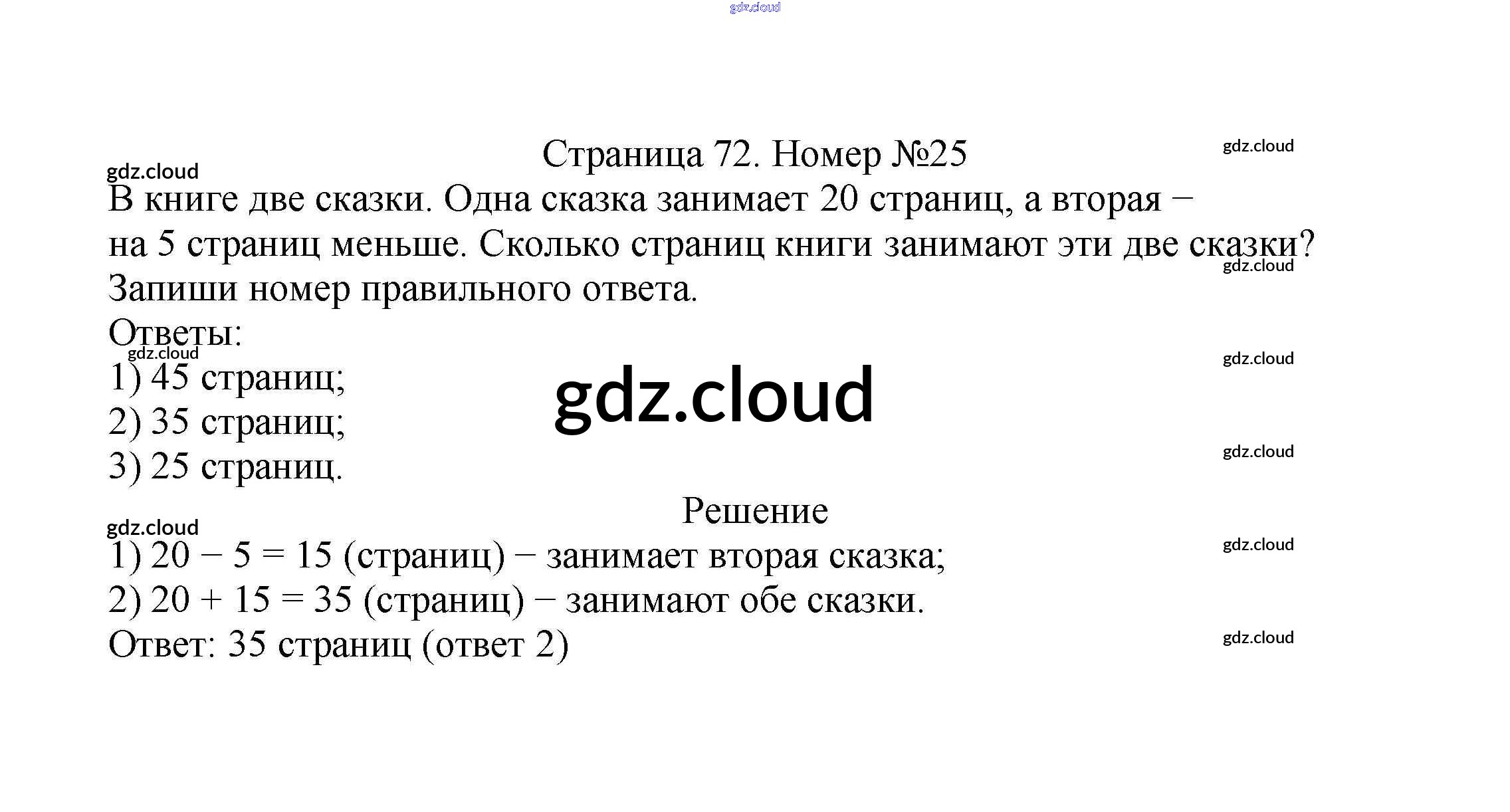 Ответ на задание стр.72 Учебник Математика за 2 (второй) класс Моро, Бантова, Бельтюкова Школа России 2015 Часть 1, 2