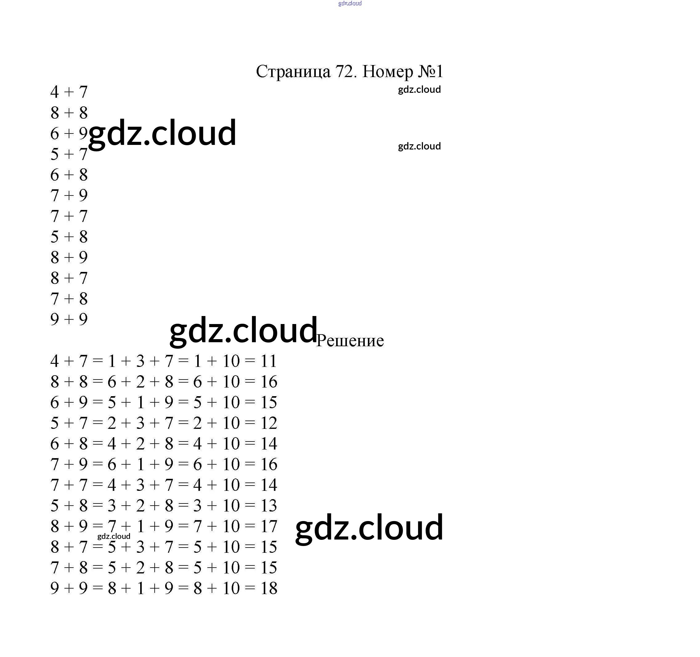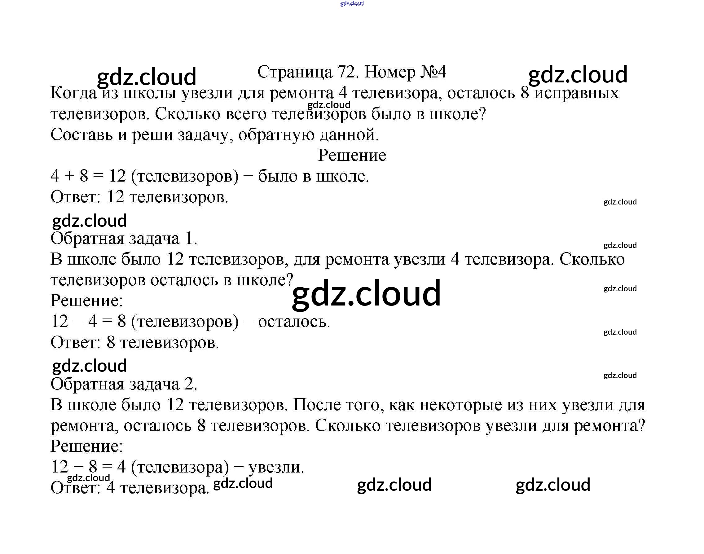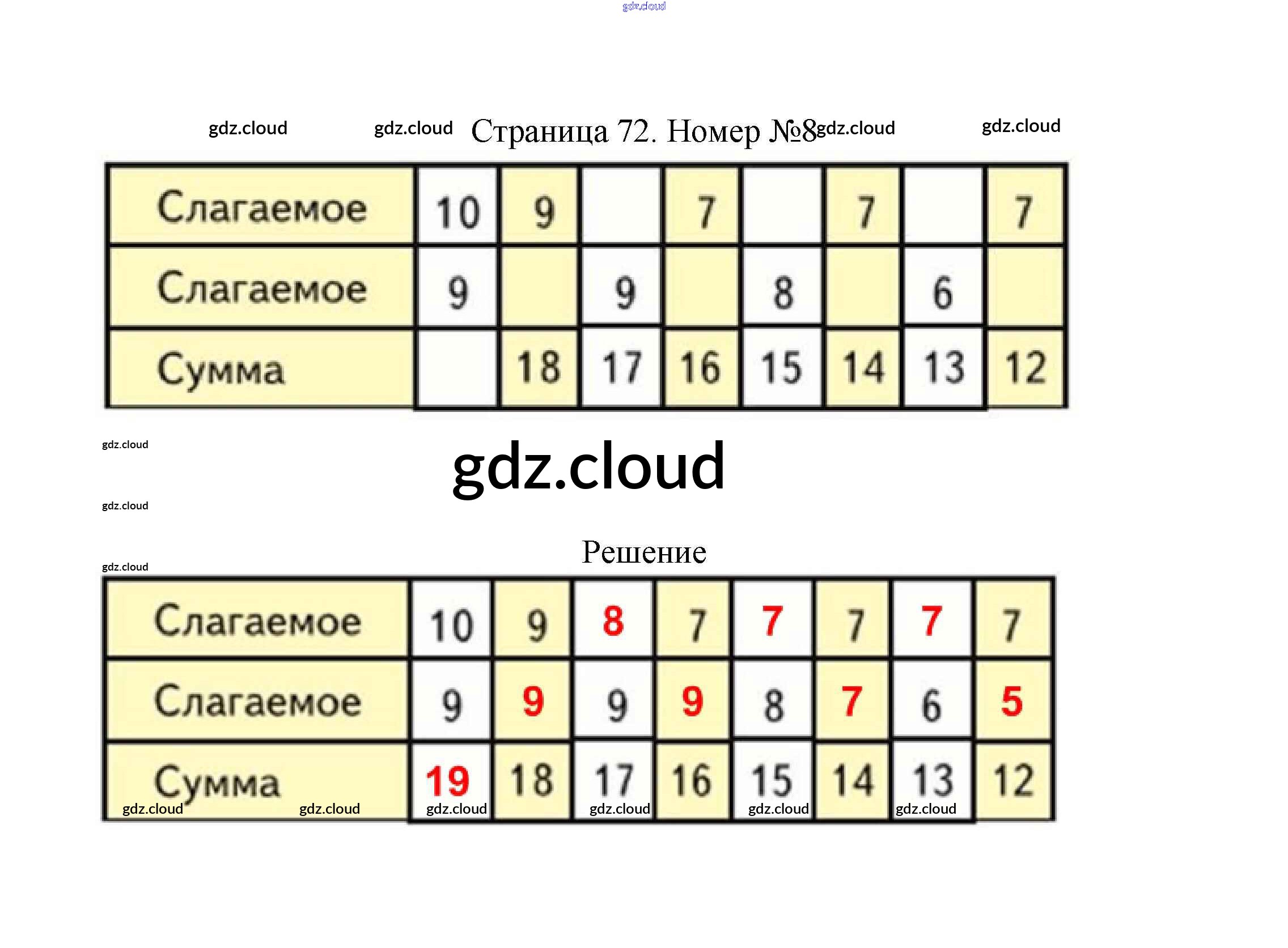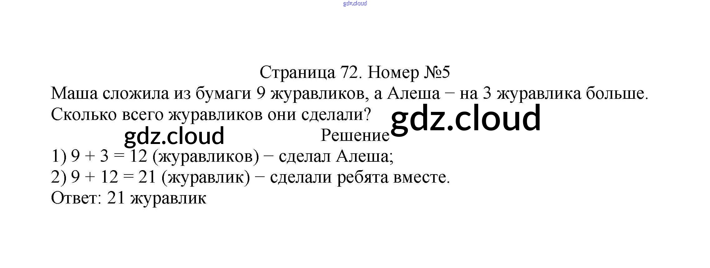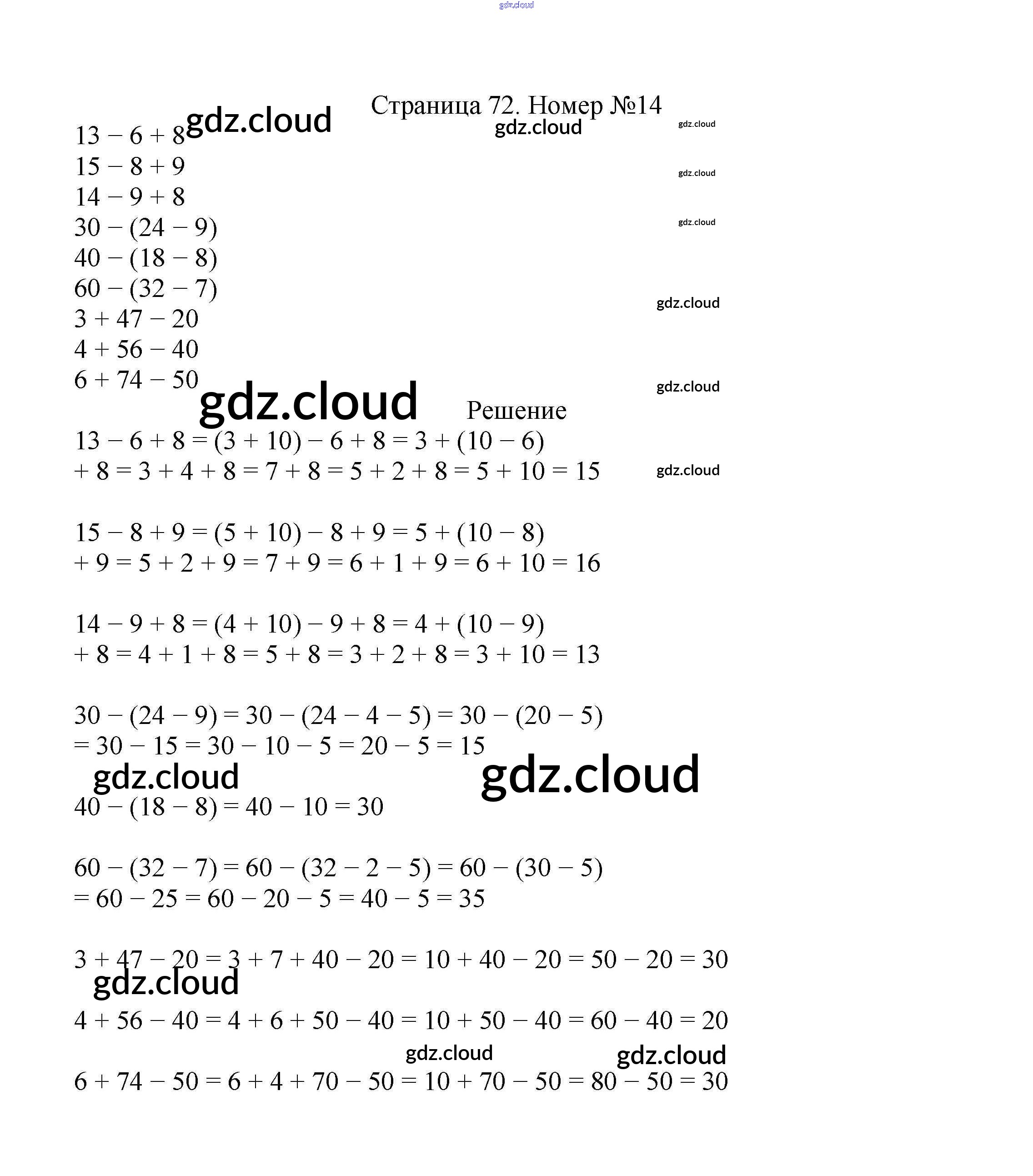 Ответ на задание стр.72 Учебник Математика за 2 (второй) класс Моро, Бантова, Бельтюкова Школа России 2015 Часть 1, 2