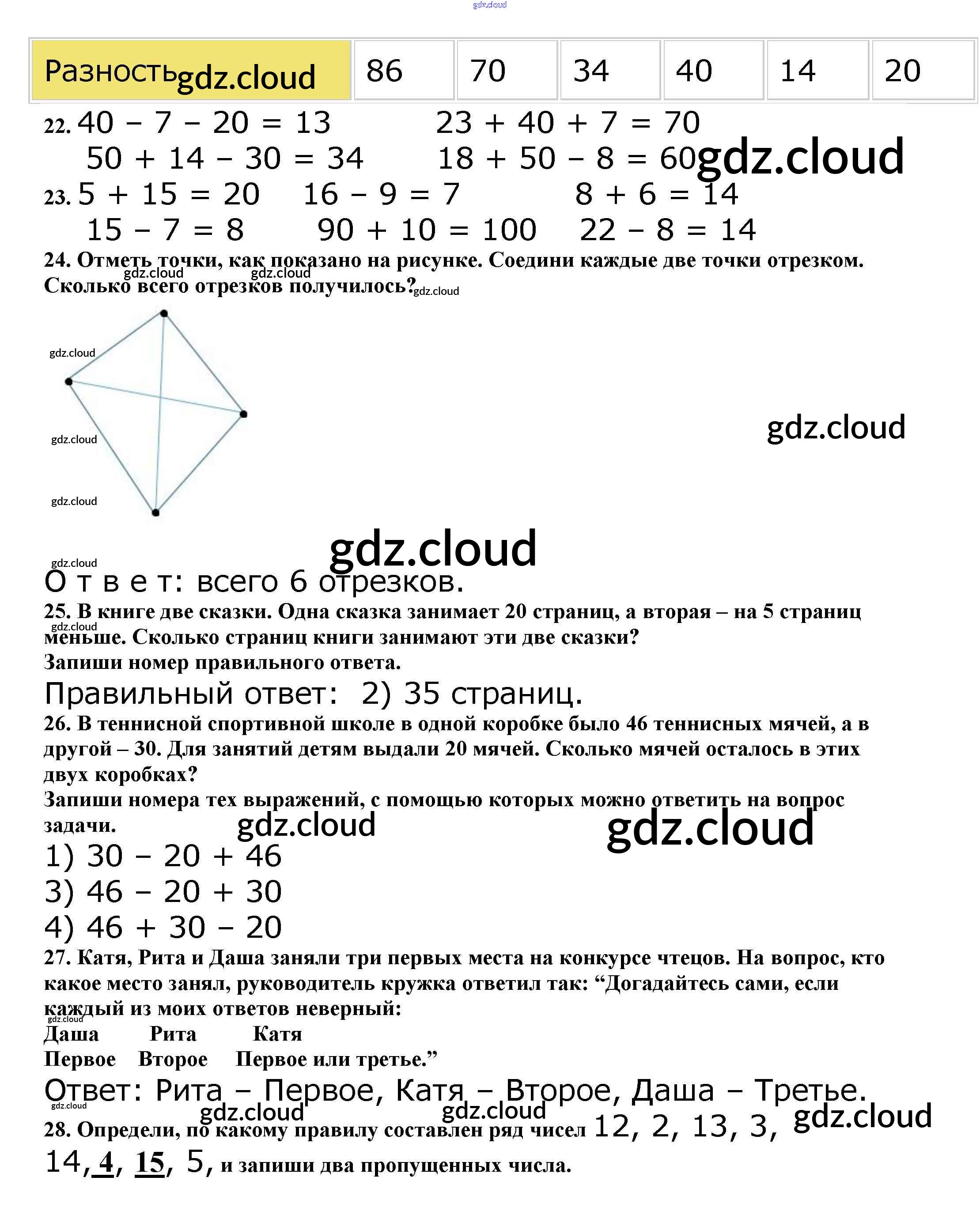 Ответы к части 1 по Математике 2 класс Учебник Моро Школа России Часть 1, 2 Просвещение