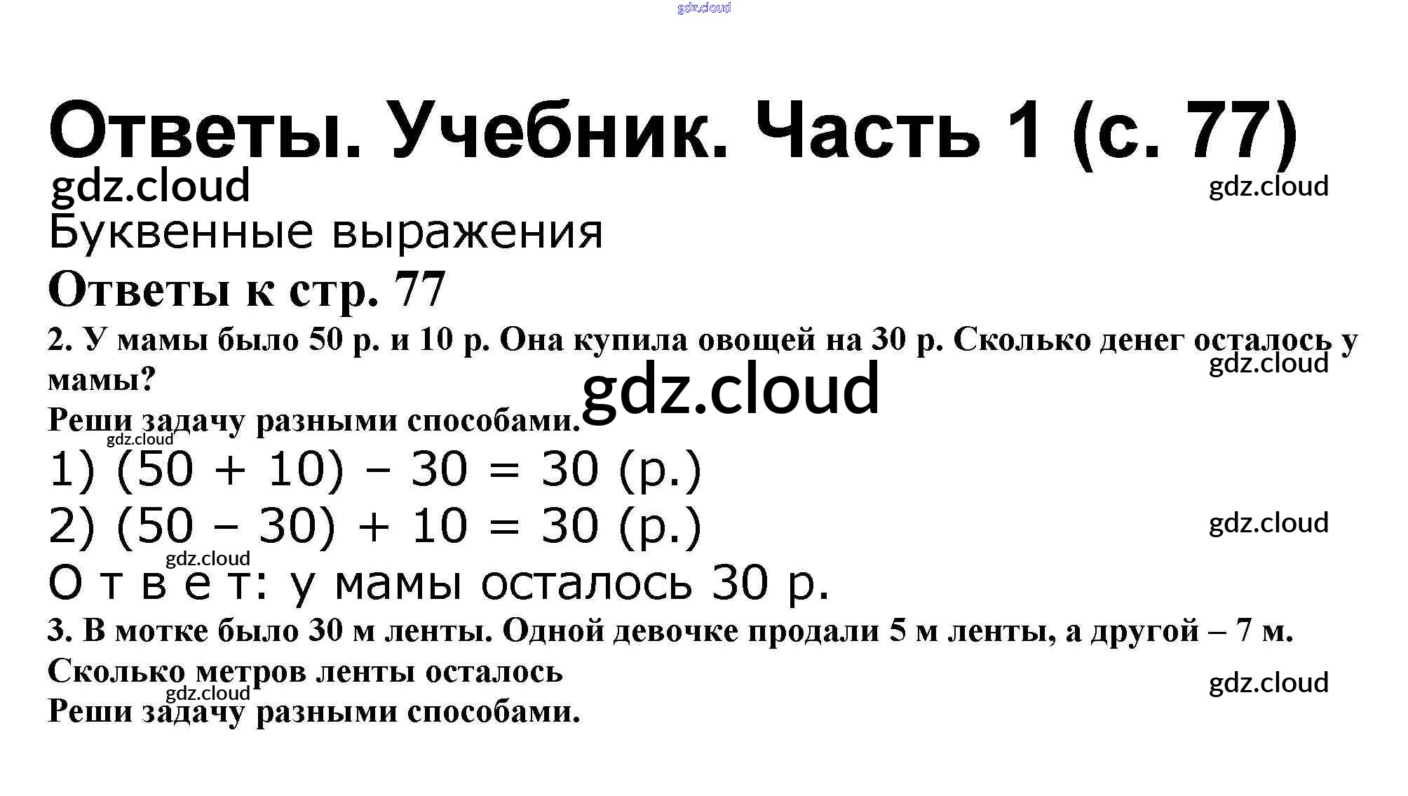 Ответ на задание стр.77 Учебник Математика за 2 (второй) класс Моро, Бантова, Бельтюкова Школа России 2015 Часть 1, 2